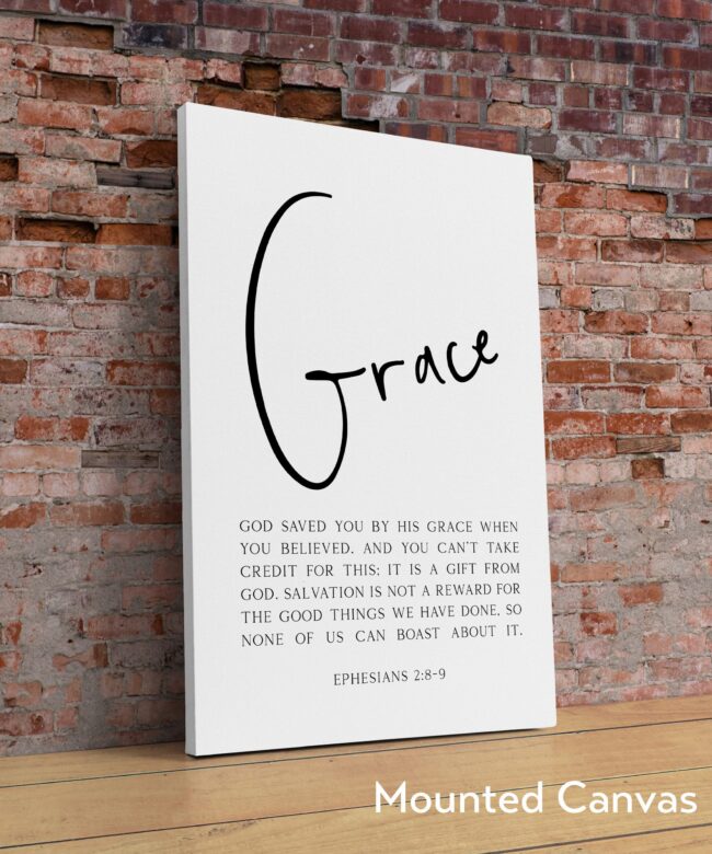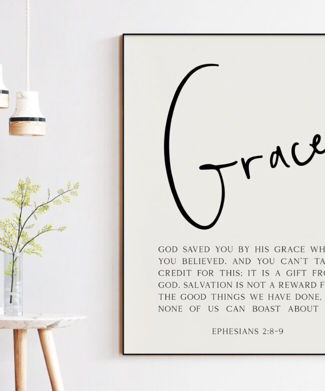 Ephesians 2:8–9 God saved you by his grace when you believed. Typography Art Print – Religious Scripture – Gift Idea – Christian Verse