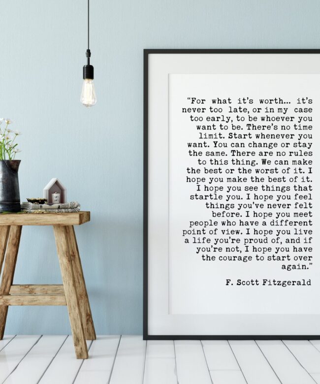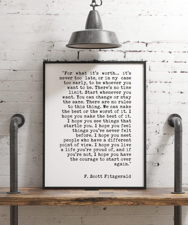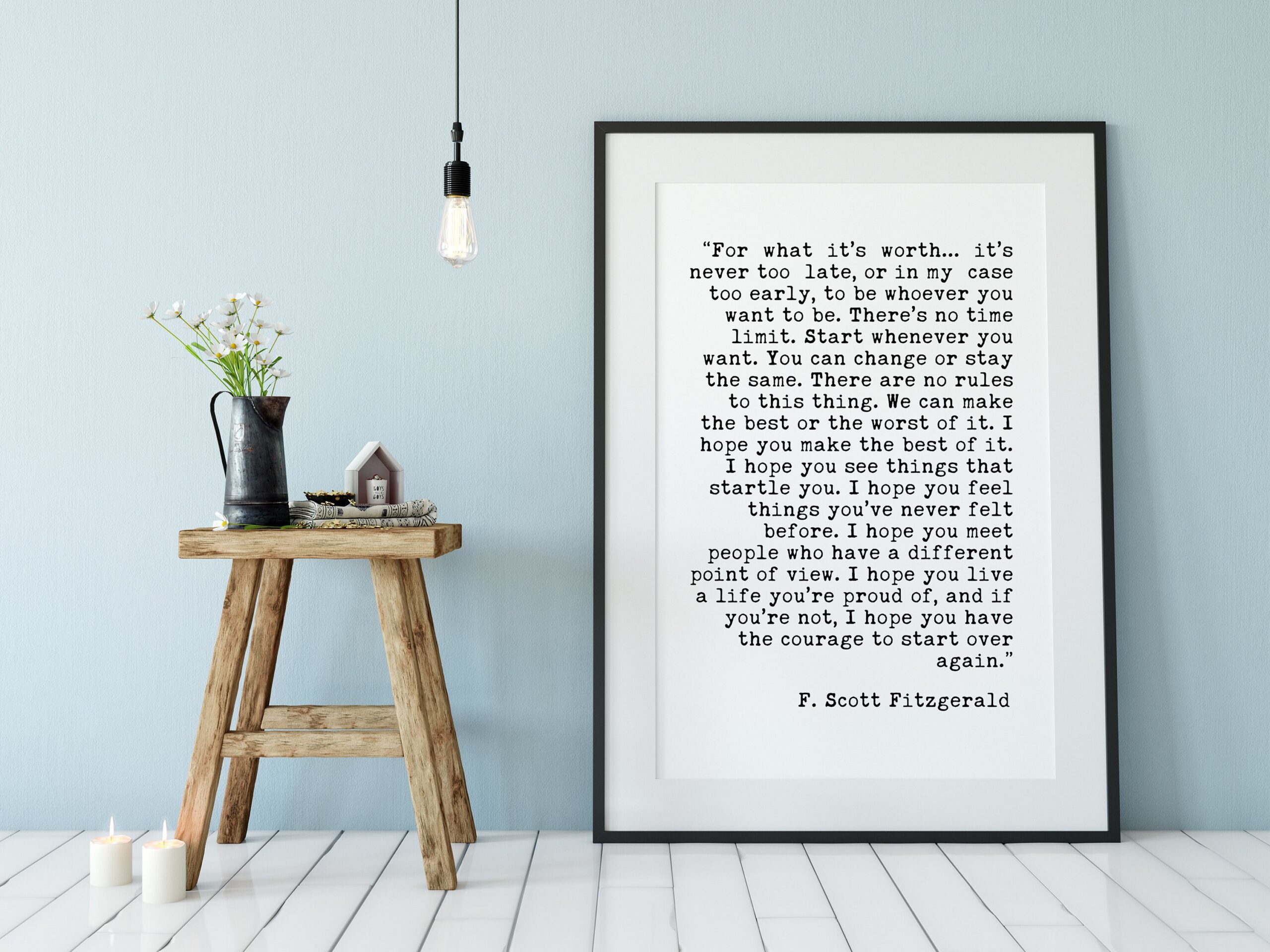 F. Scott Fitzgerald For What It’s Worth Quote – Typography Art – Home Wall Décor – Minimalist Art – Inspriational – New Job – New City