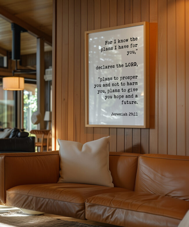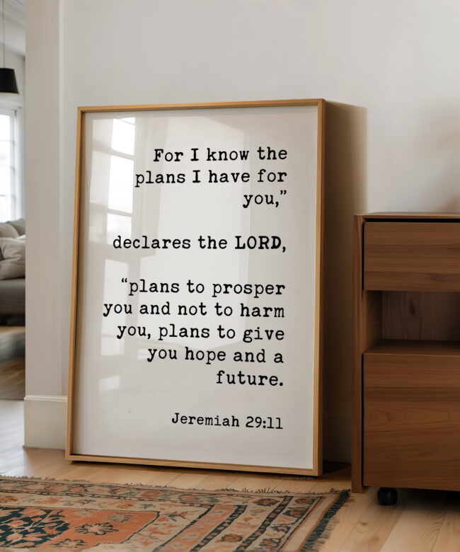 A thoughtful faith-based gift, this Jeremiah 29:11 typography print is ideal for graduations, baptisms, confirmations, weddings, or encouragement during life transitions. Its neutral design complements a variety of décor styles while carrying a powerful message of hope.