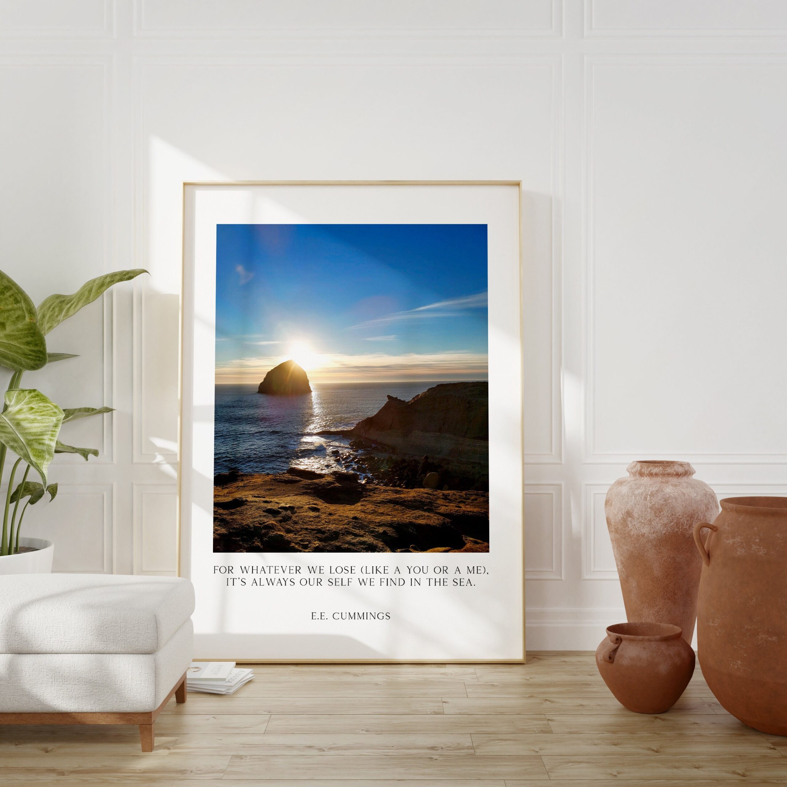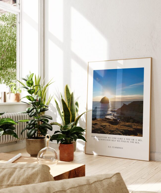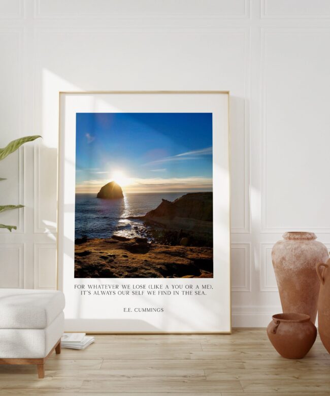 For whatever we lose (like a you or a me) it’s always ourselves we find in the sea. – e.e. cummings – Art Print – Cape Kiwanda Oregon Sunset