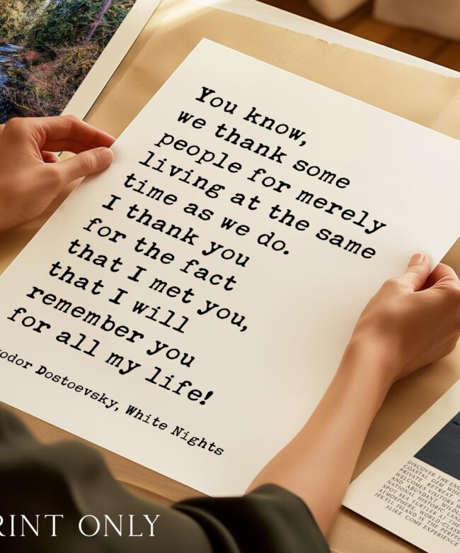 Fyodor Dostoevsky Wall Art • White Nights Quote • Typography Print • Literature