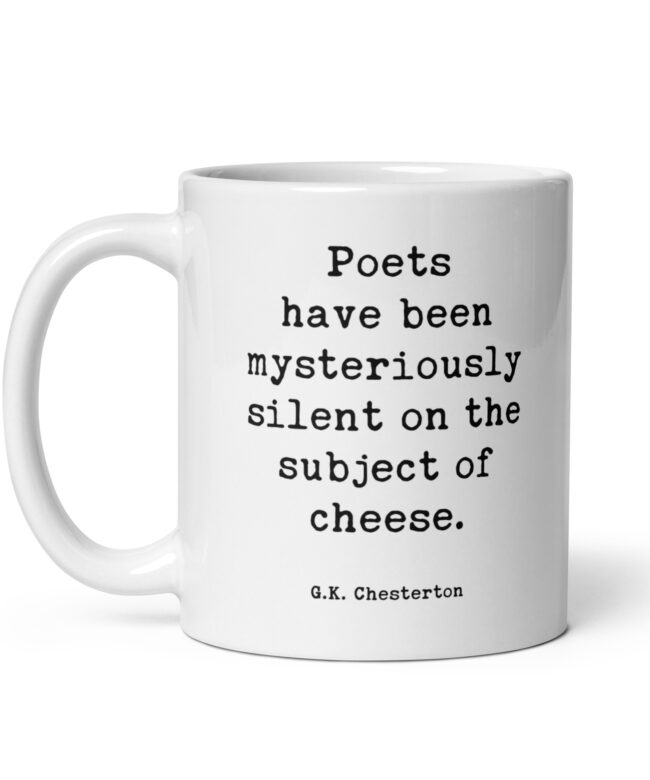 Sip your morning brew or evening chamomile tea while pondering Chesterton’s playful observation about the mysteries of cheese that poets have neglected to explore. It’s a literary journey with every sip!