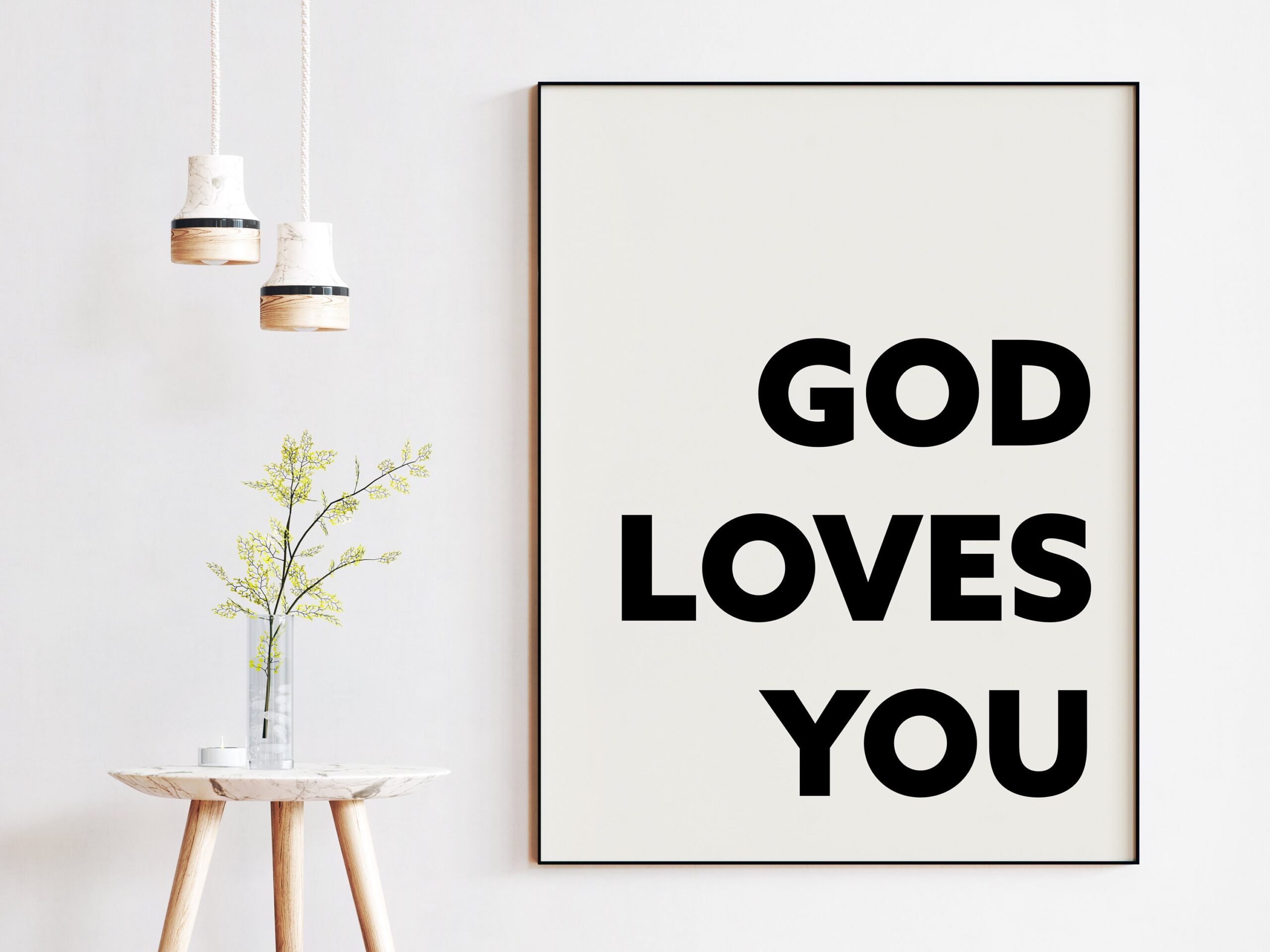 God Loves You Typography Art Print – Faith – Religious – Nursery Wal Art – Spiritual – Inspirational – Affirmation – Wall Art