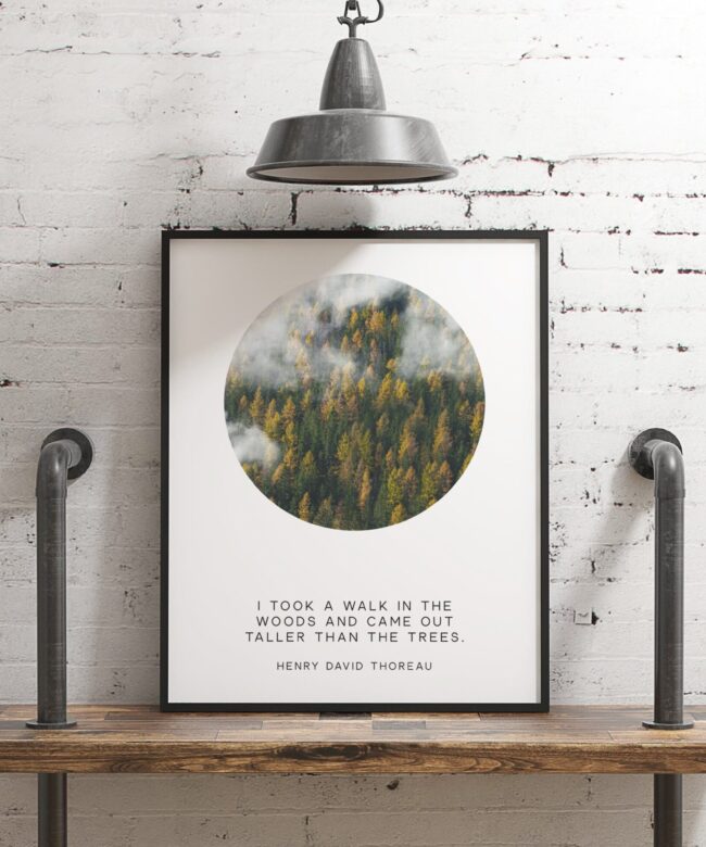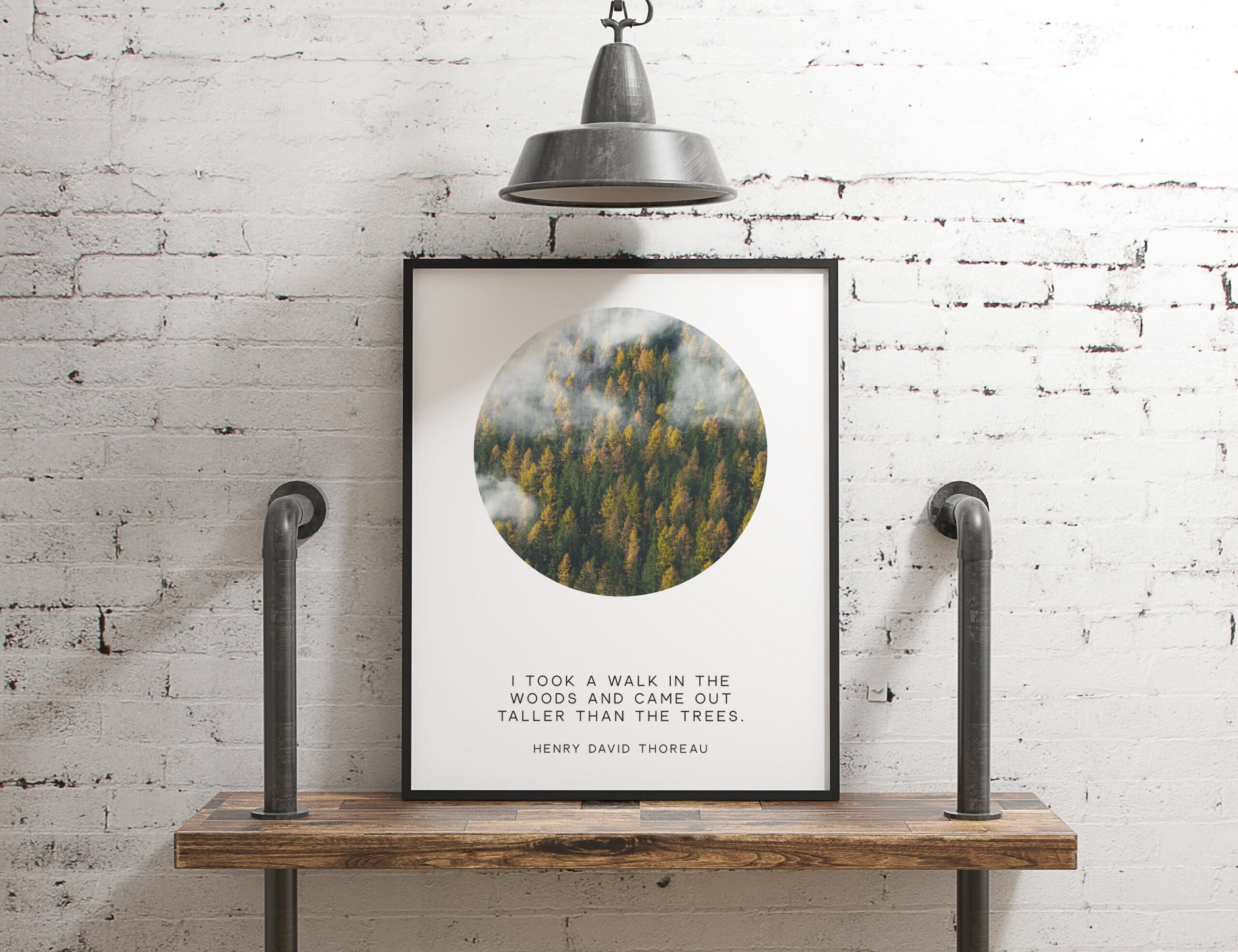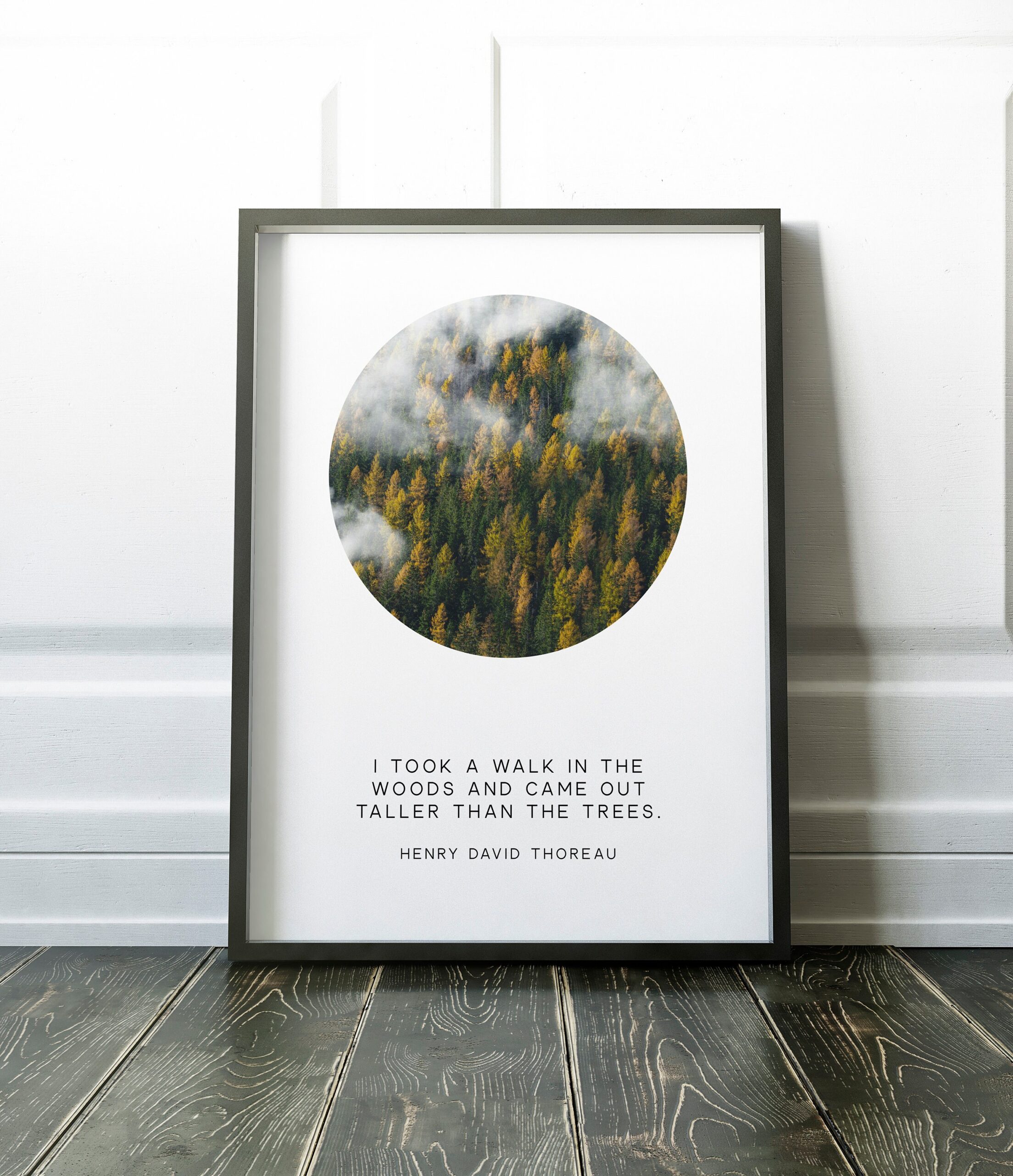 Henry David Thoreau Quote – I took a walk in the woods and came out taller than the trees. Typography Art Print – Nature – Hiker – Gift