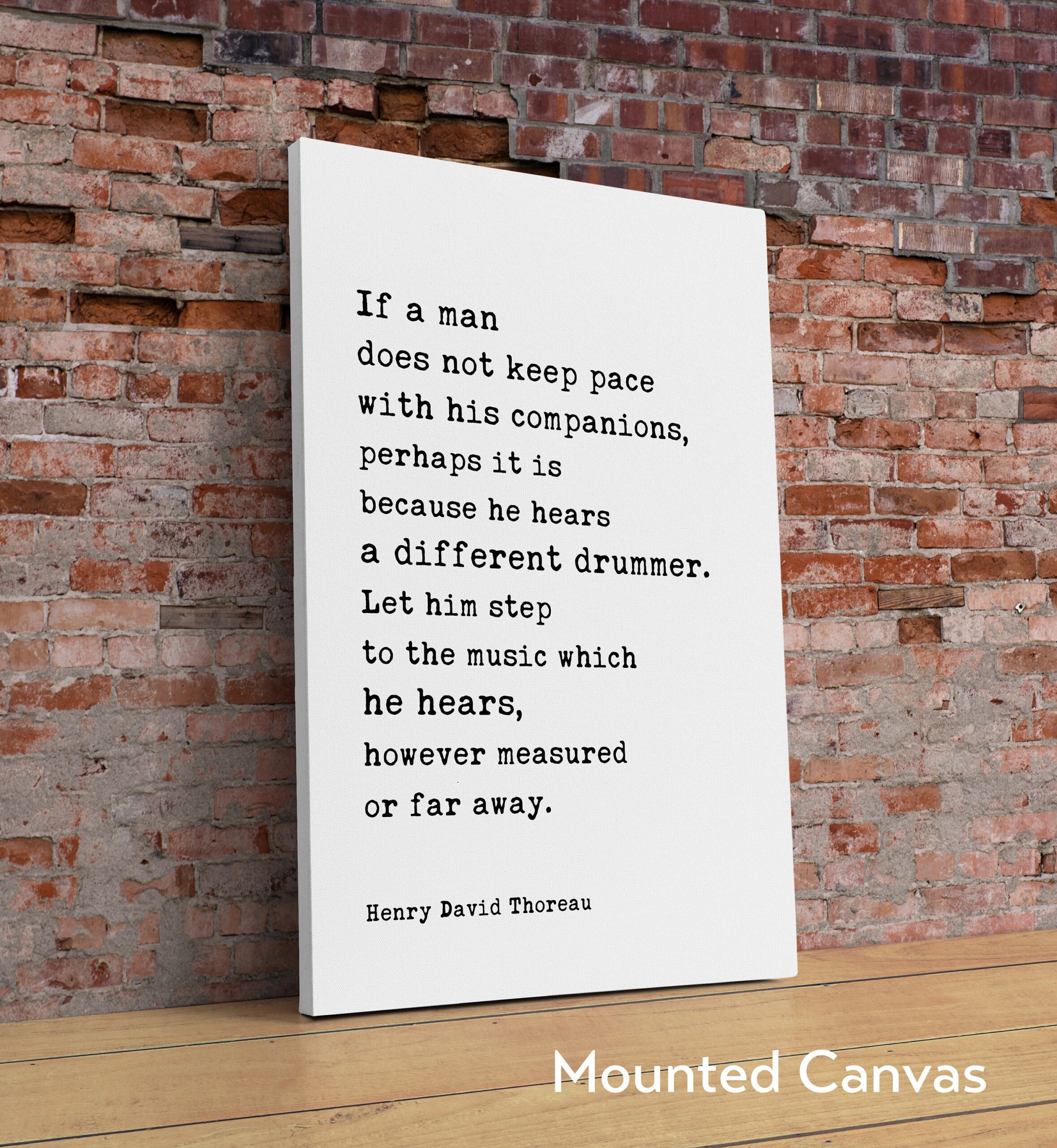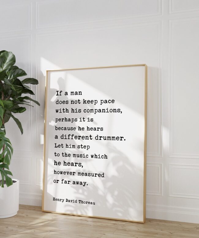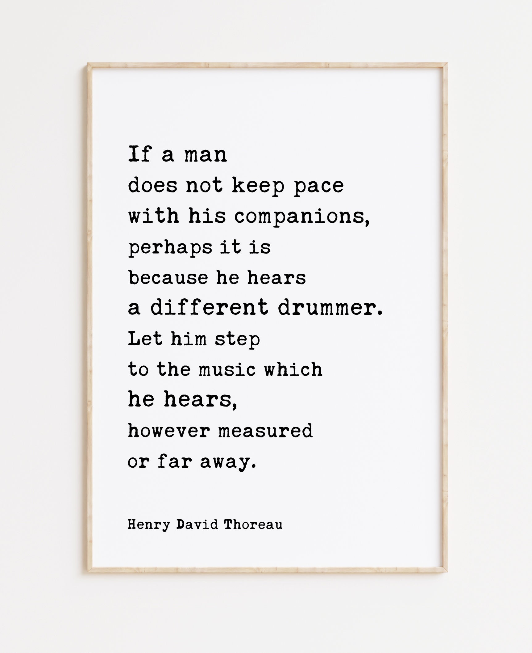 Henry David Thoreau Quote – If a man does not keep pace with his companions … he hears a different drummer. Typography Art Print