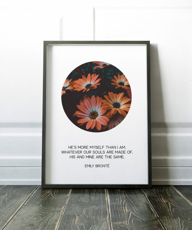 He’s more myself than I am. Whatever our souls are made of, his and mine are the same. – Emily Brontë Art Print, Typography