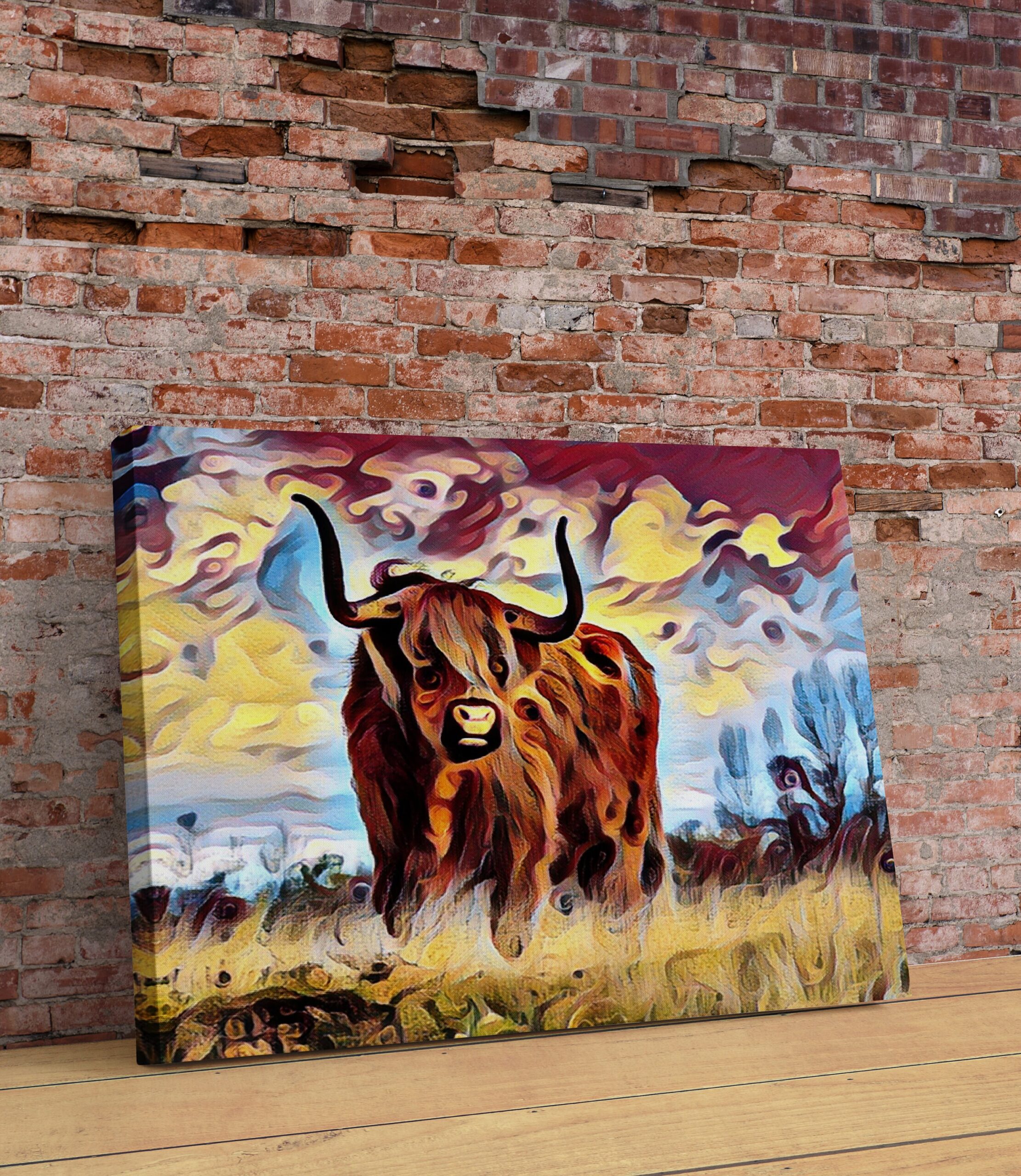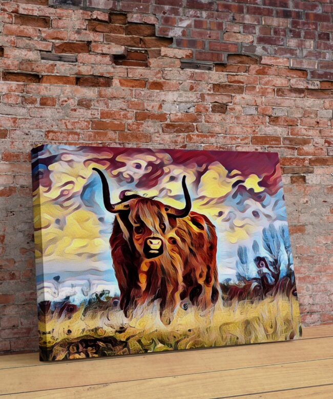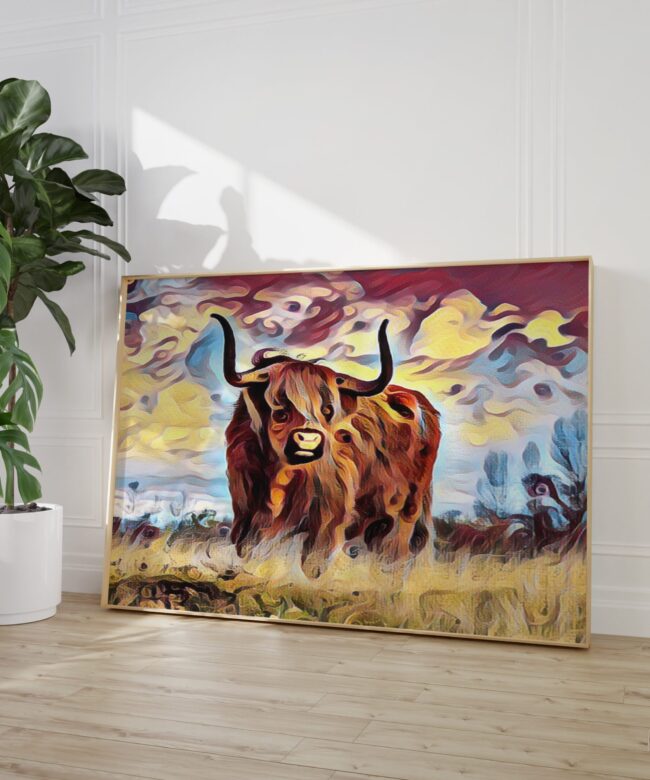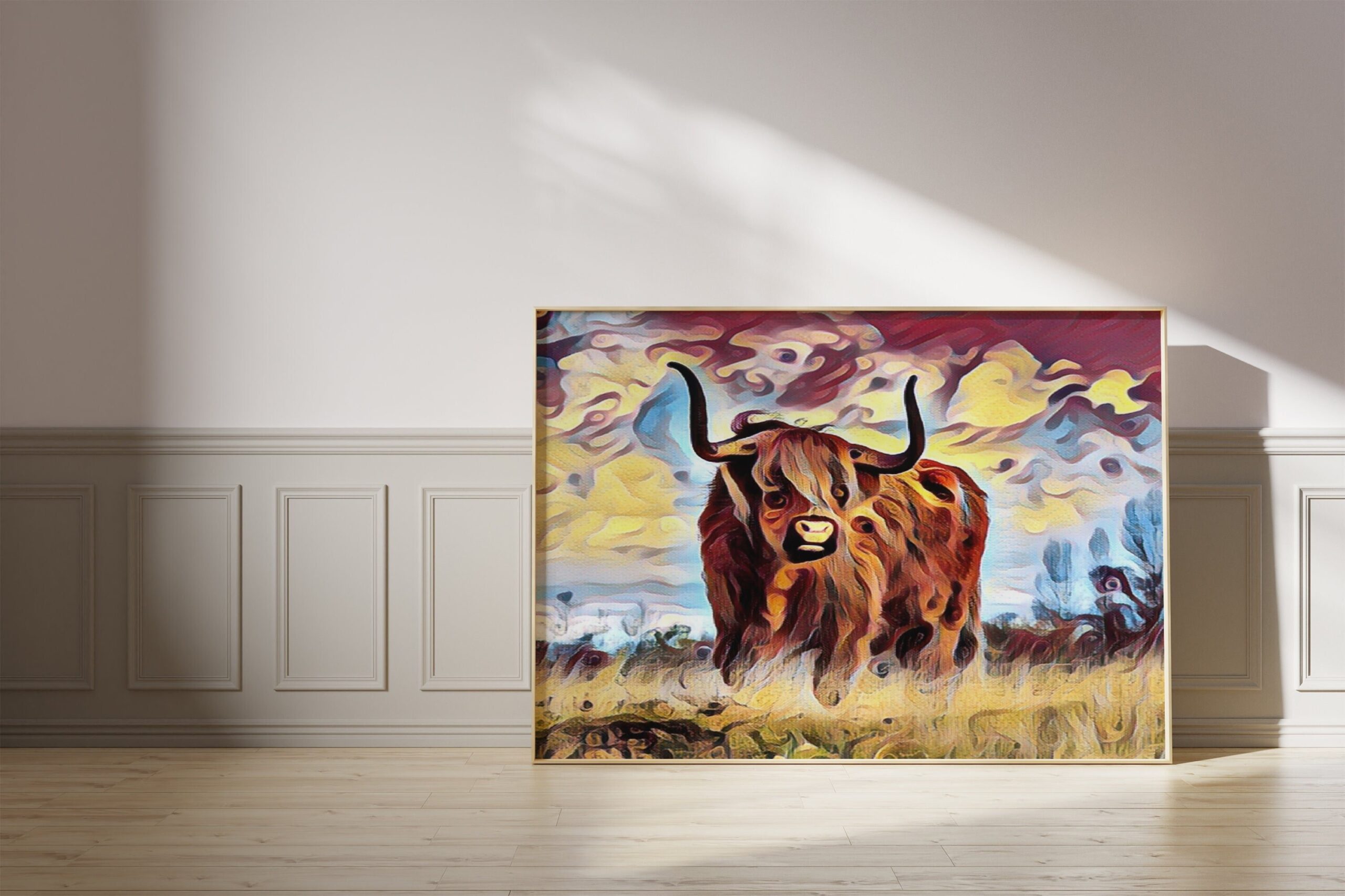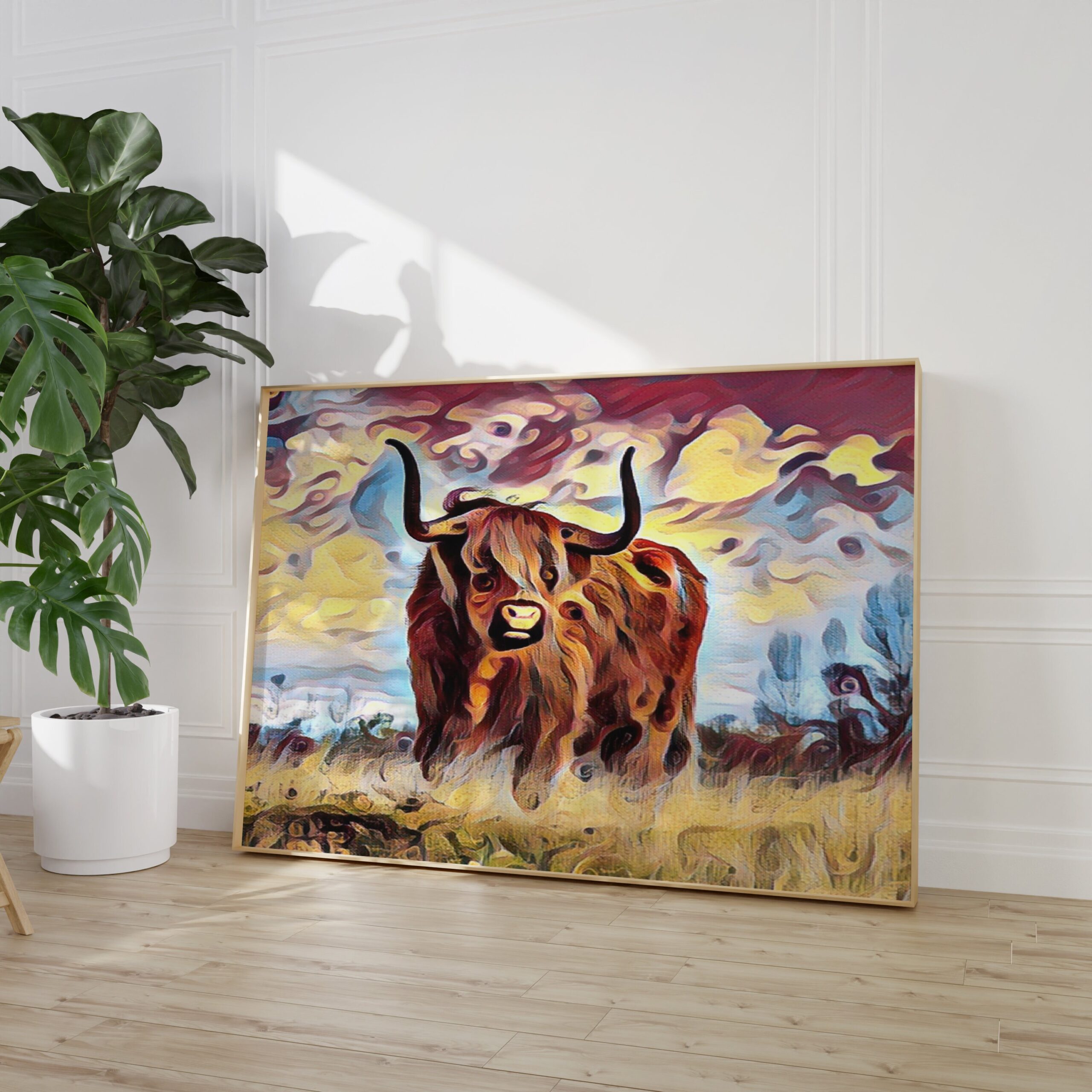 Highland Cow Digitally Created Pop Art Print – Farmhouse – Wall Decor – Kitchen – Living Room – Nursery – Colorful Art