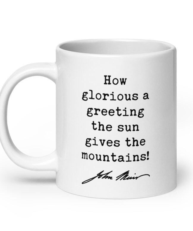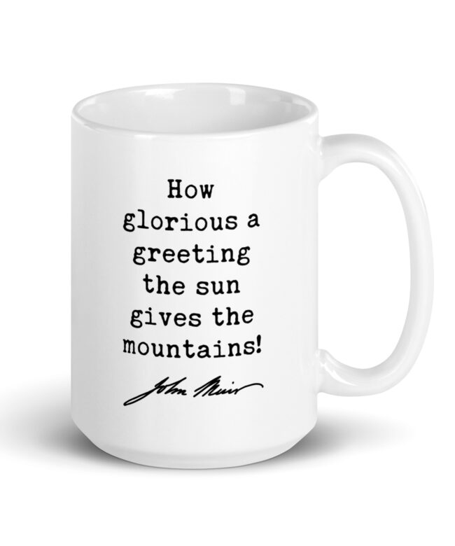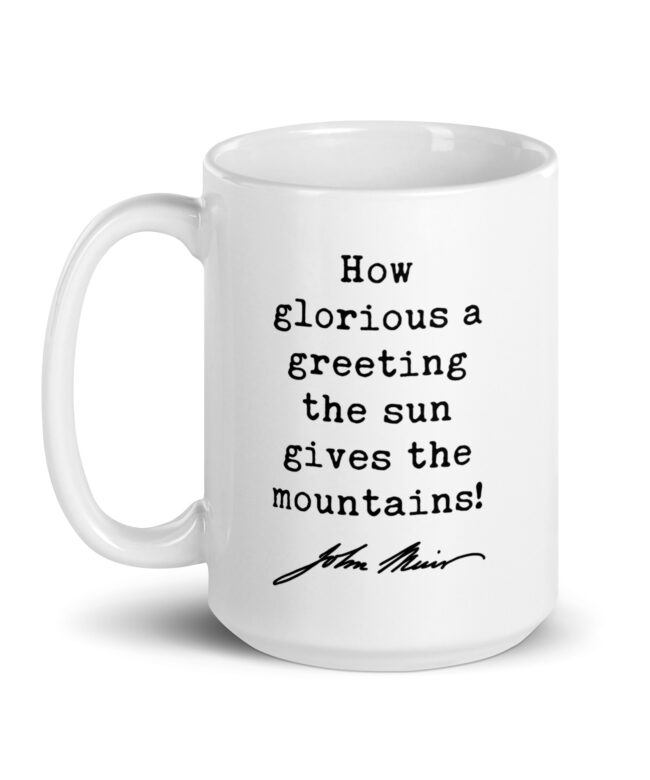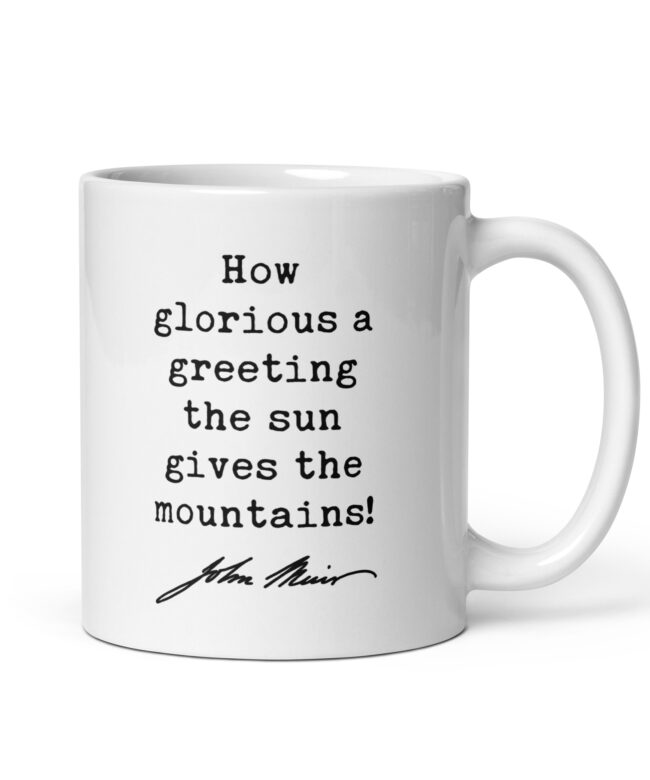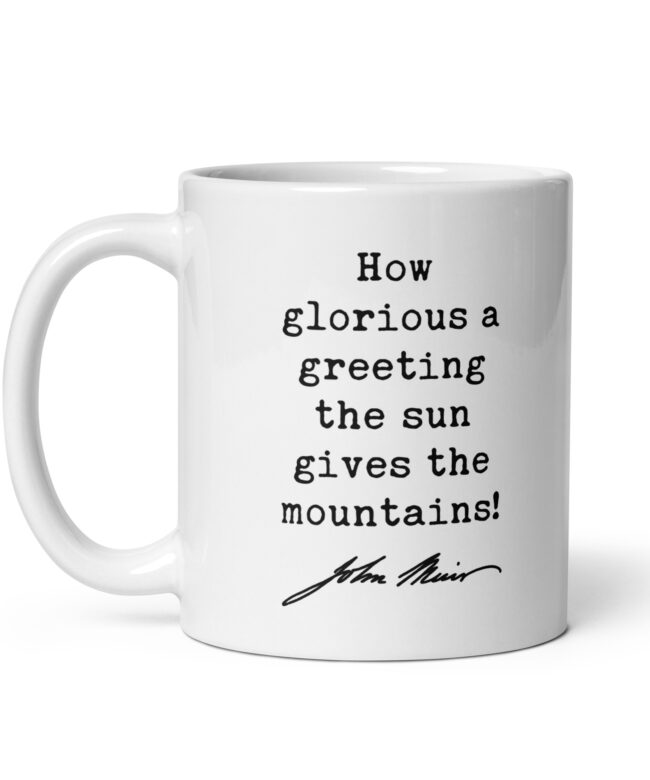 Start your day with inspiration and a touch of nature with our coffee mug featuring a heartfelt quote from the legendary John Muir, “How glorious a greeting the sun gives the mountains!”, this mug is perfect for nature lovers, adventurers, and anyone who appreciates the beauty of the great outdoors.