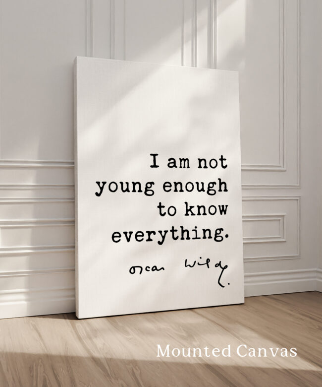 Add a touch of wit and wisdom to your space with this Typography Art Print, featuring a classic quote from Oscar Wilde: “I am not young enough to know everything.” This humorous yet thought-provoking quote is perfect for anyone who appreciates the power of self-awareness and the beauty of growing wiser with age. Display it in your living room, office, or library to inspire laughter and reflection every day. Whether for yourself or as a gift, this print brings a touch of wisdom to any home.