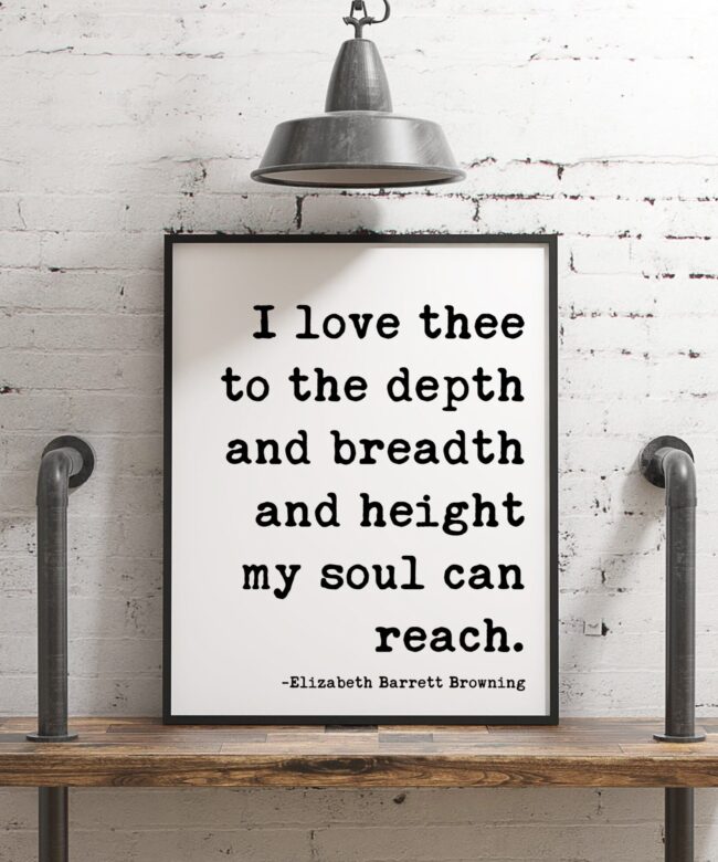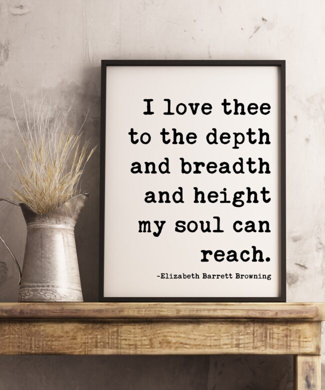 I Love Thee To The Depth and Breadth and Height My Soul Can Reach – Elizabeth Barrett Browning – Typography Print – Wedding Poem – Art