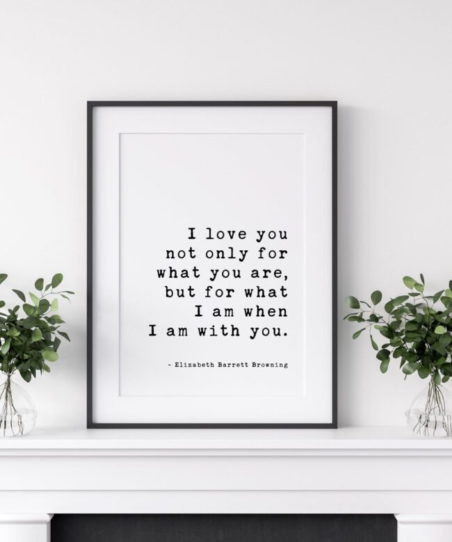 I love you not only for what you are, but for what I am when I am with you. – Elizabeth Barrett Browning Art Print – Wedding Poems, Quotes