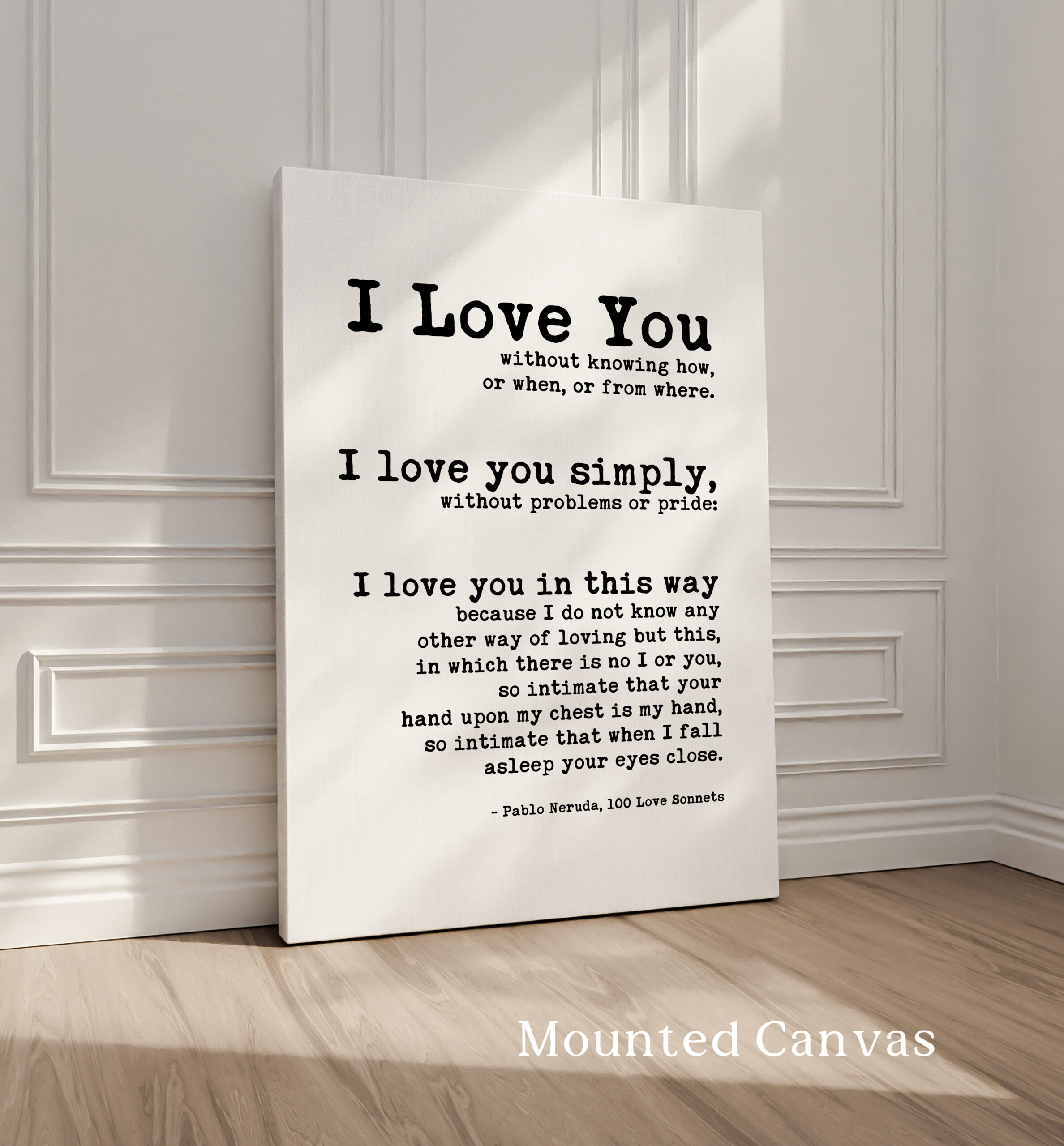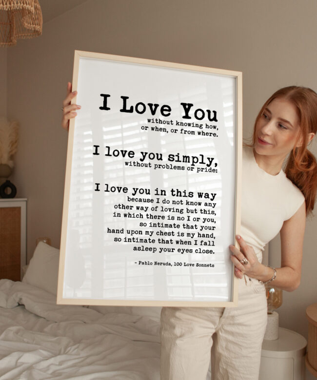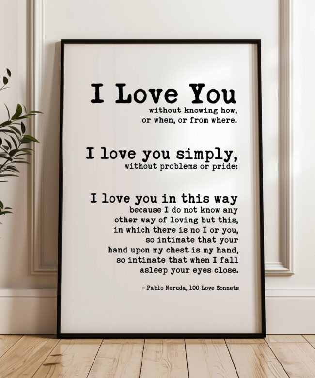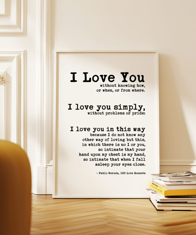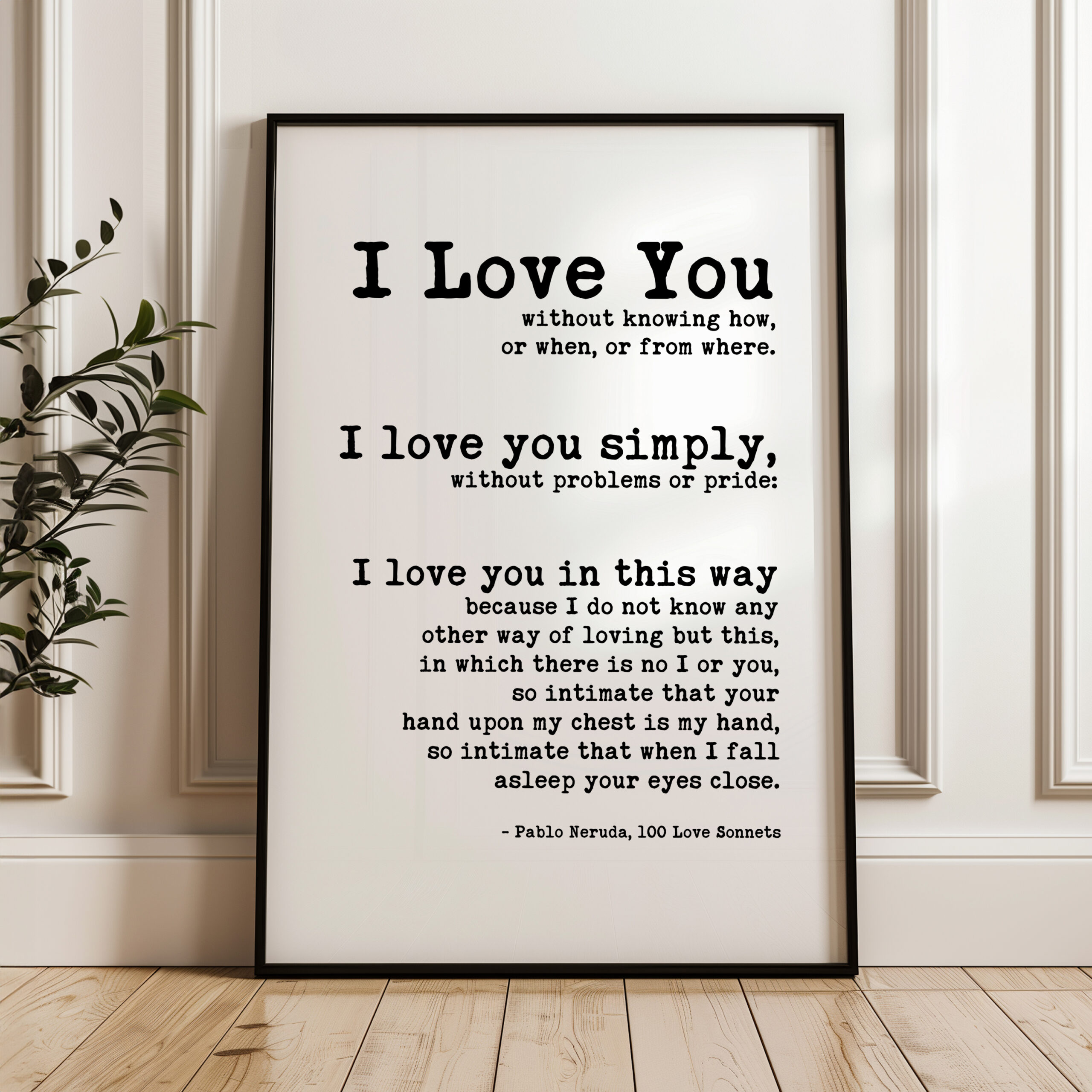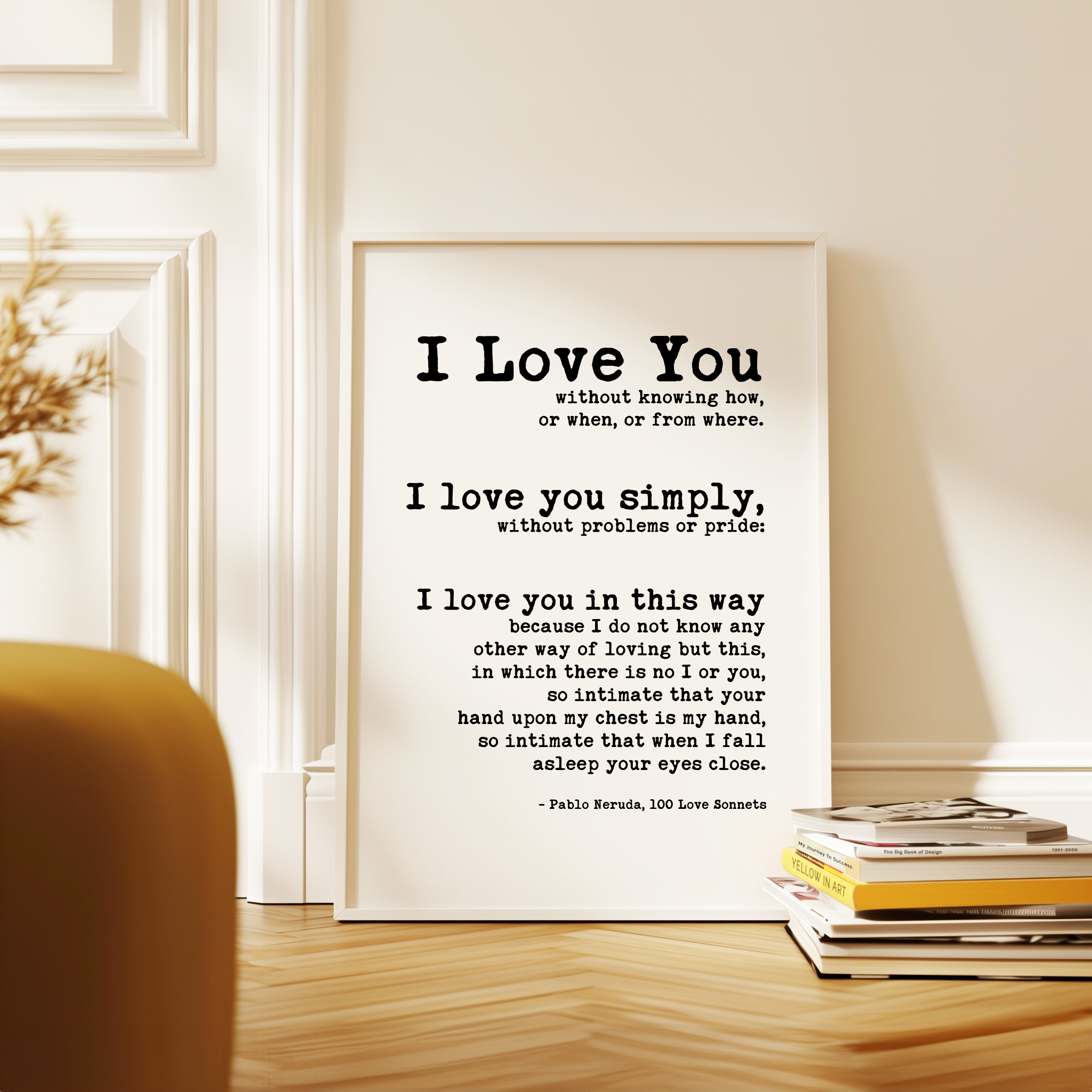 I Love You Without Knowing How • Pablo Neruda Poem • Typography Art Print • Anniversary Gift • Wedding • 100 Love Sonnets