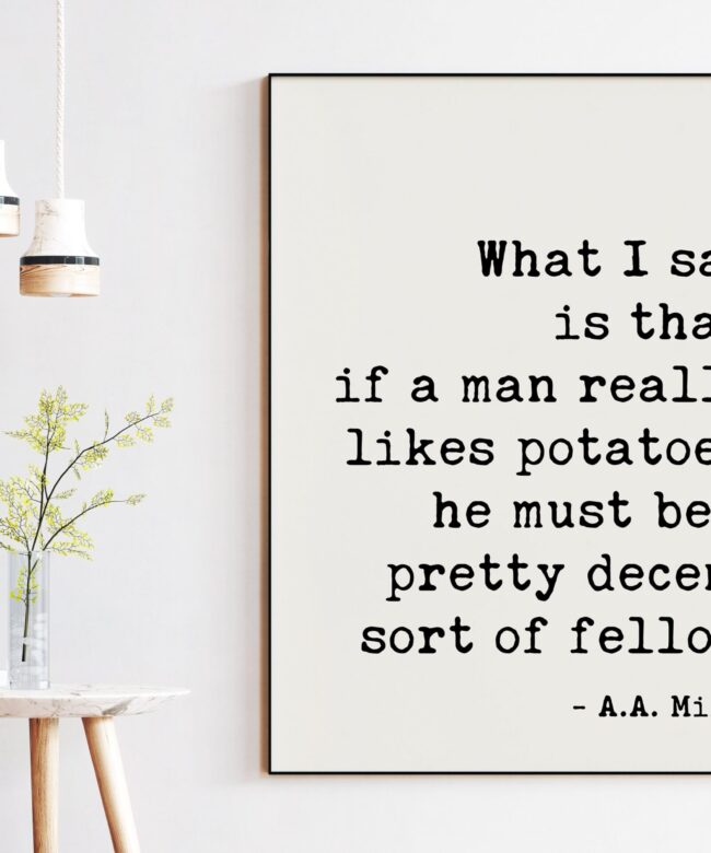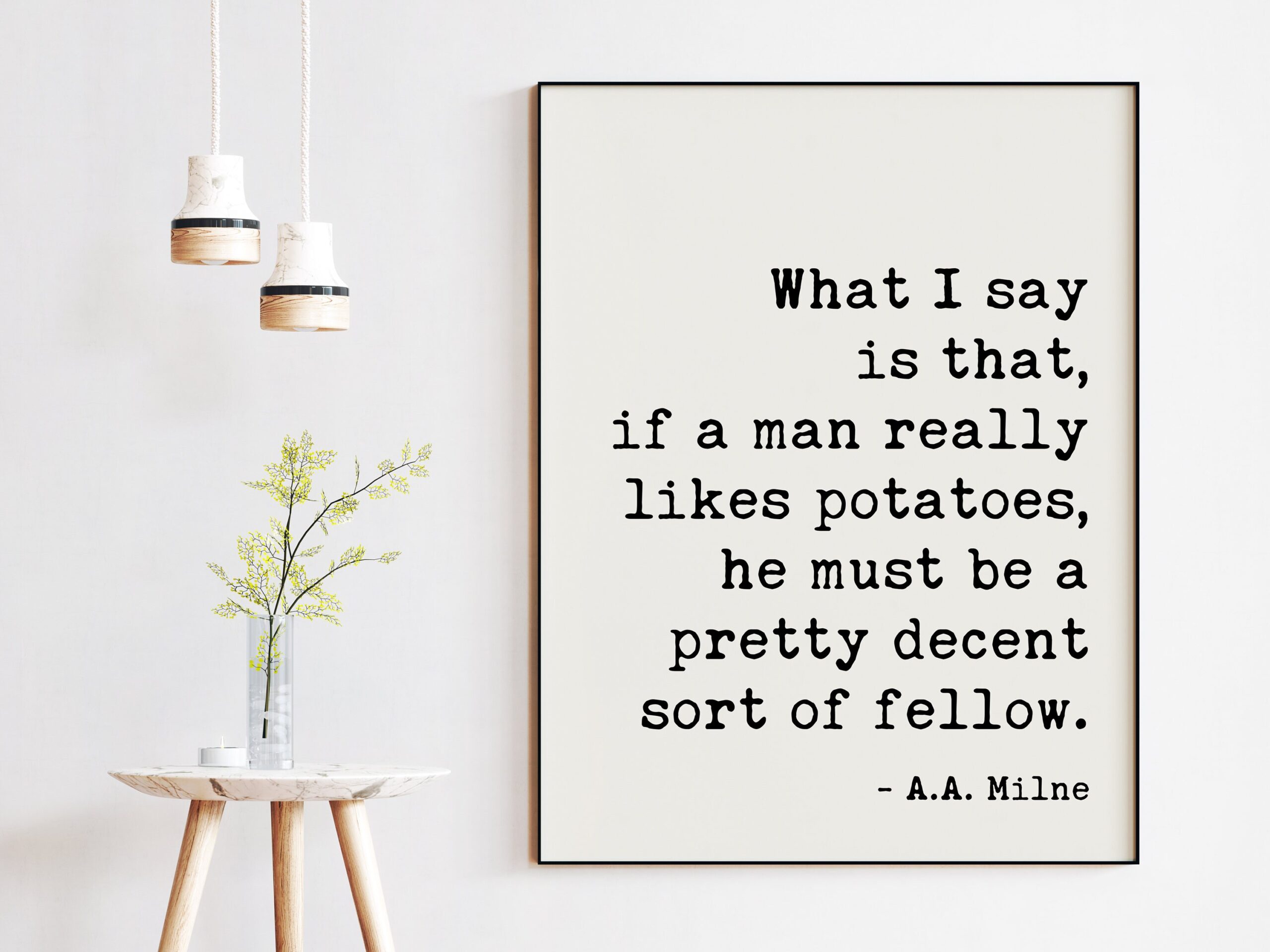 If a man really likes potatoes, he must be a pretty decent sort of fellow. A.A. Milne Quote Art Print – Kitchen and Dining Art – Foodie