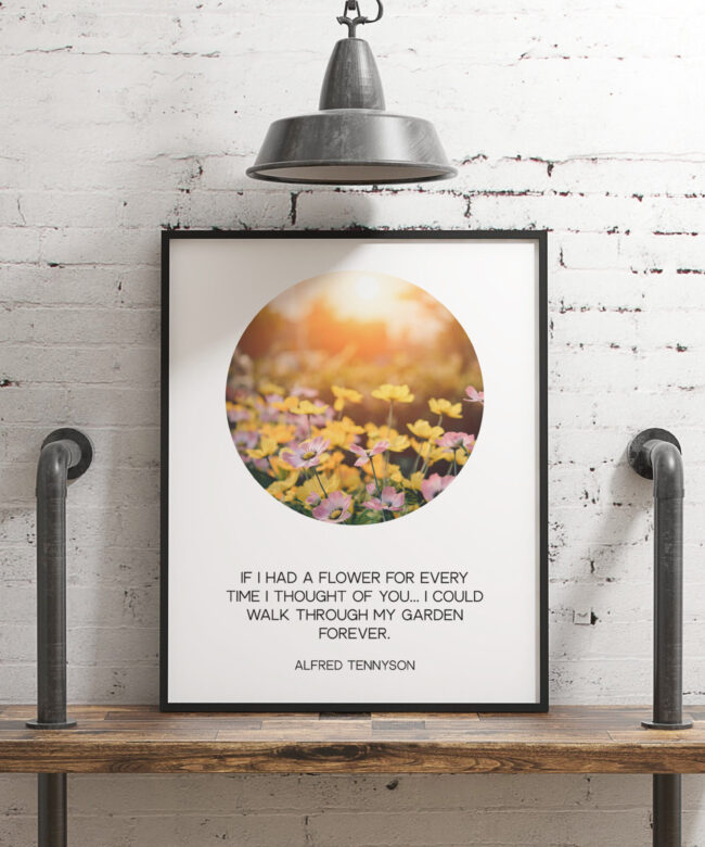 If I had a flower for every time I thought of you… I could walk through my garden forever. – Alfred Tennyson Typography, Poems, Quotes