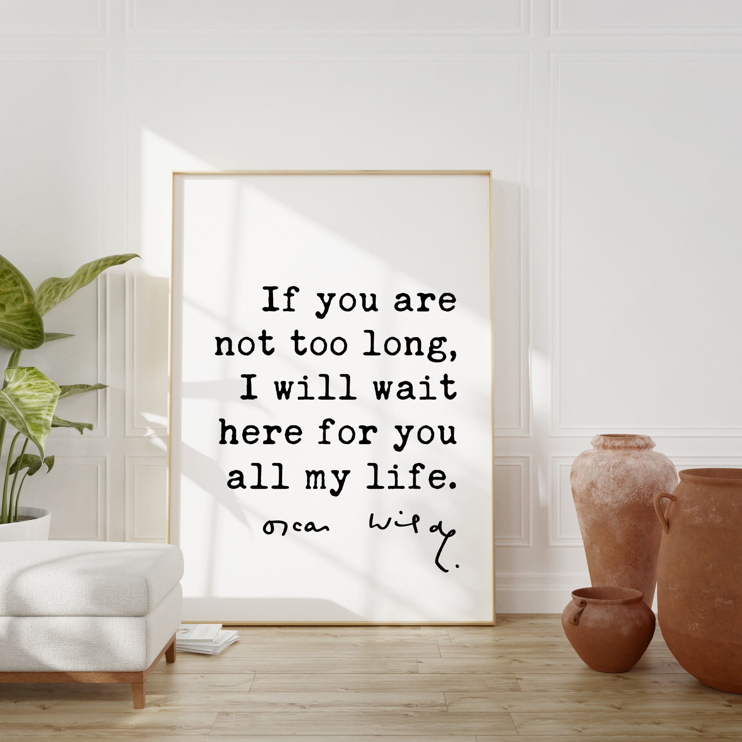 If you are not too long, I will wait here for you all my life. – Oscar Wilde Quote Typography Print – Oscar Wilde Love Quote