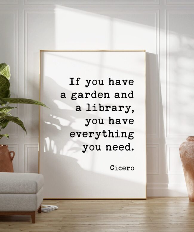 If you have a garden and a library, you have everything you need. – Cicero Typography Art Print – Garden Lover – Bibliophile – Inspiration