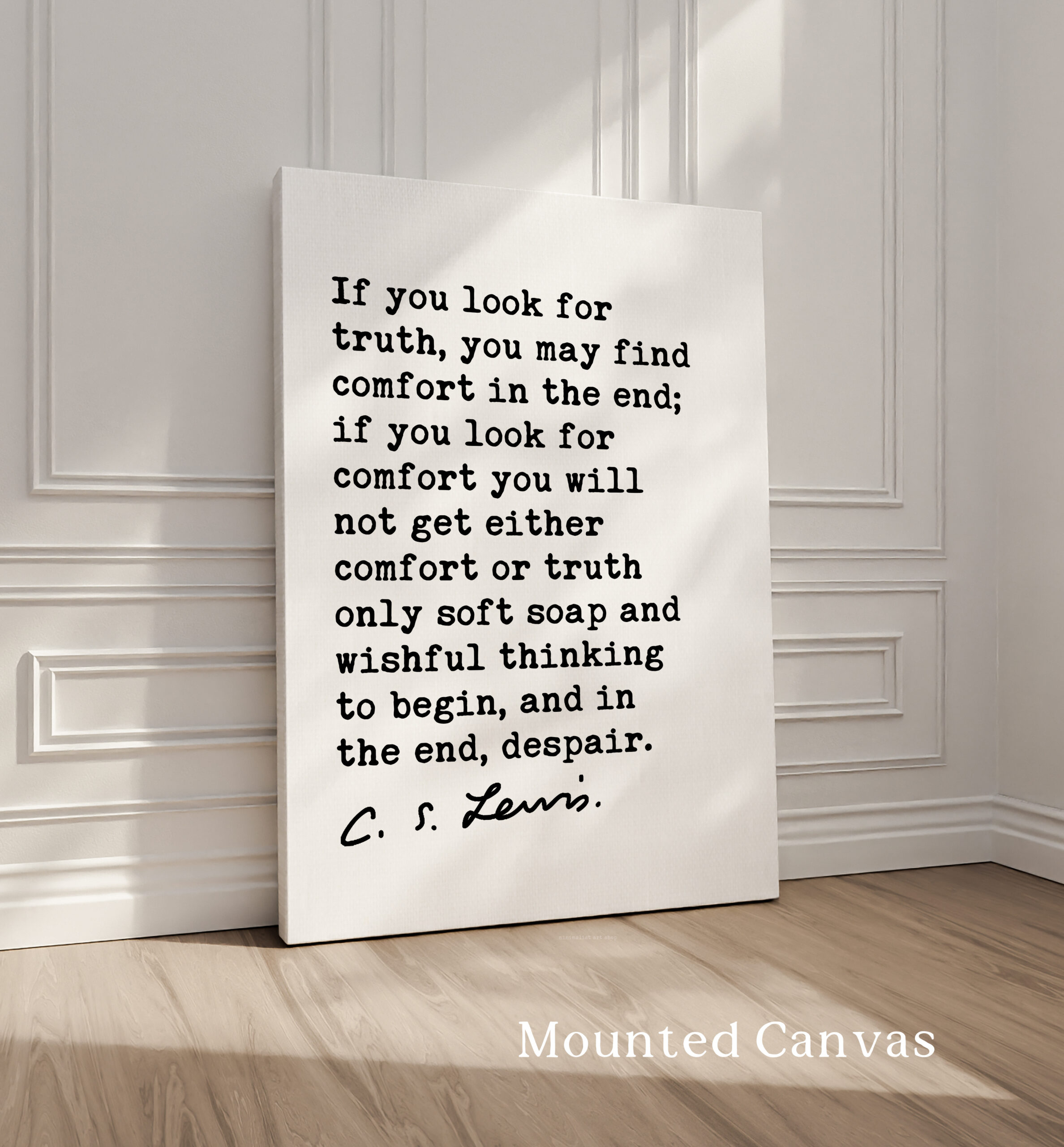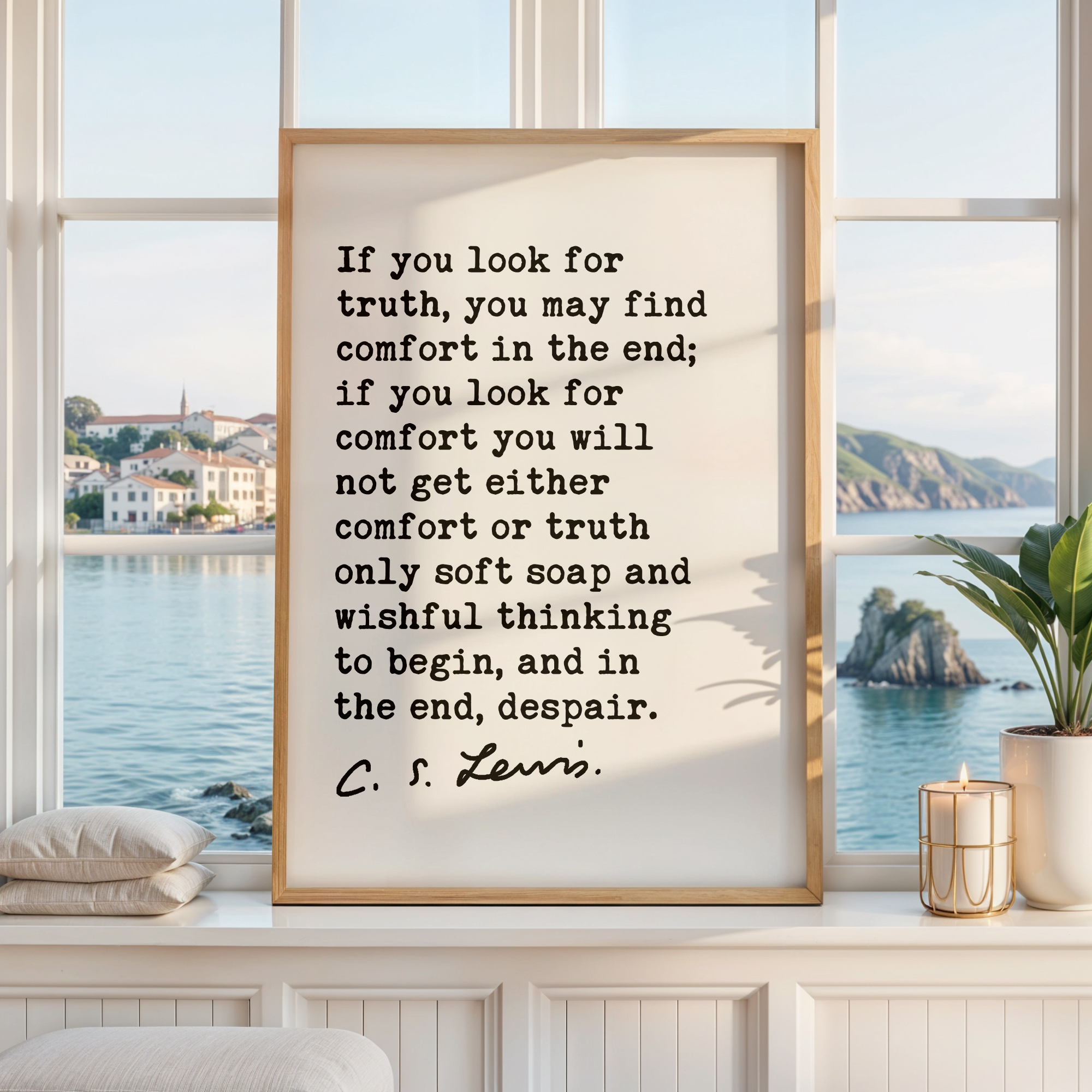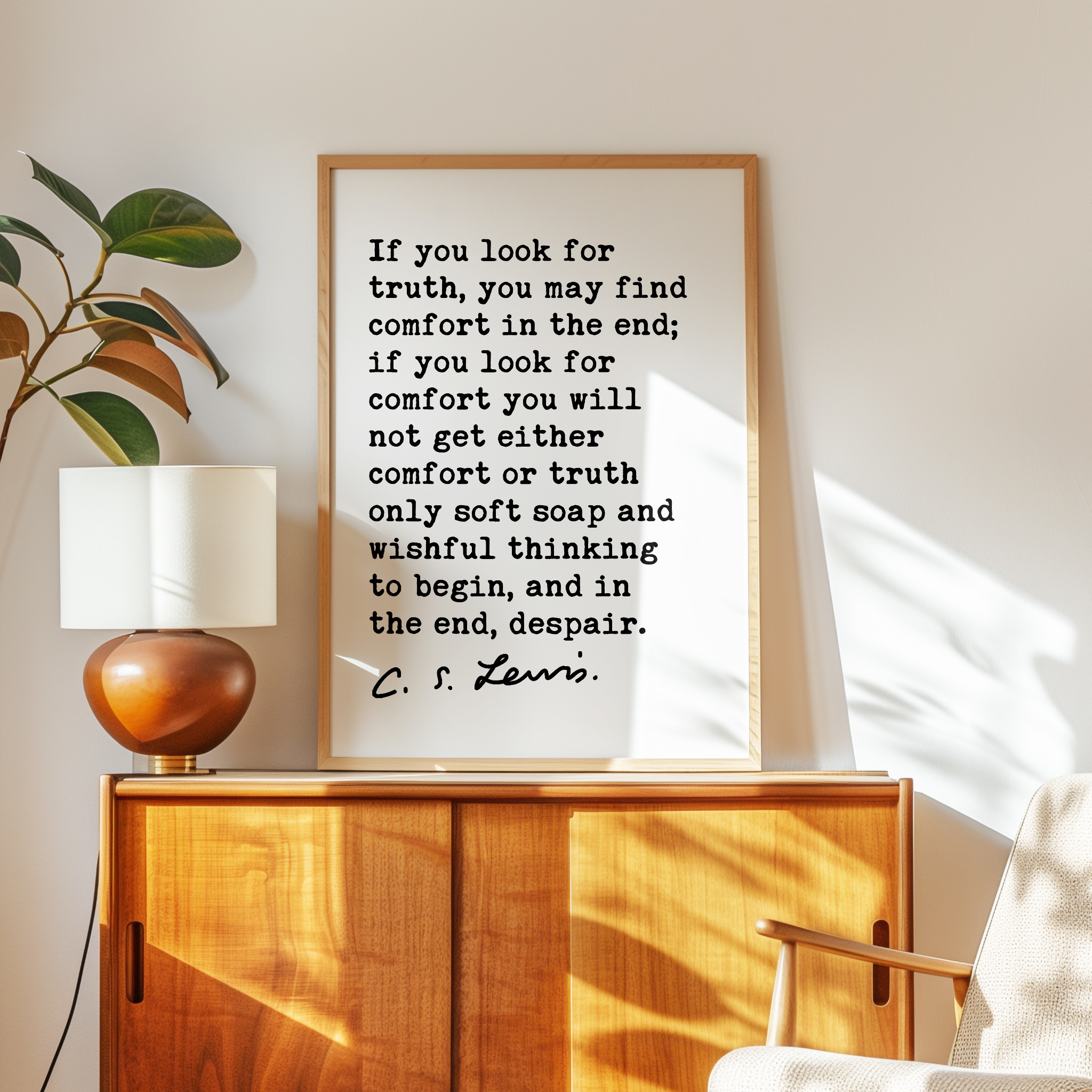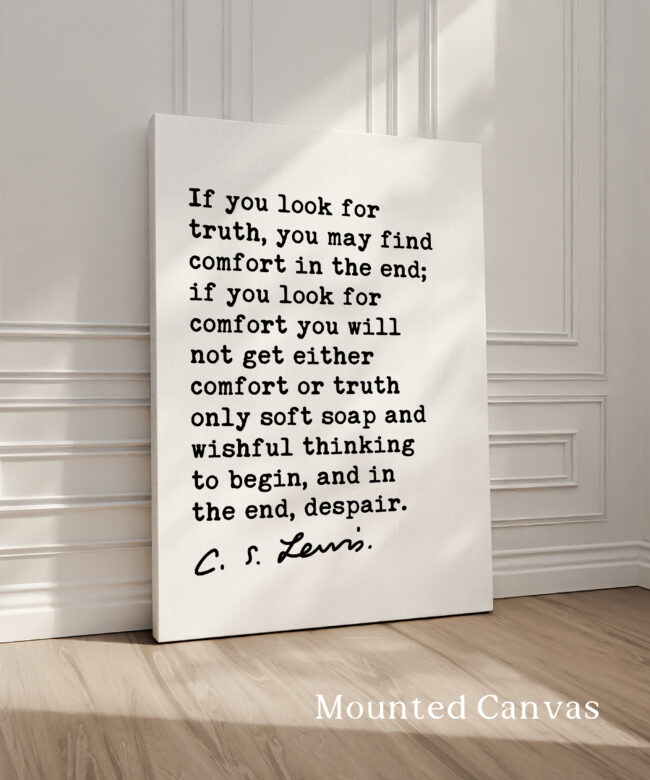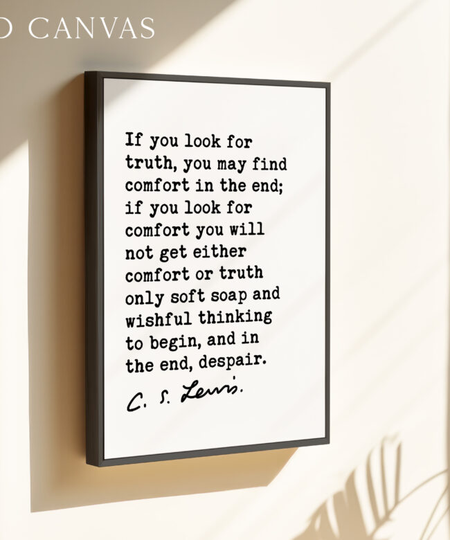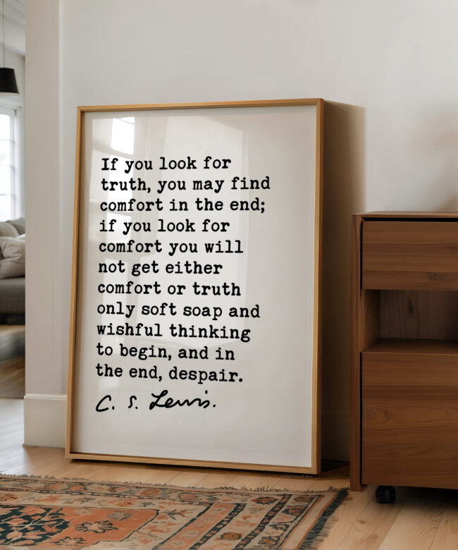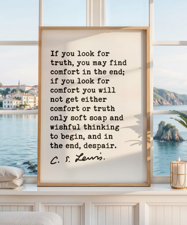 Add a bit of timeless wisdom to your home with this C. S. Lewis quote print. Thought-provoking and beautifully simple, it’s a reminder that seeking truth ultimately leads to deeper comfort than chasing quick fixes. Makes a meaningful gift for graduates, thinkers, or anyone navigating life’s bigger questions.