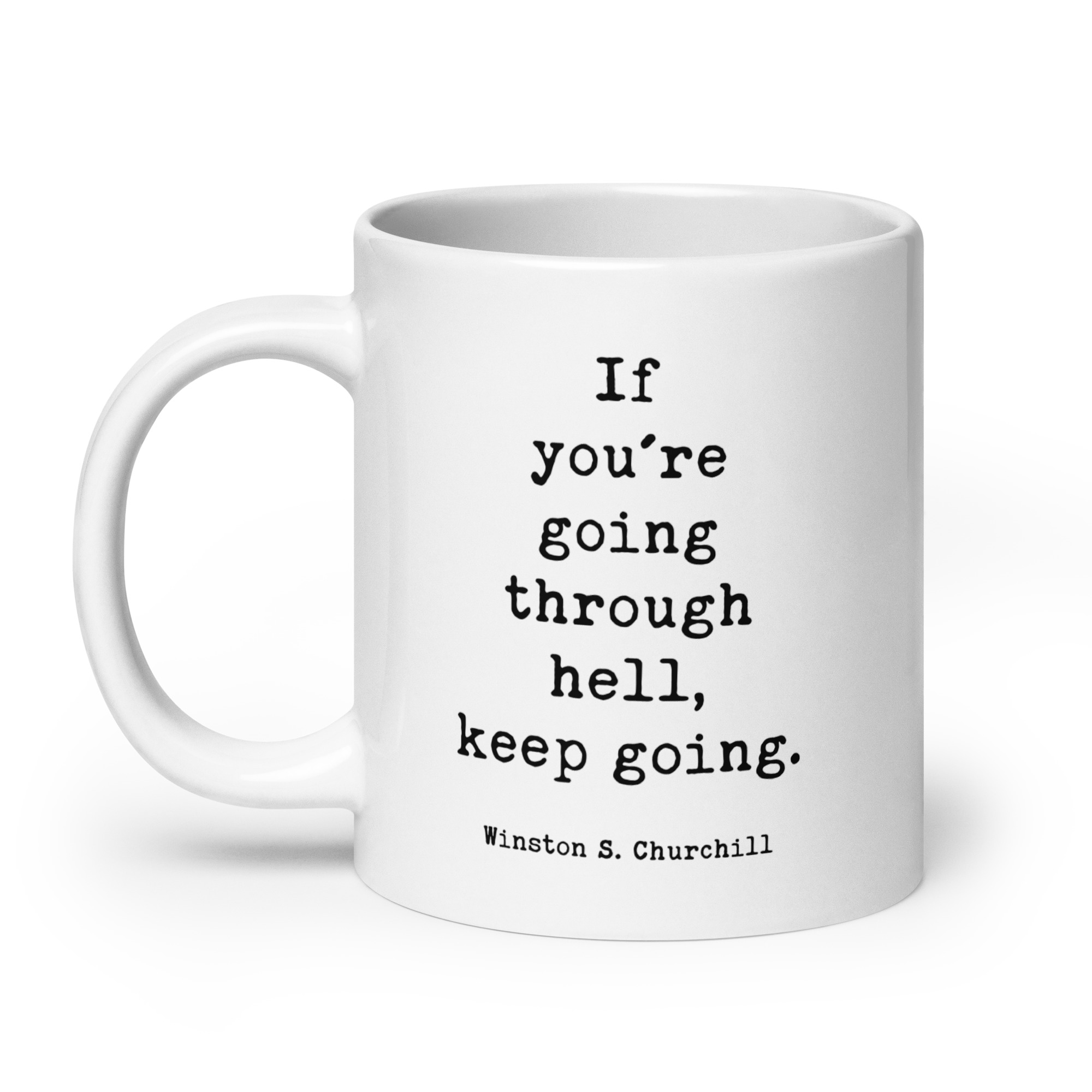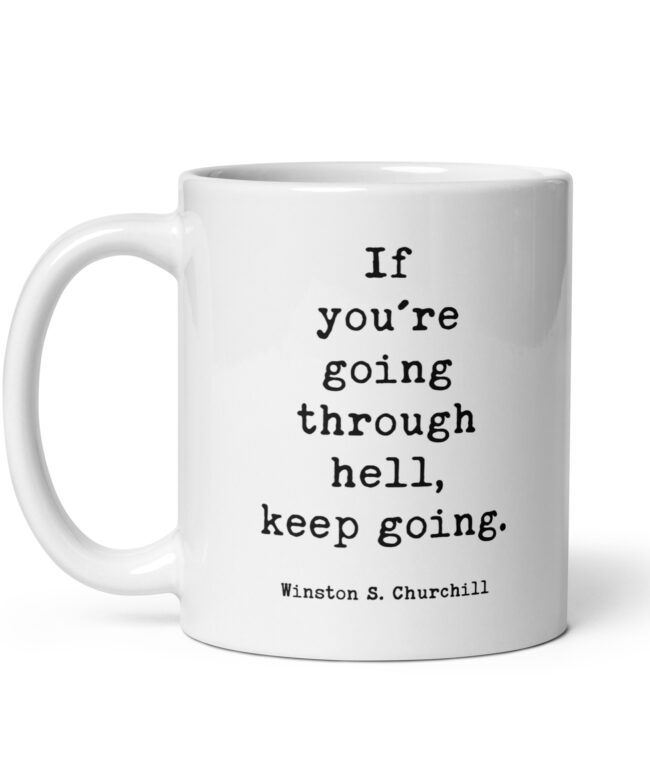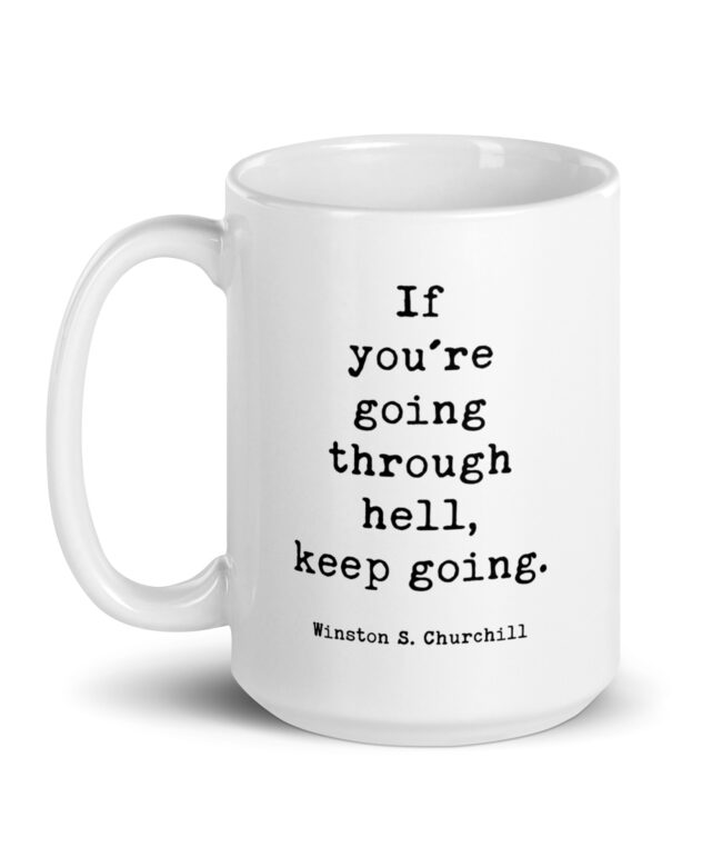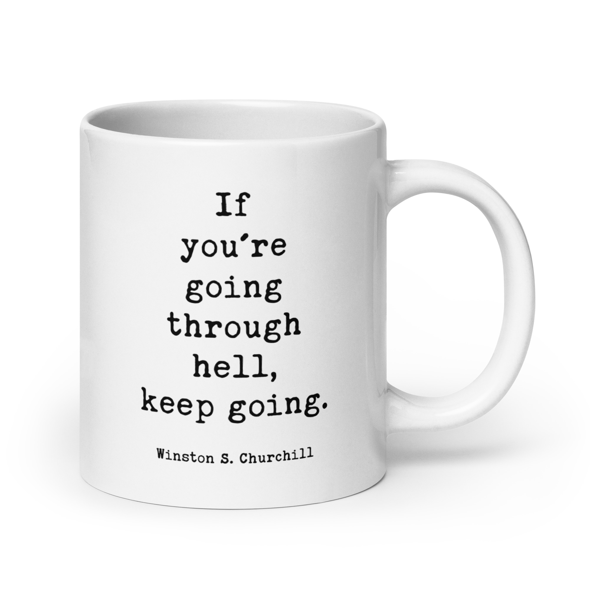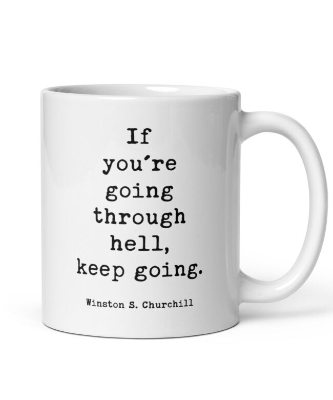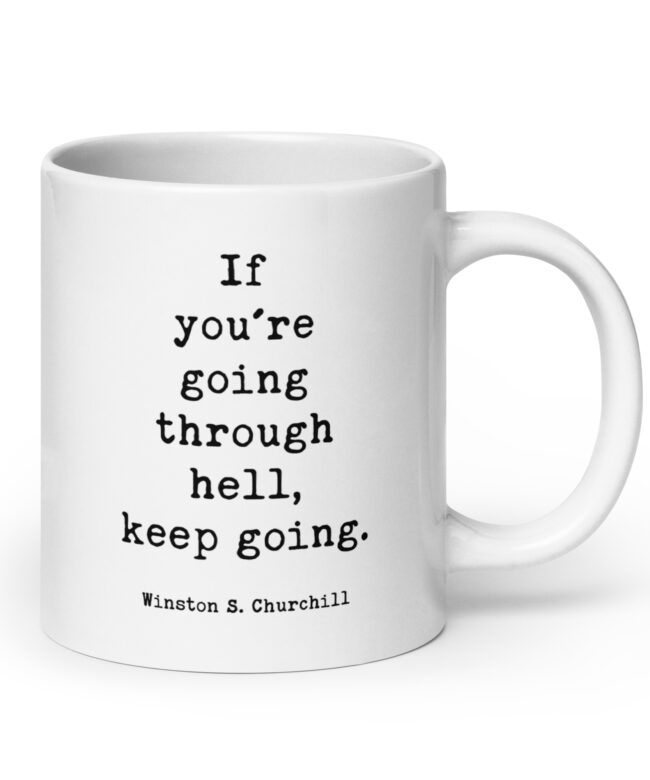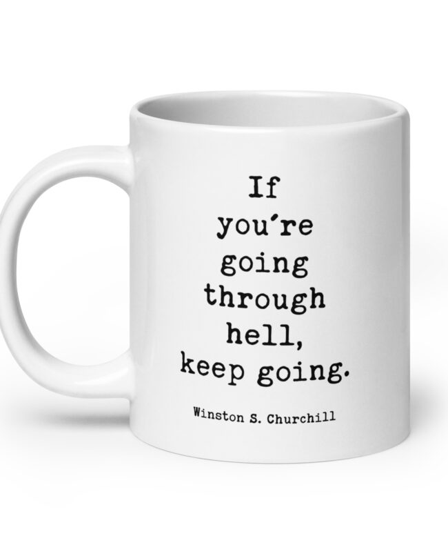 Stay inspired no matter what life throws at you with this empowering coffee mug featuring Winston S. Churchill’s timeless words: “If you’re going through hell, keep going.” Perfect for anyone who needs a little extra motivation to keep going, this mug is available in 11oz, 15oz, or 20oz sizes, making it the ideal companion for your coffee, tea, or any beverage. Whether you’re giving it as a gift or keeping it for yourself, this ceramic mug is sure to become a favorite source of encouragement.