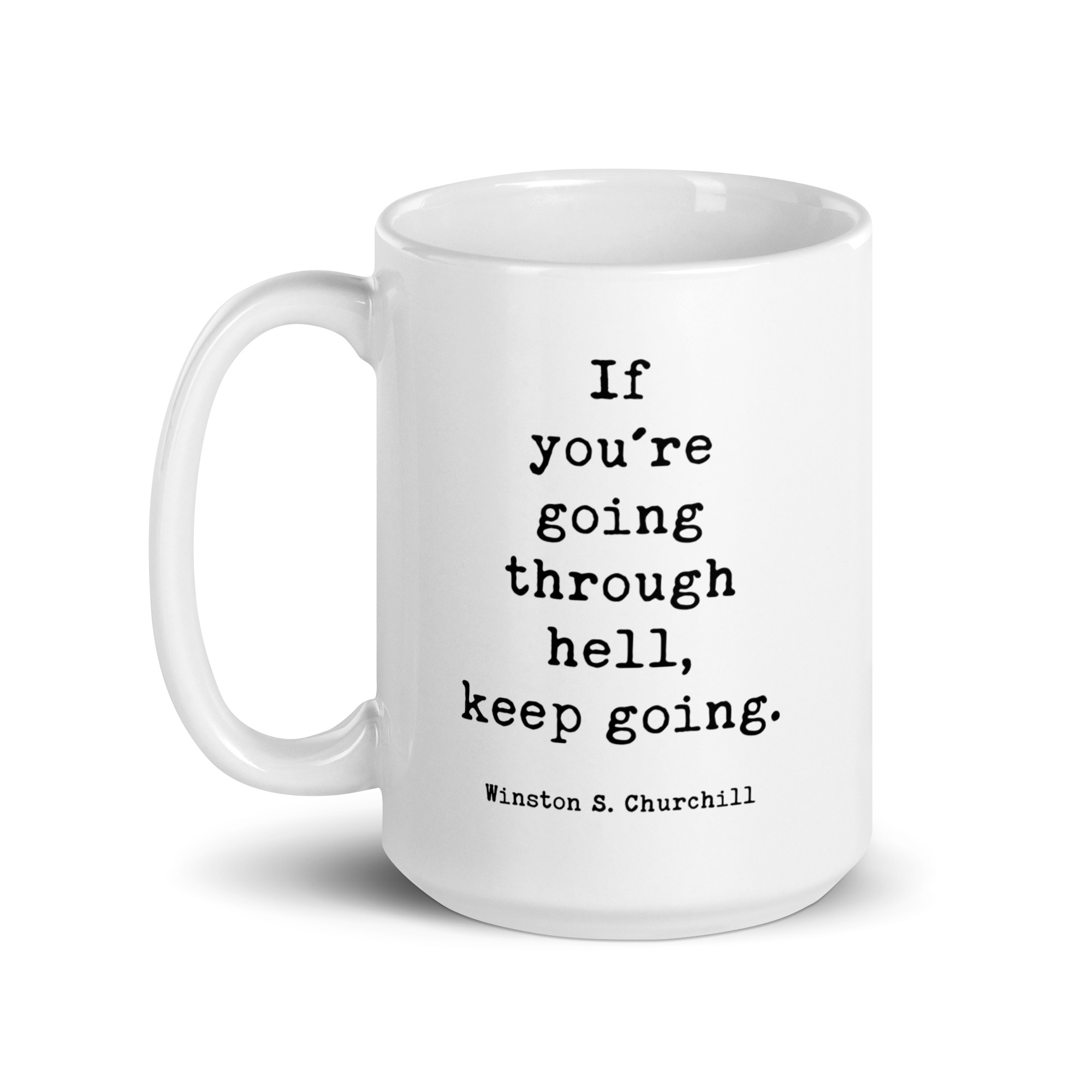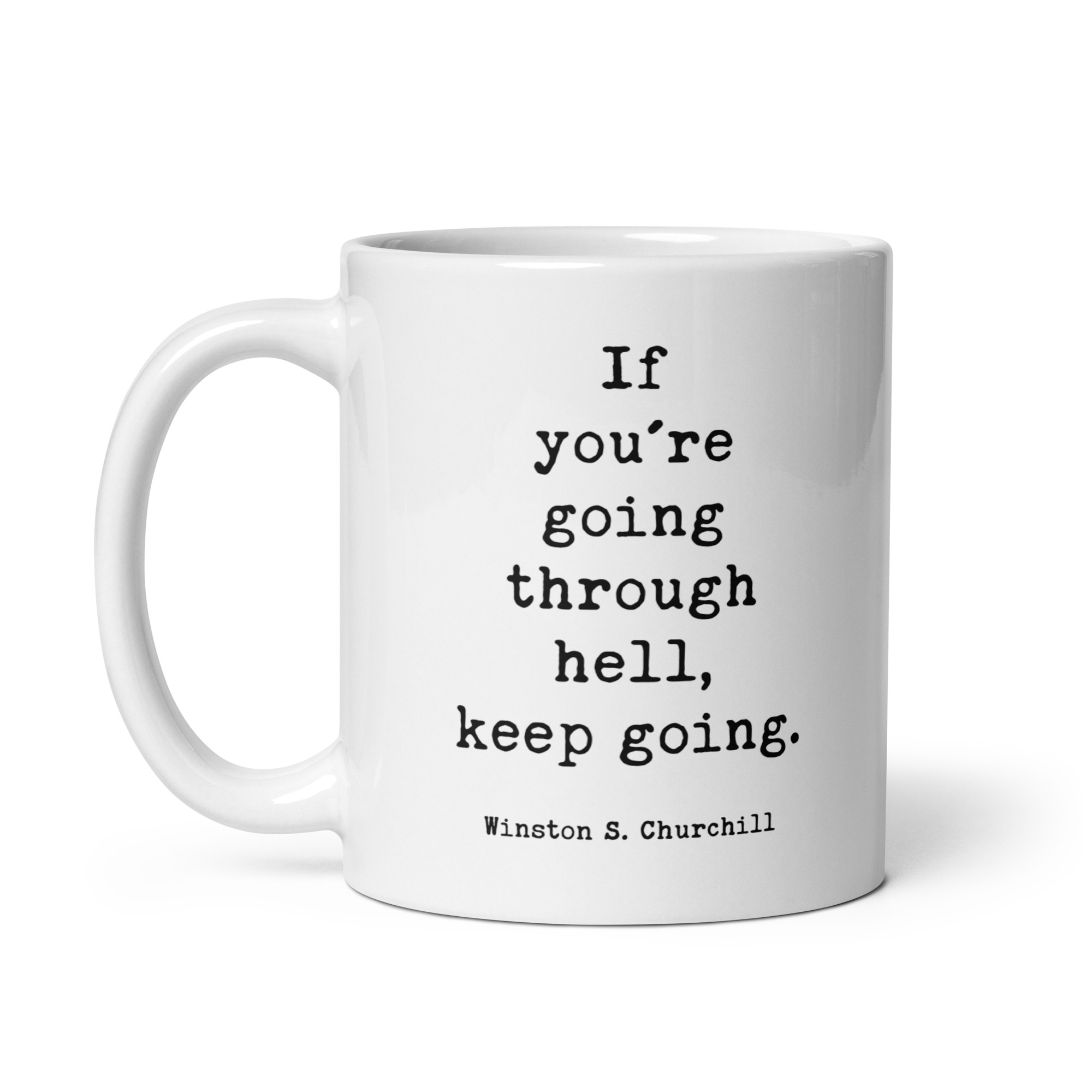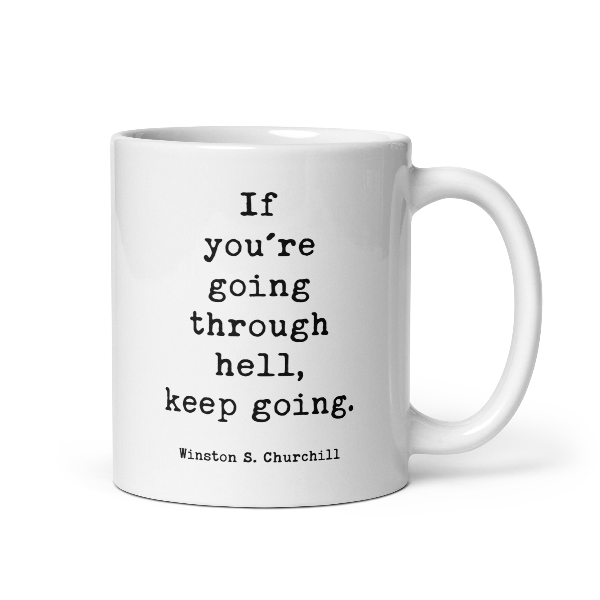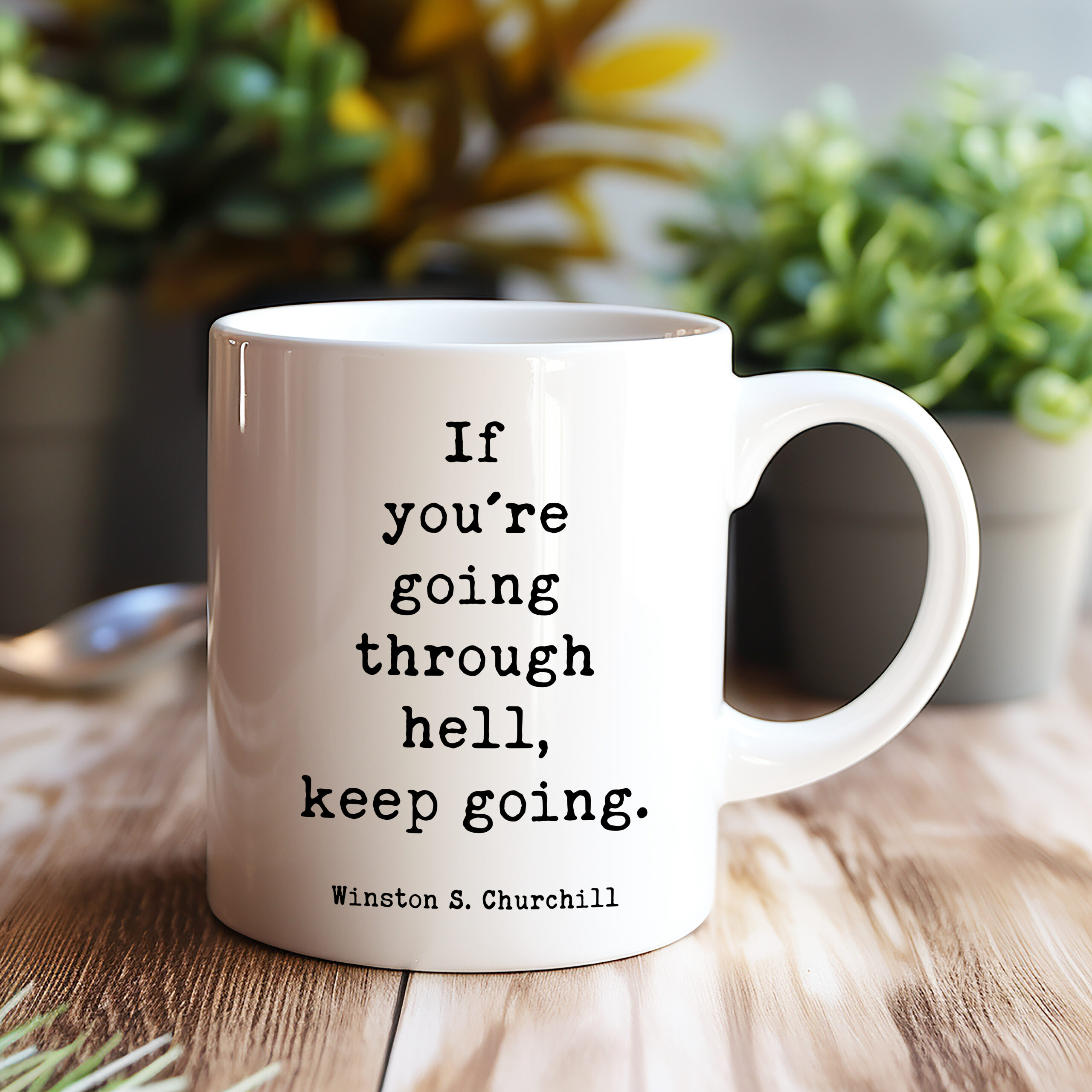 Stay inspired no matter what life throws at you with this empowering coffee mug featuring Winston S. Churchill’s timeless words: “If you’re going through hell, keep going.” Perfect for anyone who needs a little extra motivation to keep going, this mug is available in 11oz, 15oz, or 20oz sizes, making it the ideal companion for your coffee, tea, or any beverage. Whether you’re giving it as a gift or keeping it for yourself, this ceramic mug is sure to become a favorite source of encouragement.