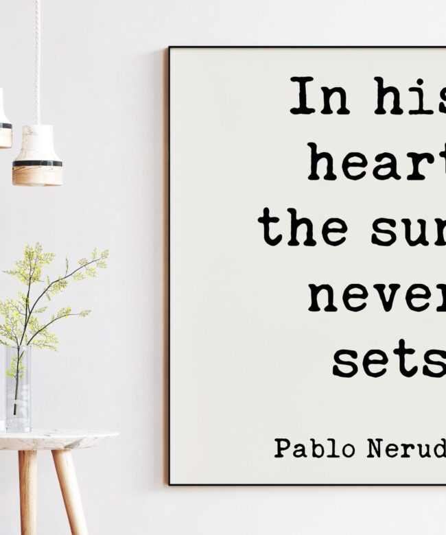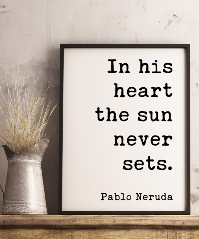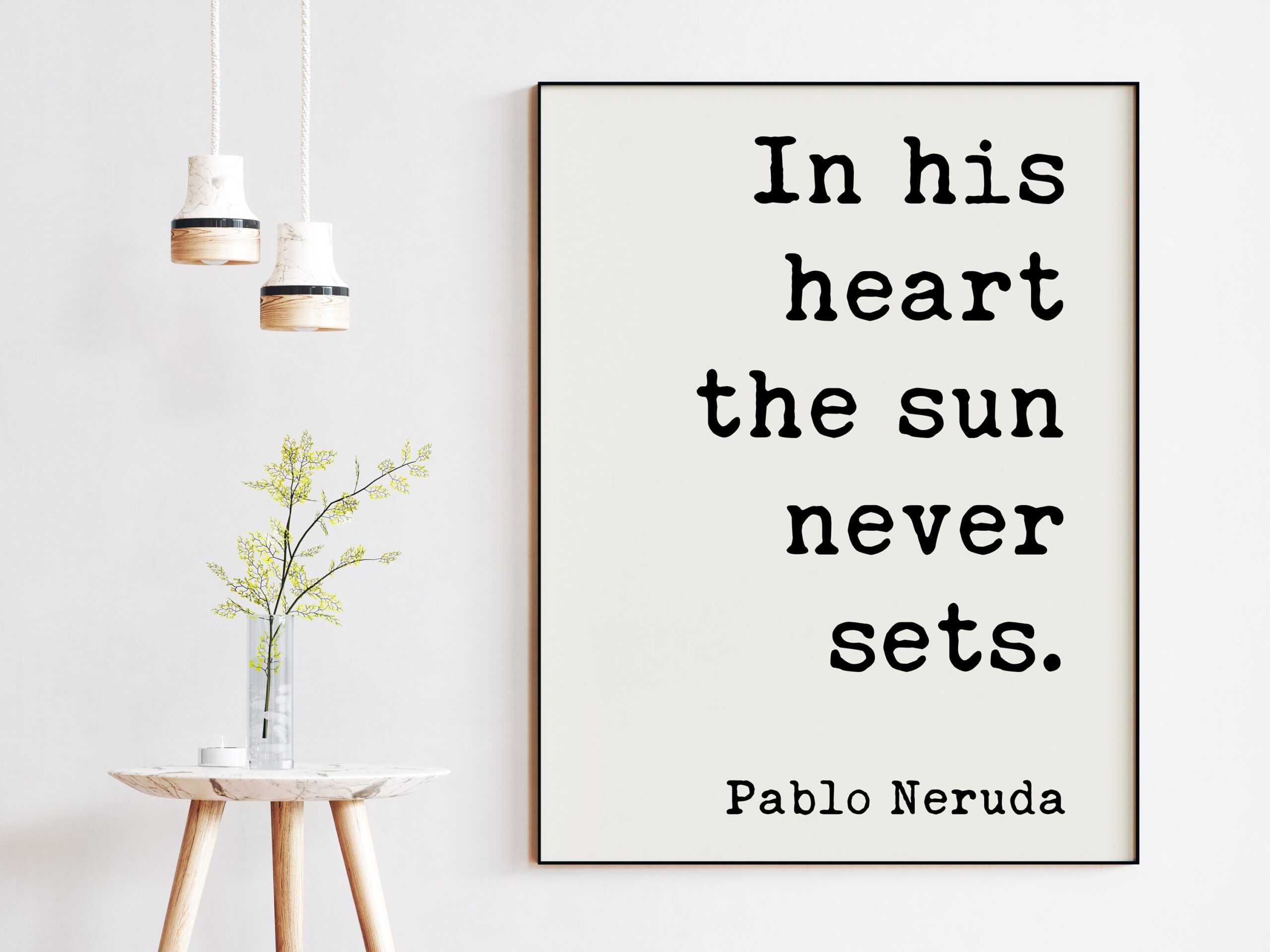 In his heart the sun never sets. – Pablo Neruda Quote Typography Print – Anniversary Gift, Wedding Gift, Wedding Vow, Wedding Poem, Love