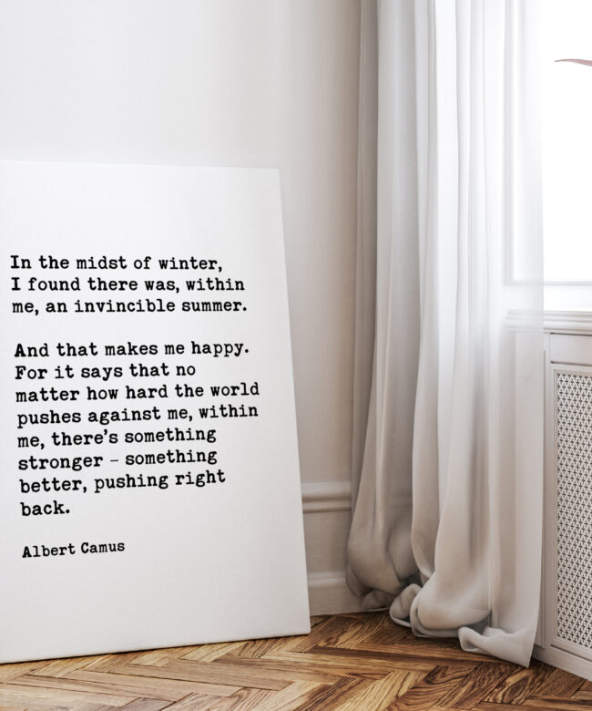 “In the midst of winter, I found there was, within me, an invincible summer. And that makes me happy. For it says that no matter how hard the world pushes against me, within me, there’s something stronger – something better, pushing right back.” – Albert Camus