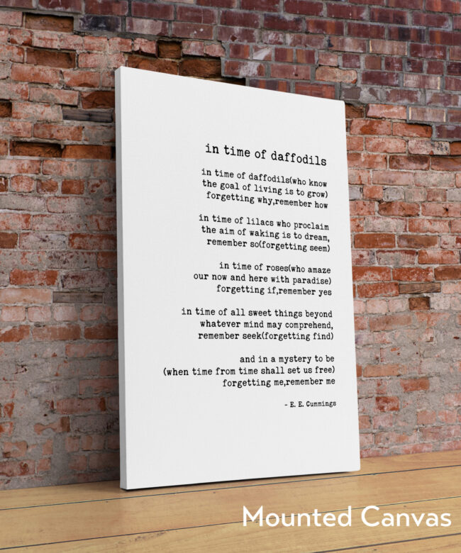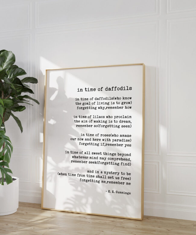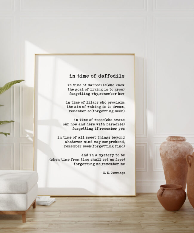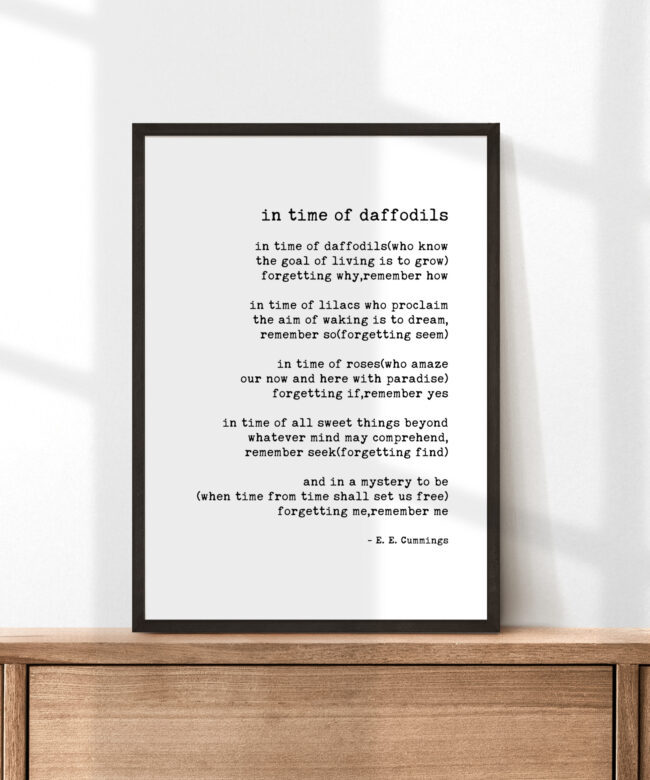 Step into the world of E.E. Cummings with our Typography Art Print featuring the enchanting poem “in time of daffodils.”