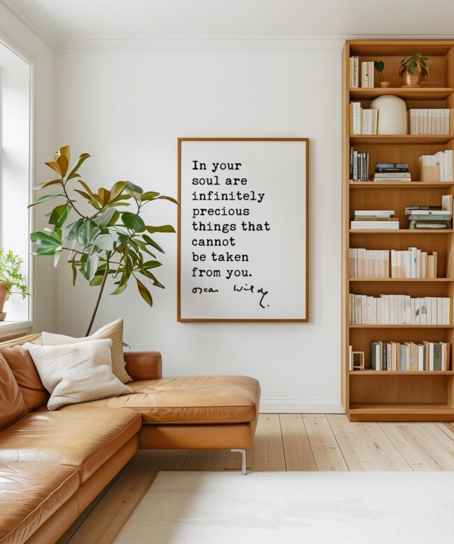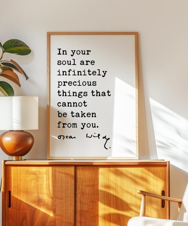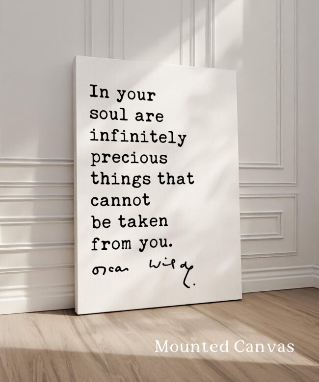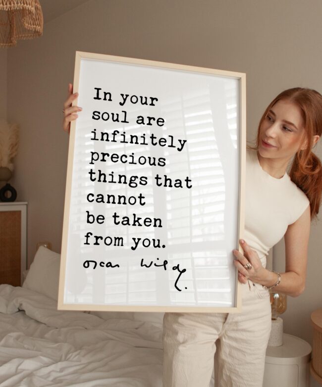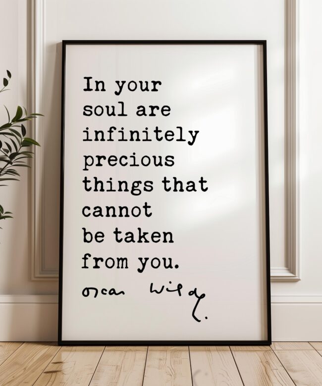 Celebrate inner strength and timeless wisdom with this personalized typography art print featuring a beautiful quote by Oscar Wilde. The message reminds us that the most valuable things in life—our character, creativity, and spirit—cannot be taken away.