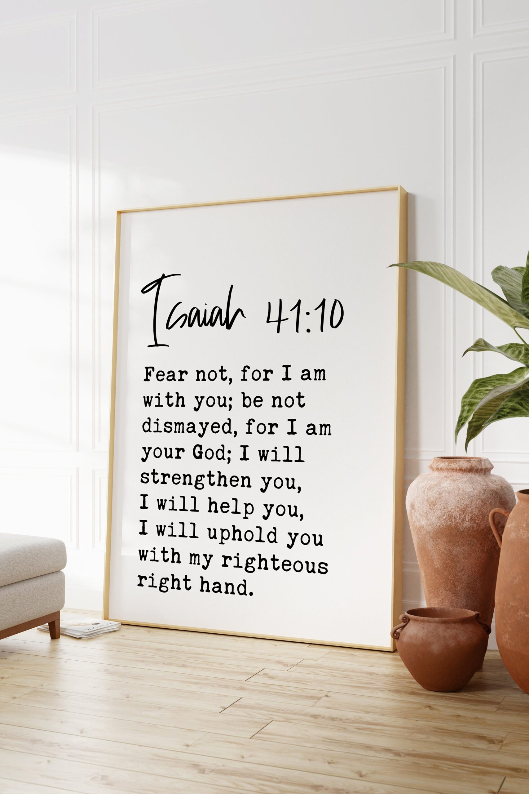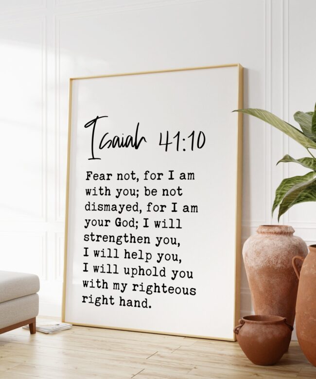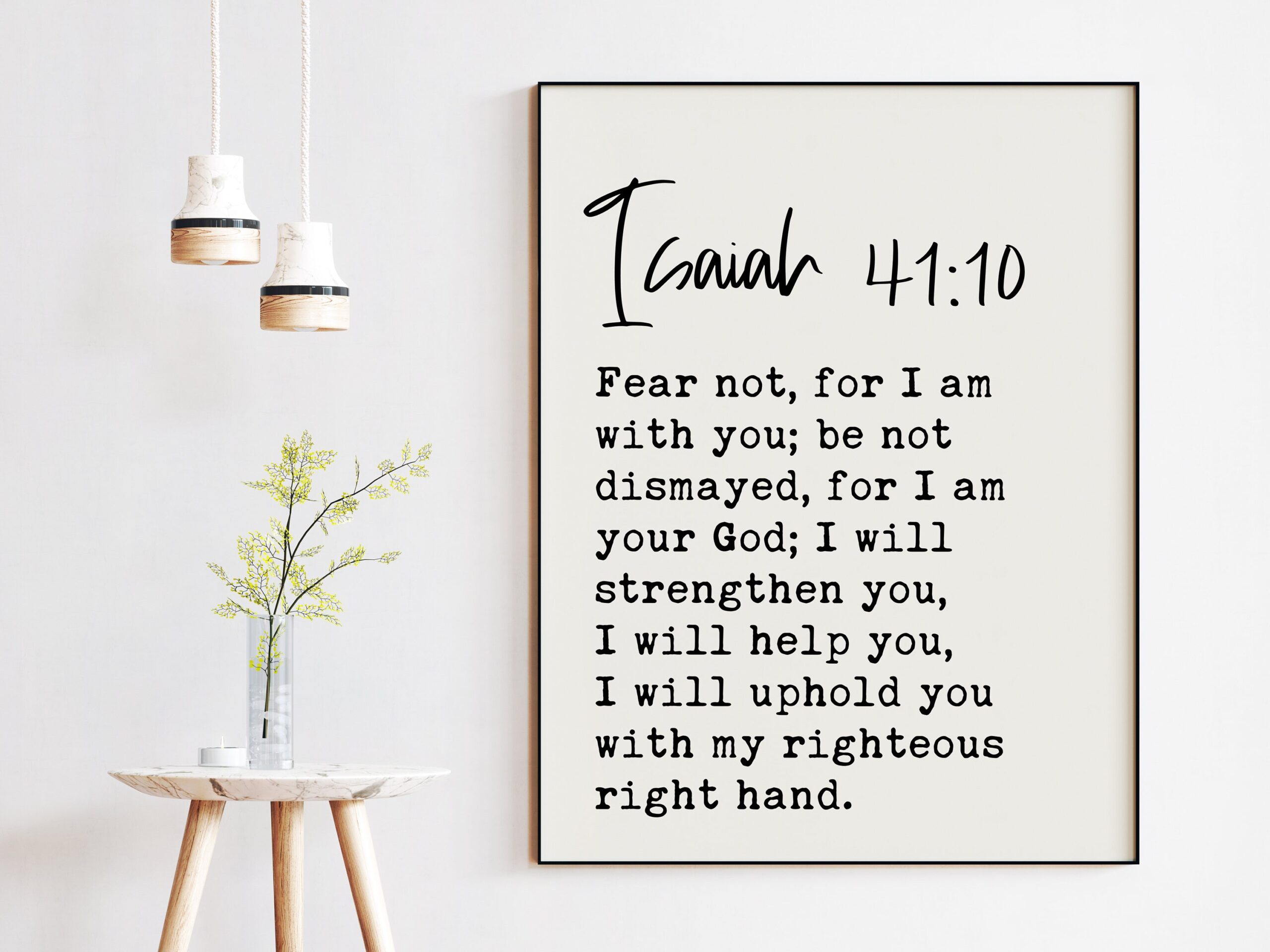 Introducing our Typography Art Print featuring the reassuring words of Isaiah 41:10: “Fear not, for I am with you; be not dismayed, for I am your God.”