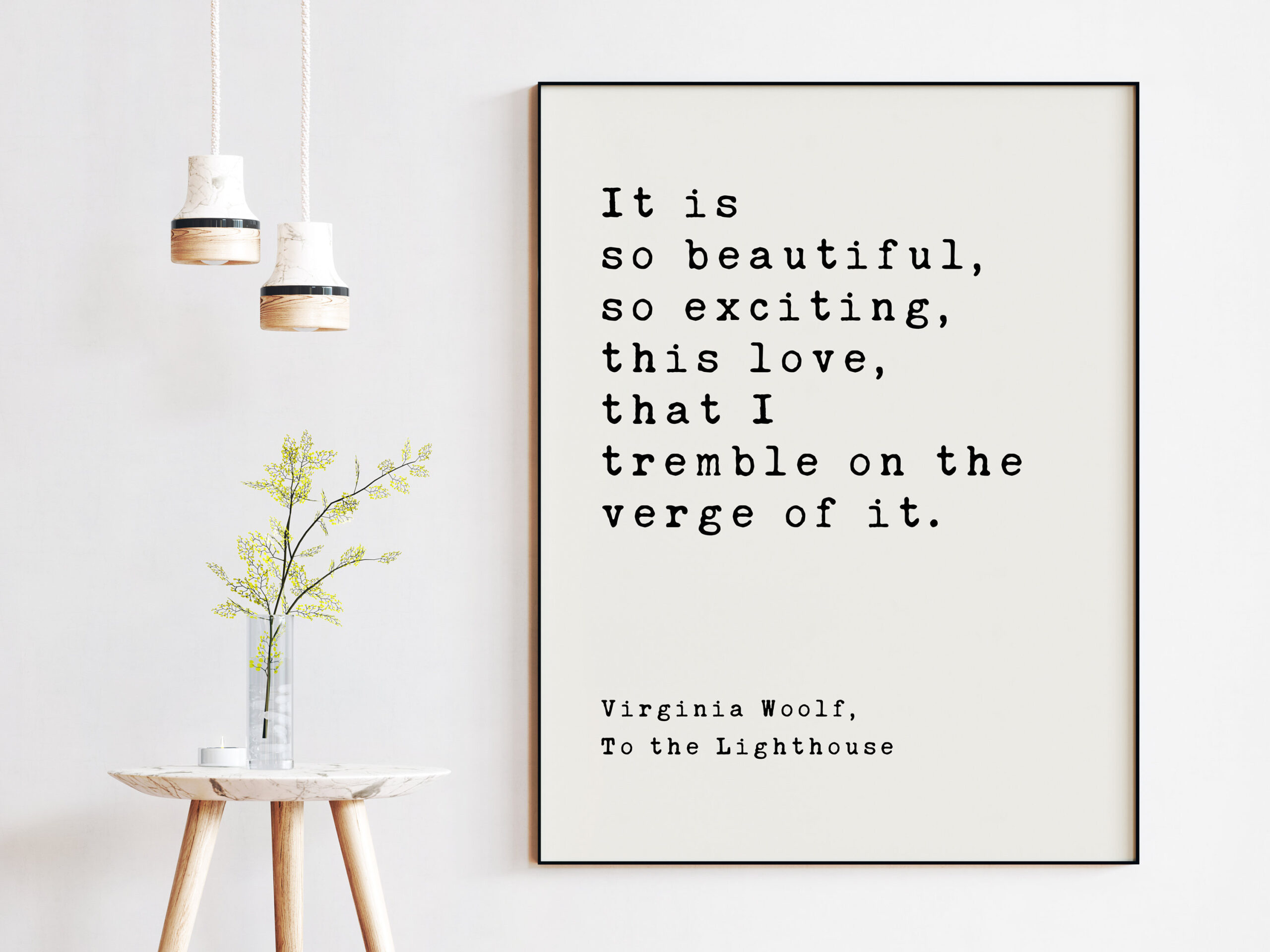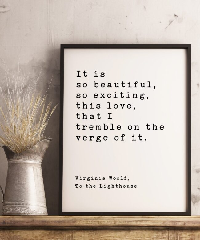 It is so beautiful, so exciting, this love, that I tremble on the verge of it. – Virginia Woolf, To the Lighthouse, Art Print Woolf Quotes