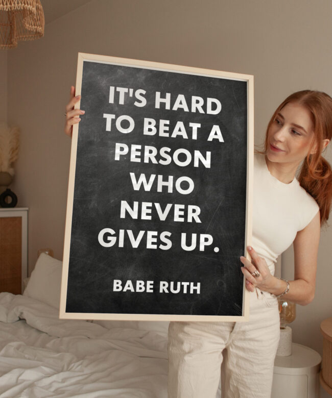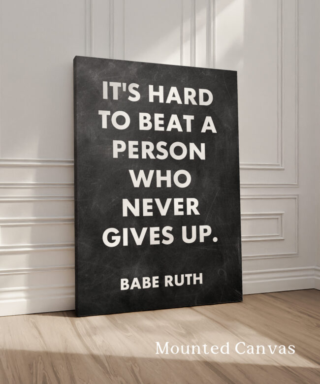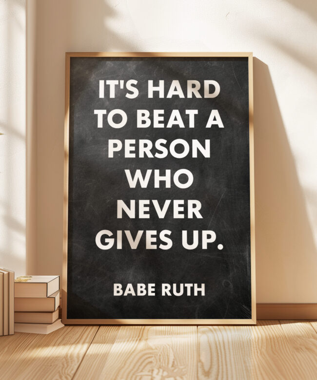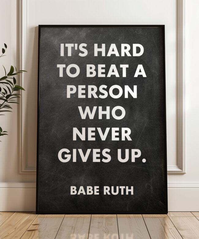 It’s hard to beat a person who never gives up. Babe Ruth Quote Typography Art Print