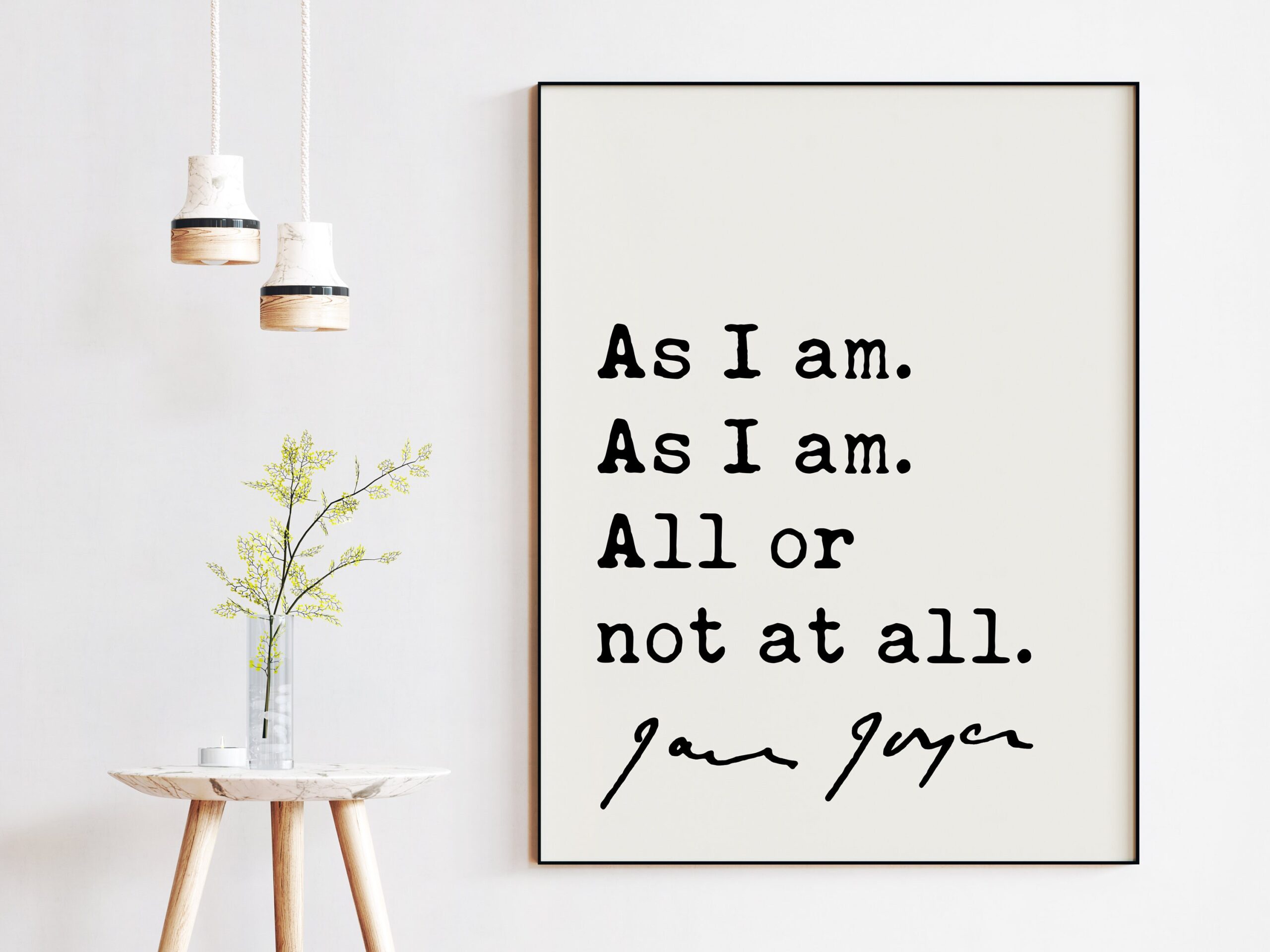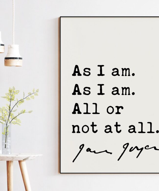 James Joyce Quote As I am. As I am. All or not at all. Art Print – Ulysses – Inspirational Quotes Art Print