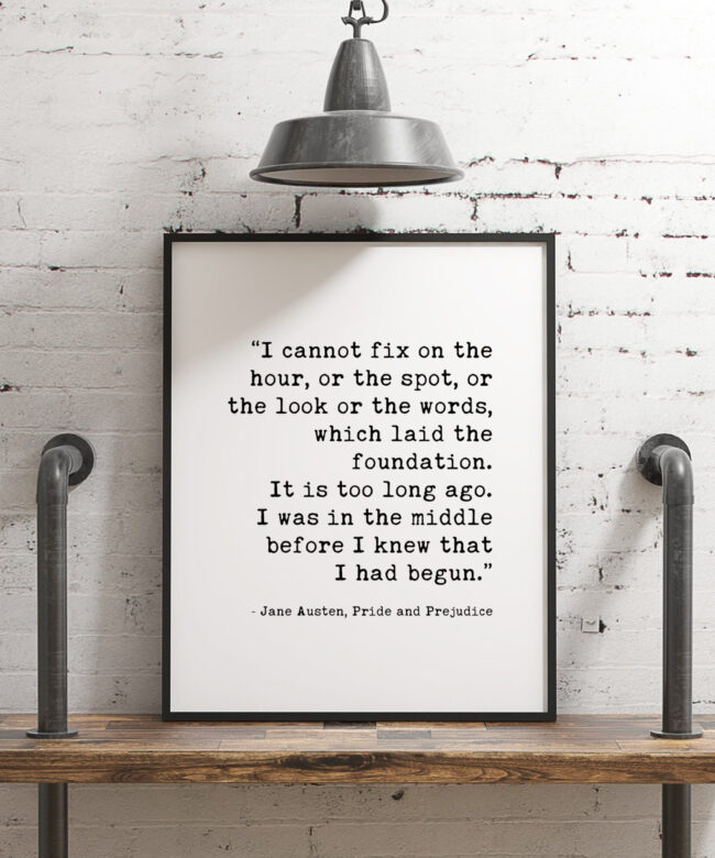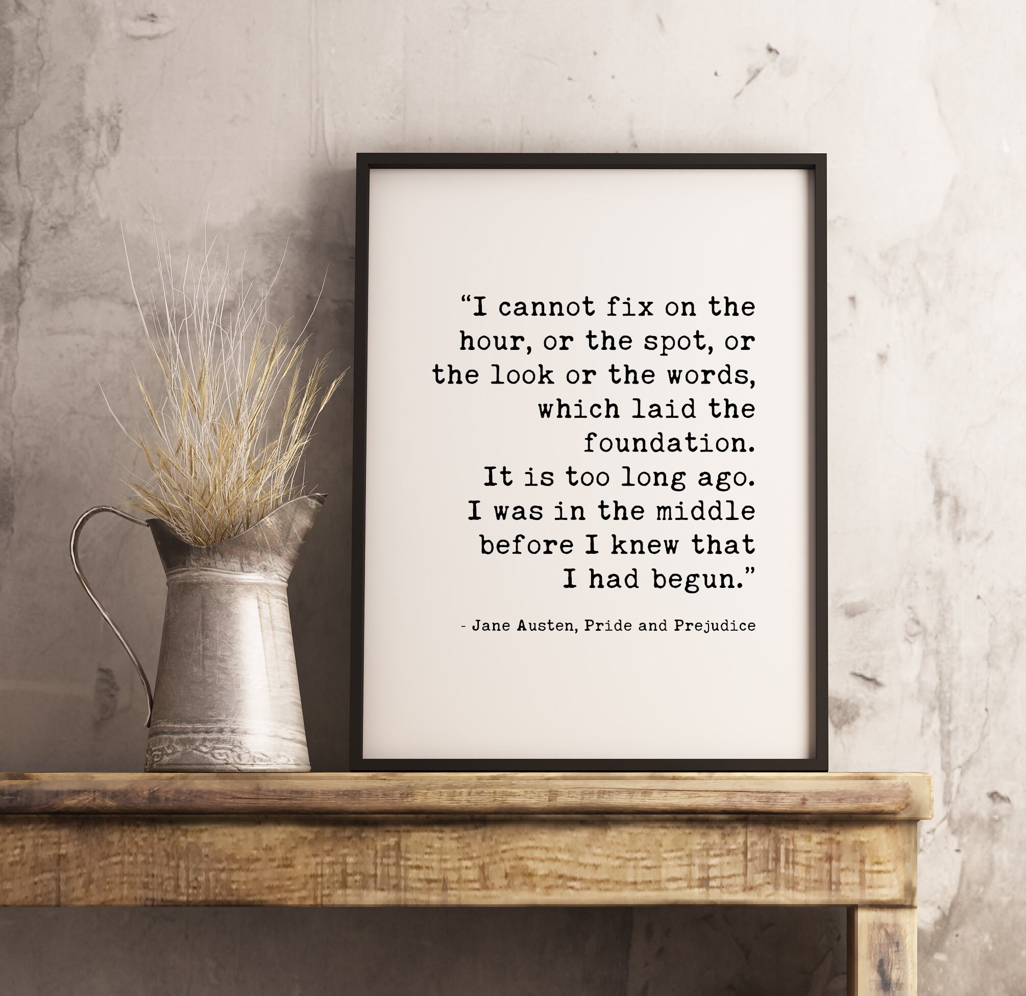 Jane Austen – Pride and Prejudice – I Cannot Fix on the Hour which Laid the Foundation. Typography Print – Home Decor – Minimalist Decor