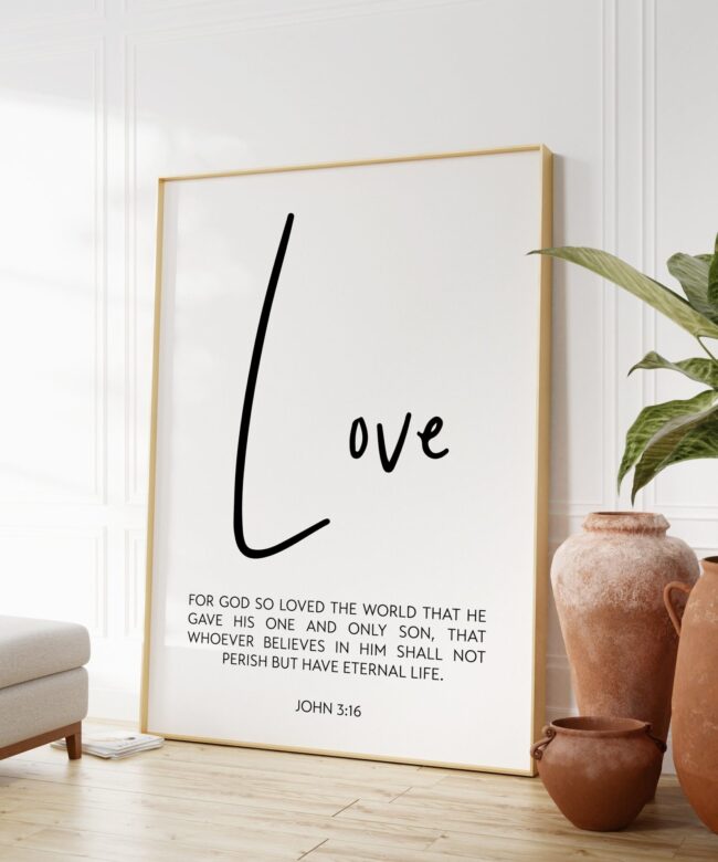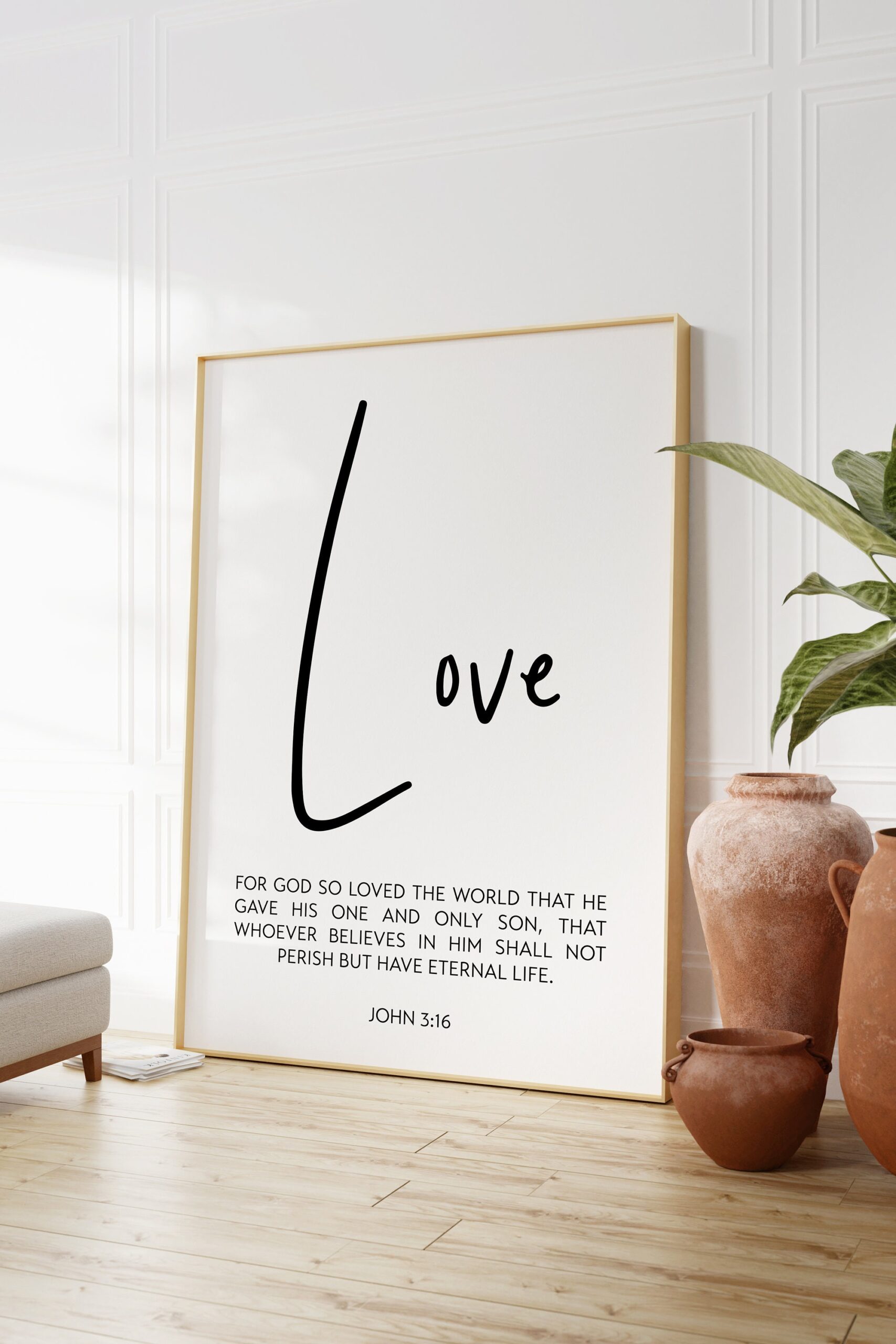 John 3:16 For God So Loved The World Art Print – Religious Scripture – Christian – Bible Verse – Modern