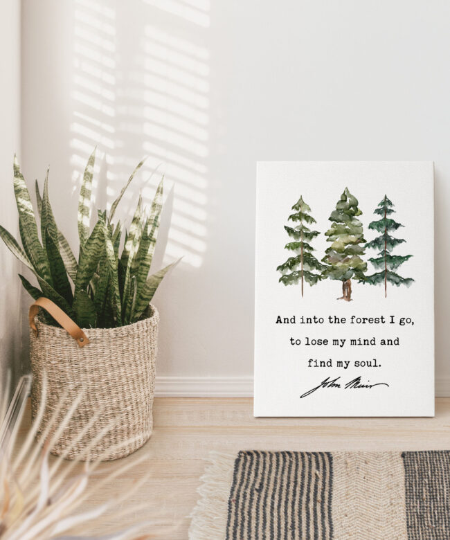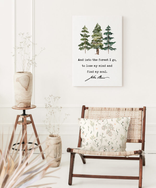Immerse yourself in the restorative power of nature with this captivating low-profile mounted canvas featuring the iconic John Muir quote: