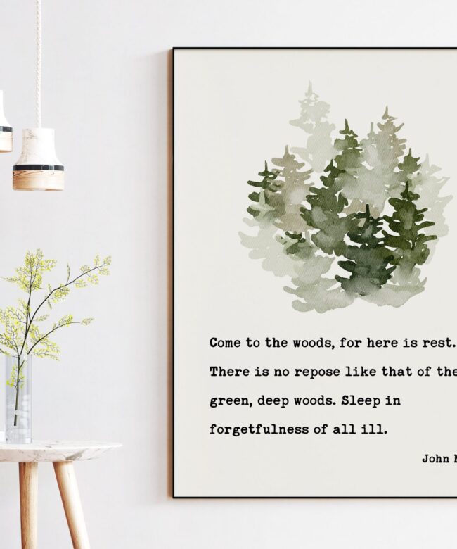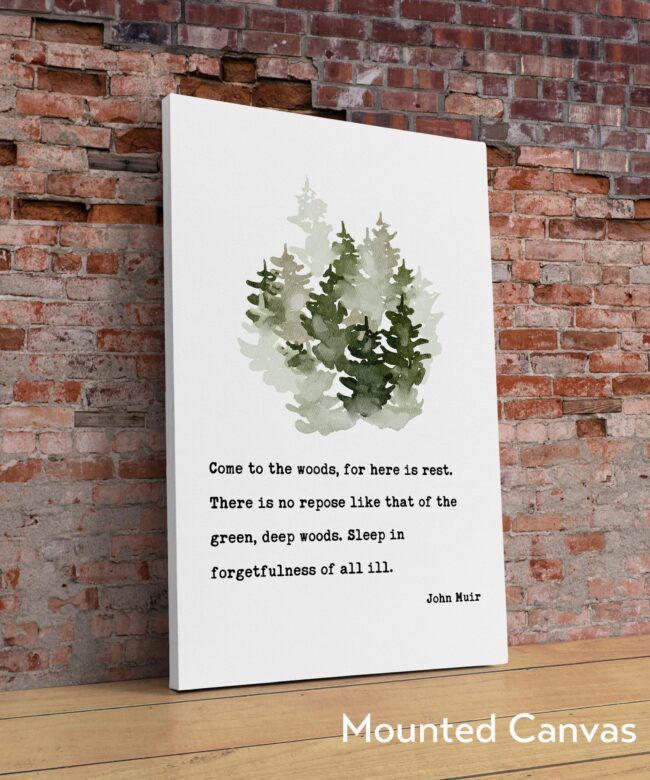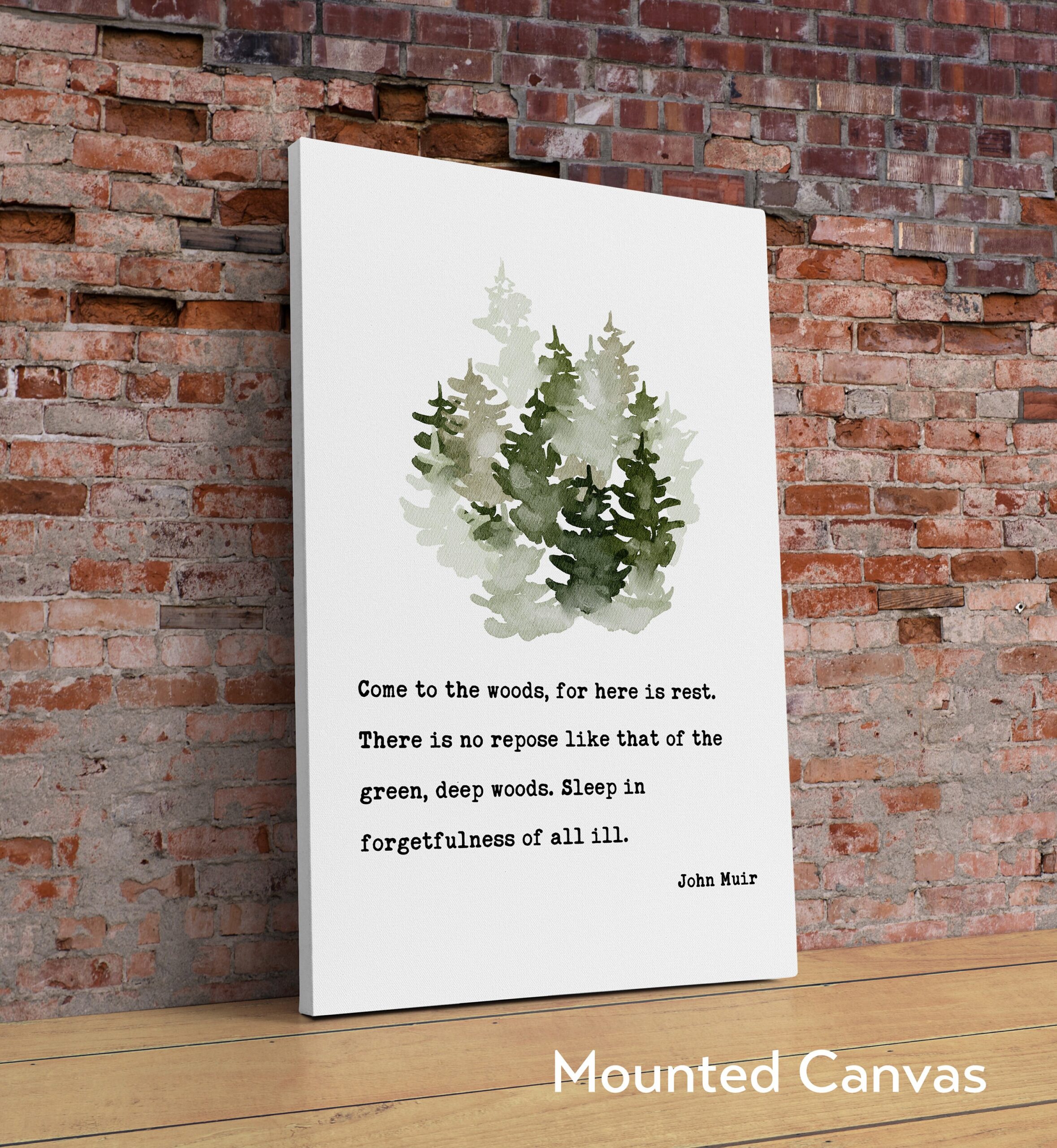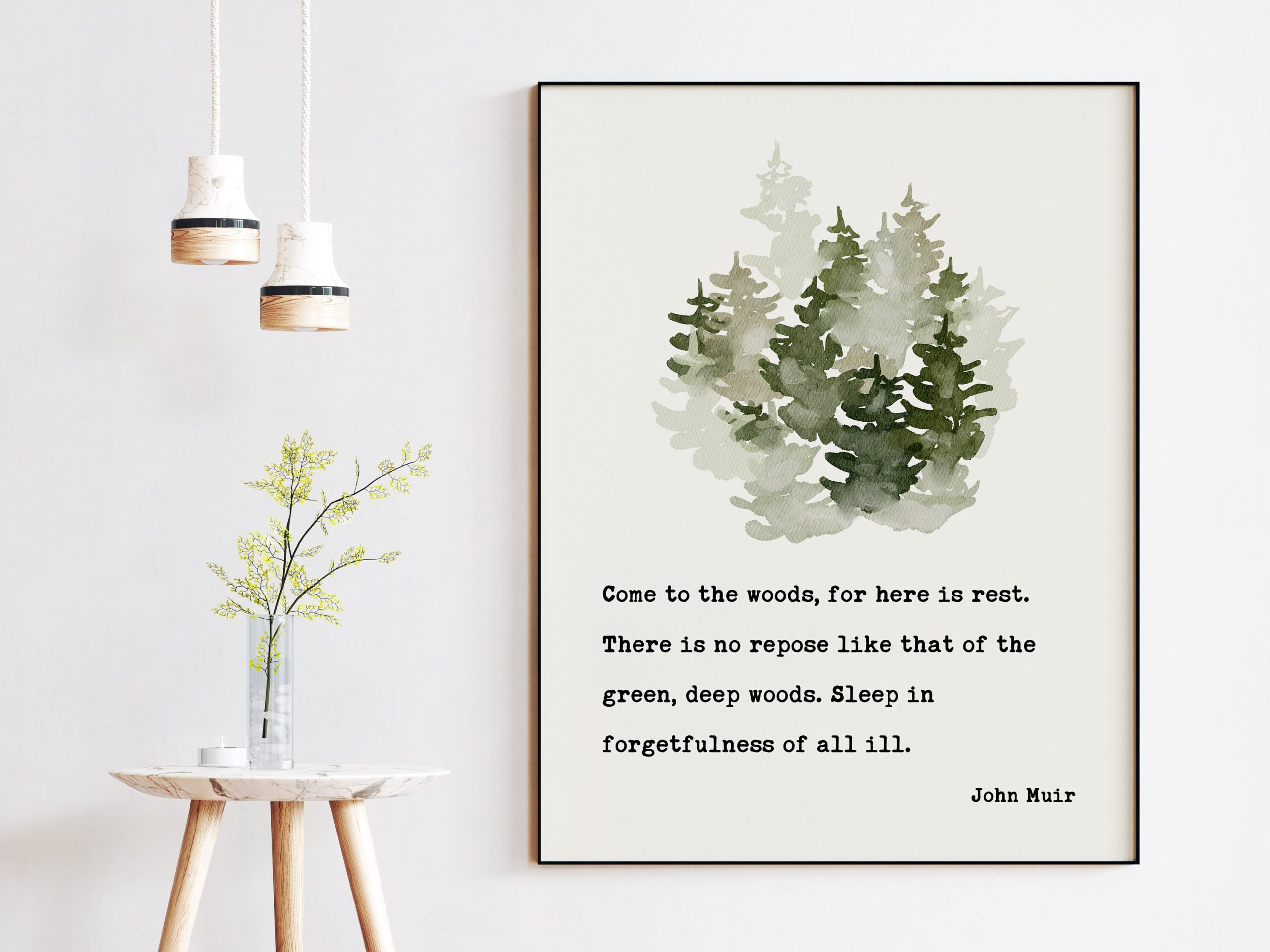 John Muir Quote – Come to the woods, for here is rest. Art Print – Nature Lover – Environment – Outdoors – Hiking