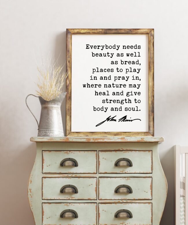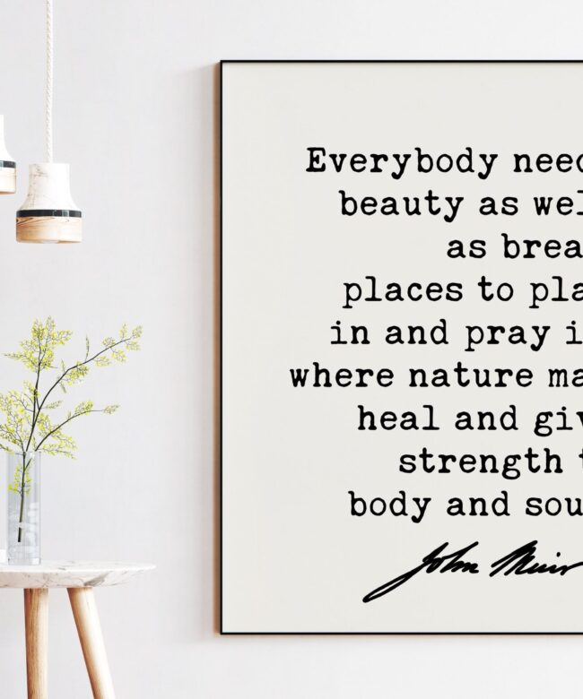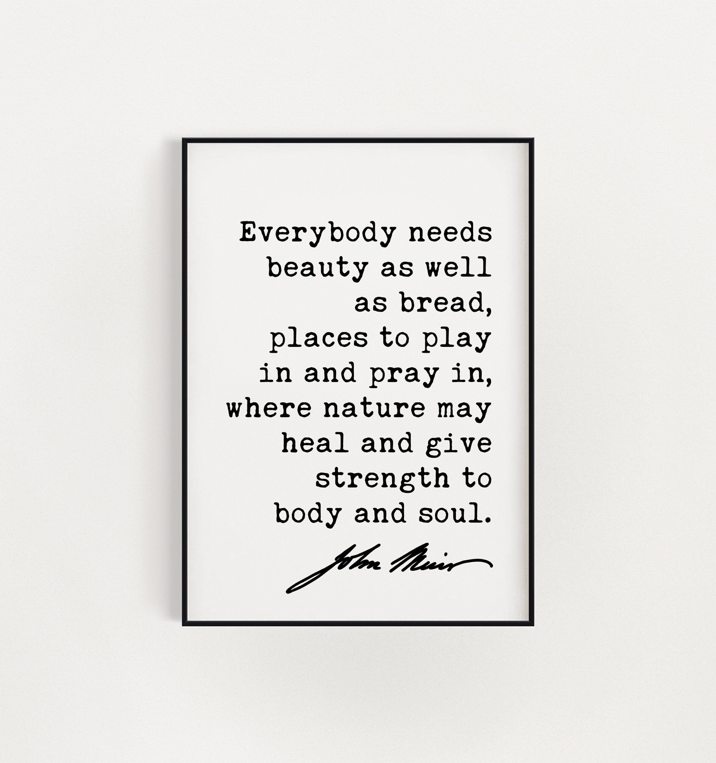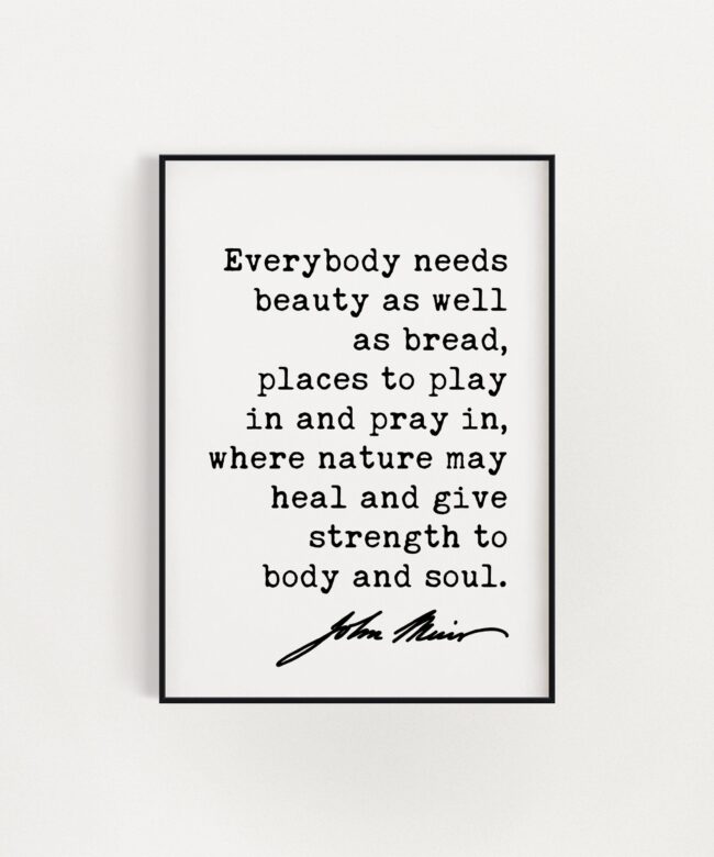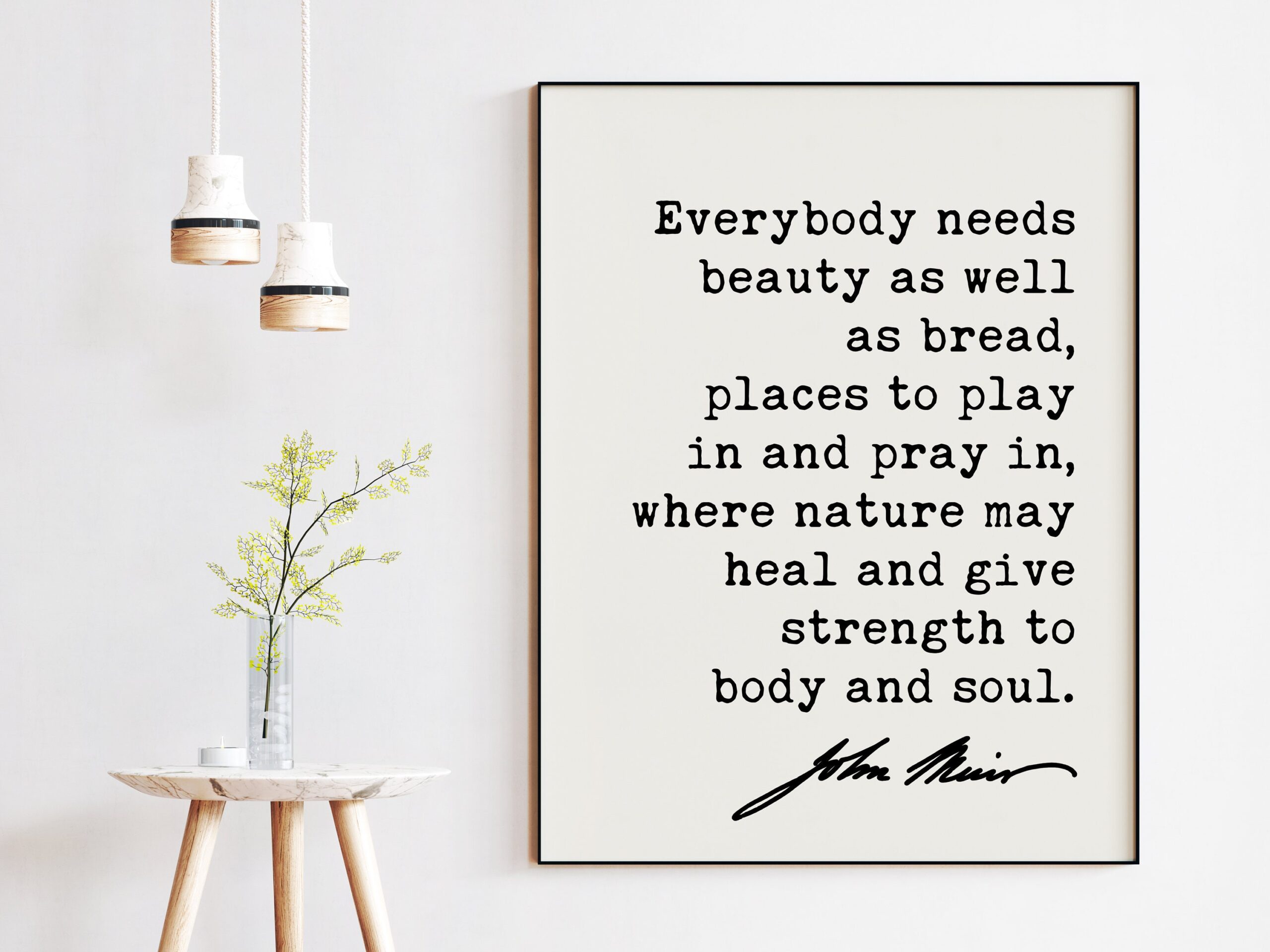 John Muir Quote – Everybody needs beauty as well as bread, places to play in and pray in, where nature … Art Print – Conservationist