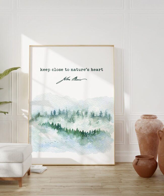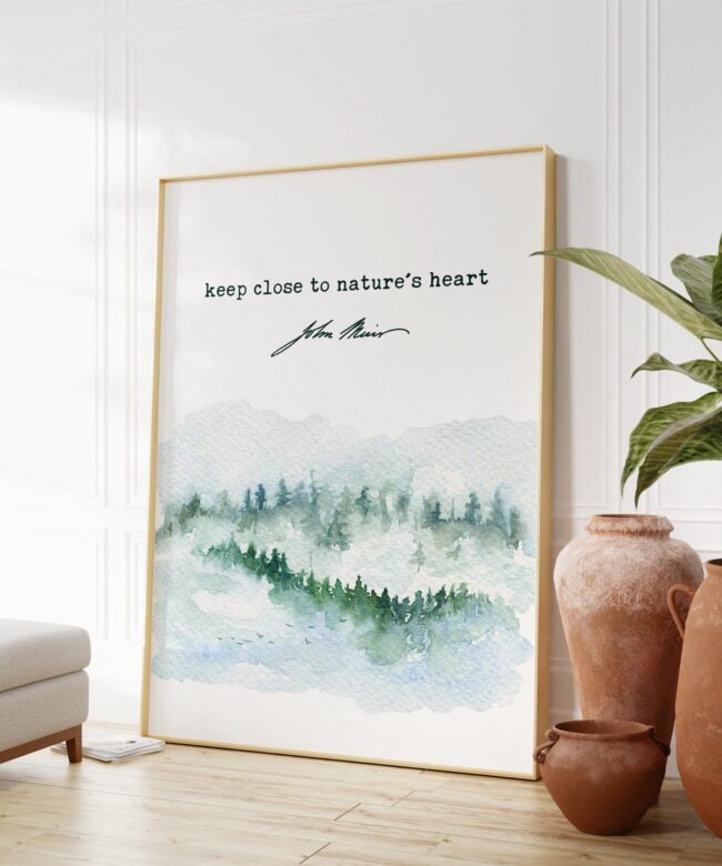 John Muir Quote – Keep close to Nature’s heart Art Print – Nature Lover – Environmentalist – Conservation – Hiker Quote