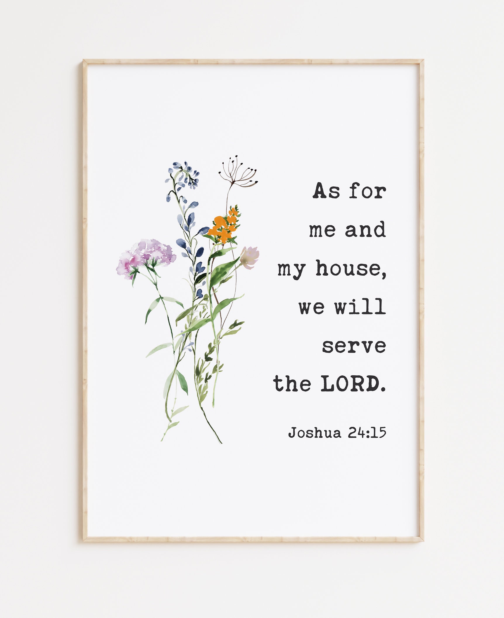 Joshua 24:15 As For Me And My House We Will Serve The Lord. Typography Art Print with Wildflowers – Faith – Gift – Christian