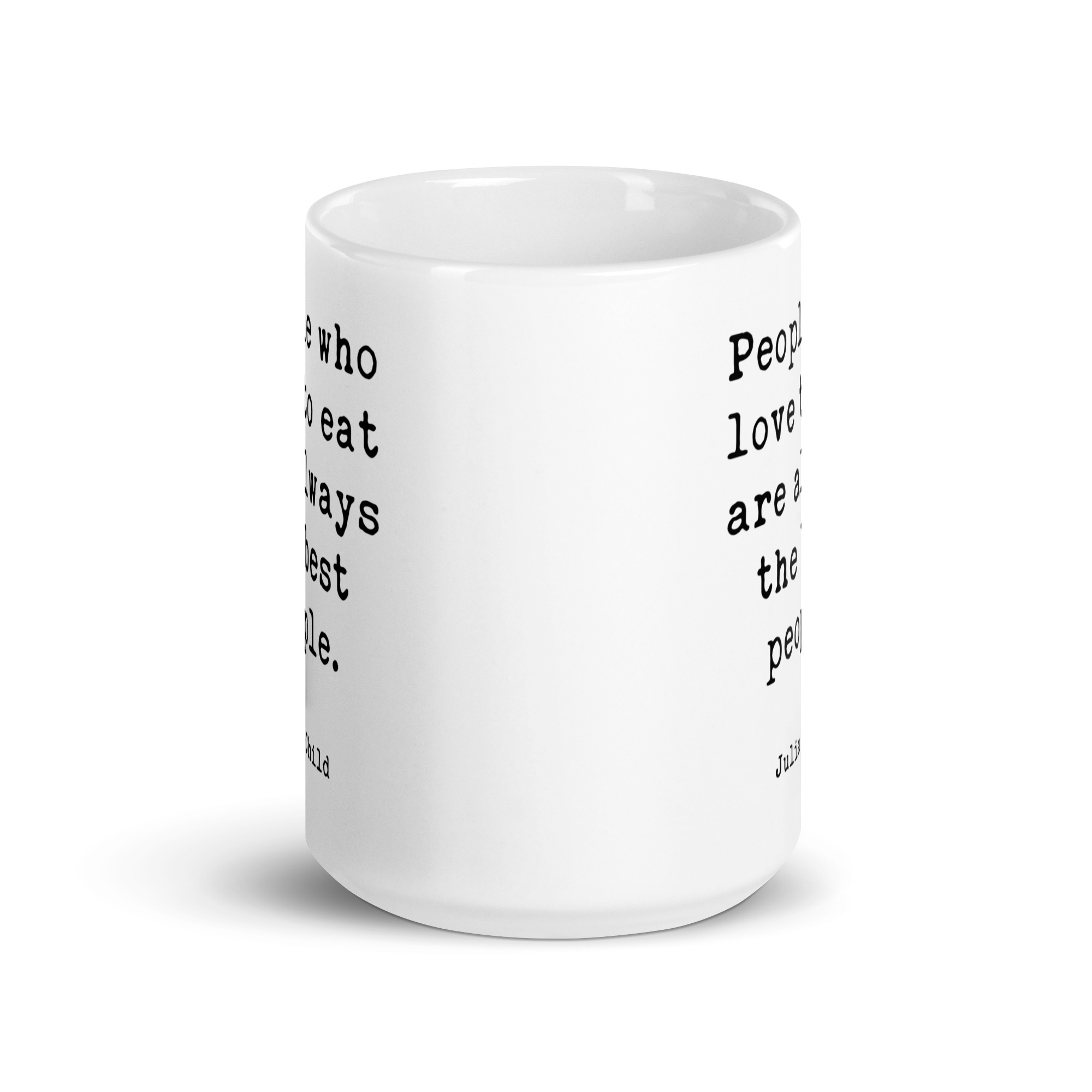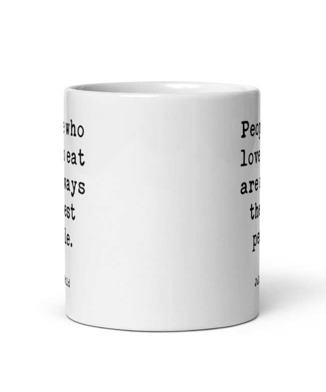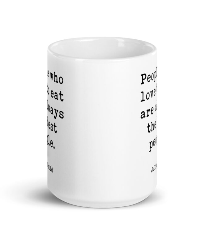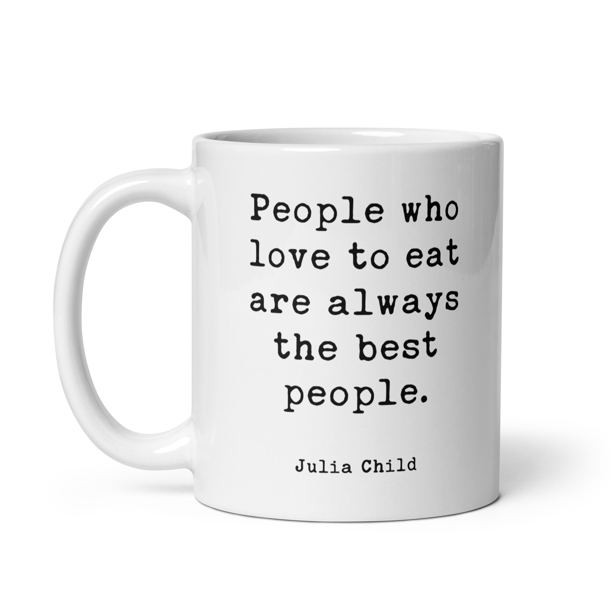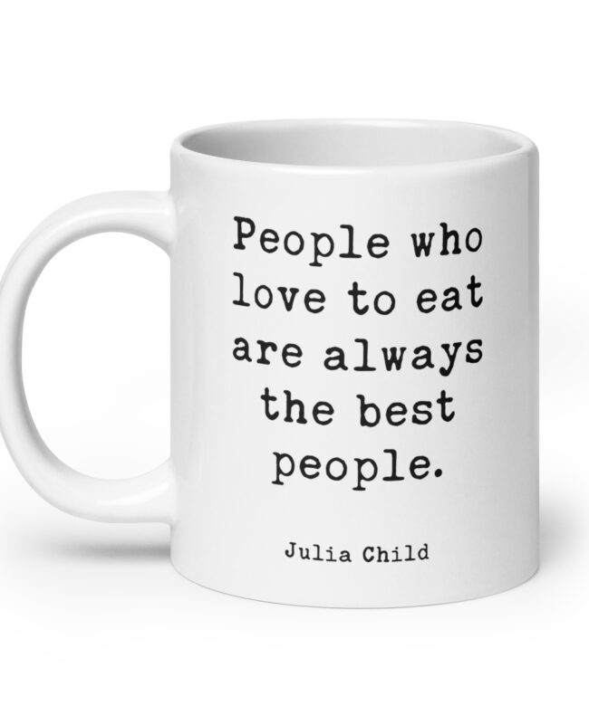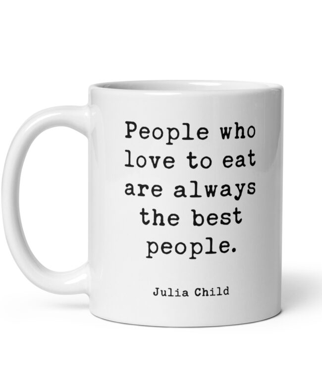 Introducing our Julia Child Quote “People who love to eat are always the best people.” Coffee Tea Mug – the ultimate companion for foodies who appreciate the art of sipping and savoring!