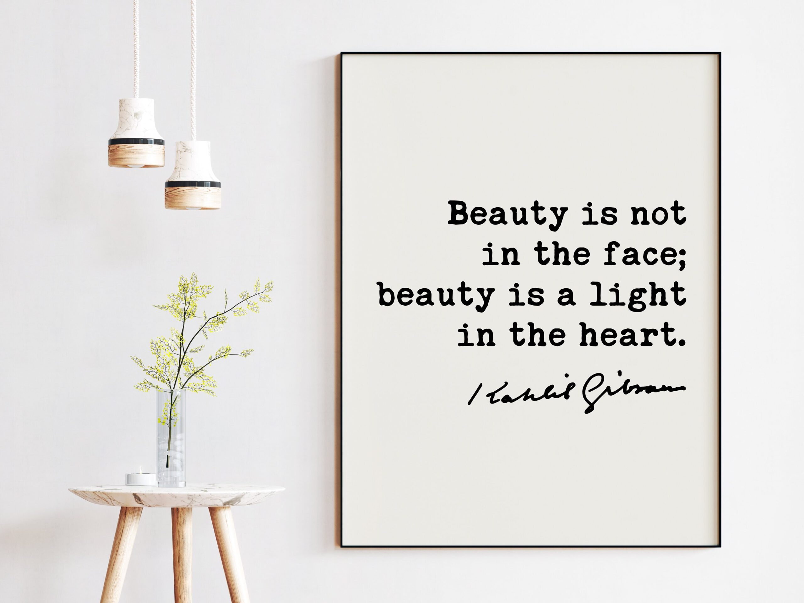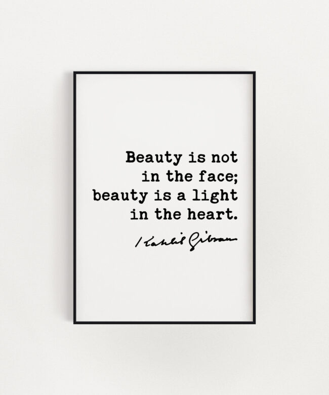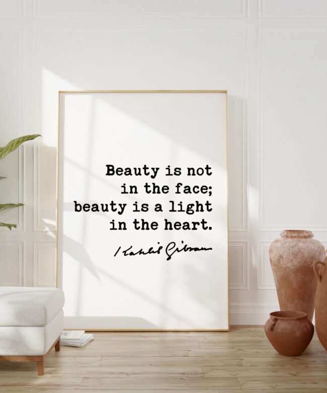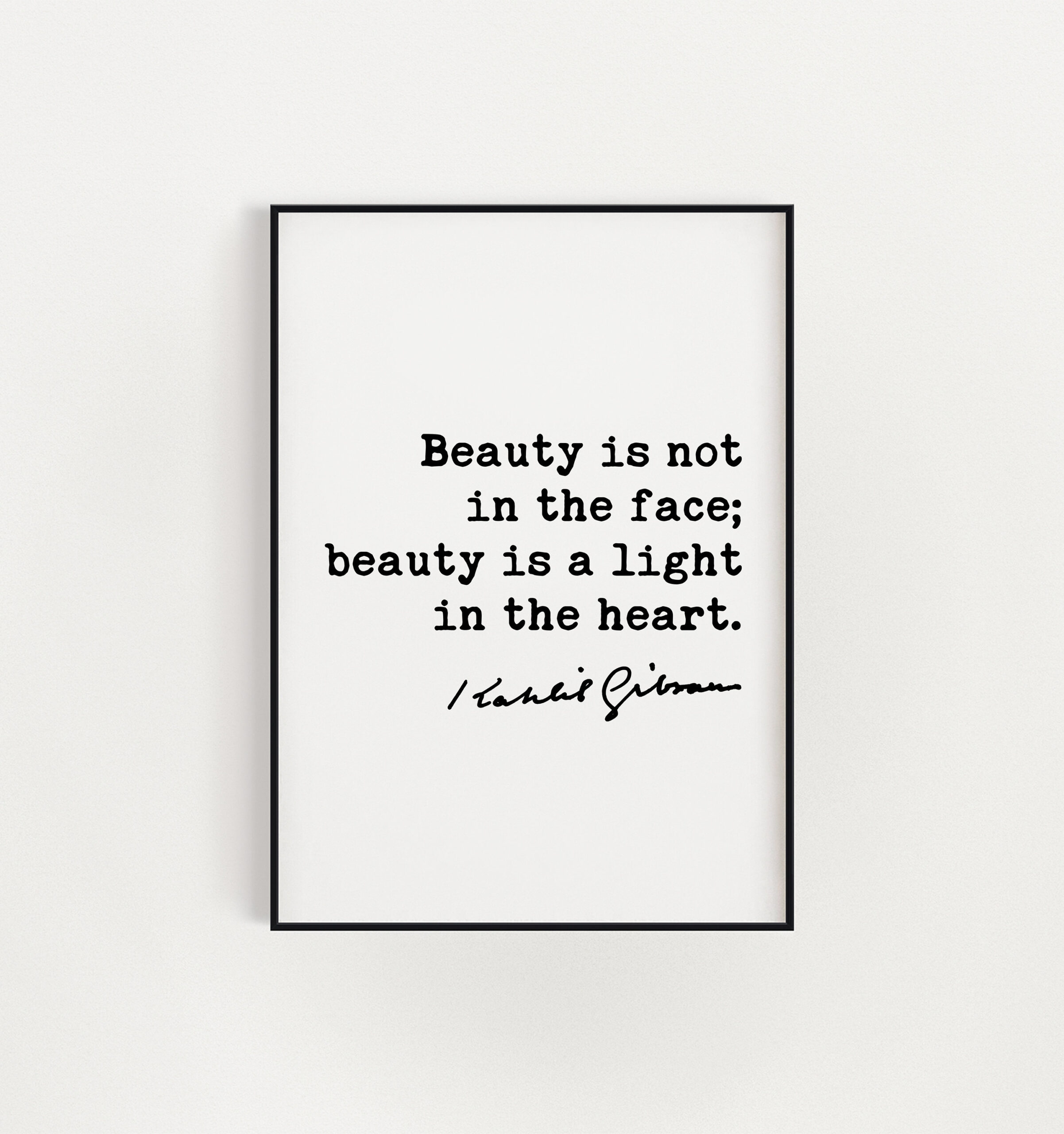 Kahlil Gibran Quote – Beauty is not in the face; beauty is a light in the heart. Art Print – Beauty – Inspiration – Kindness