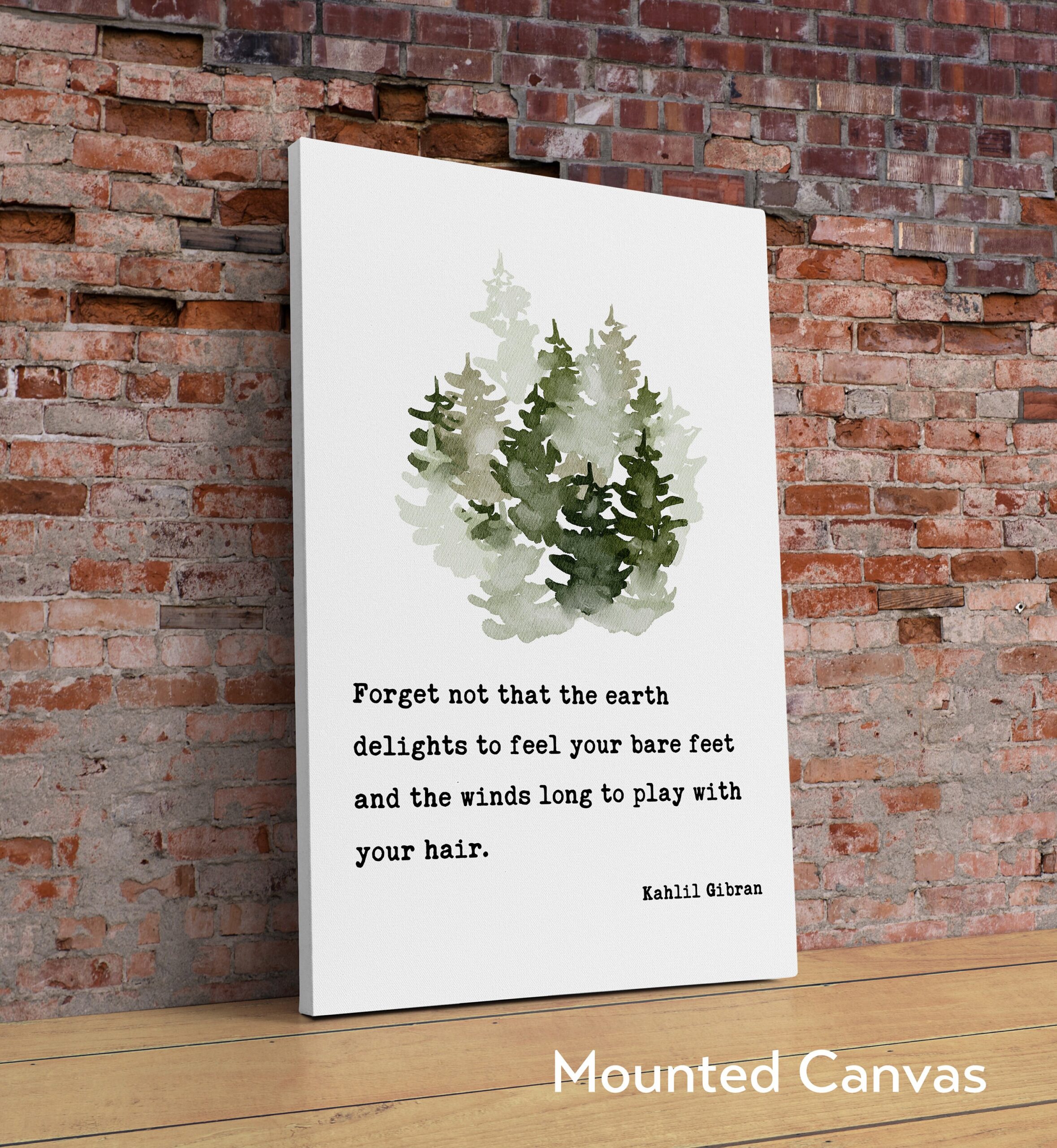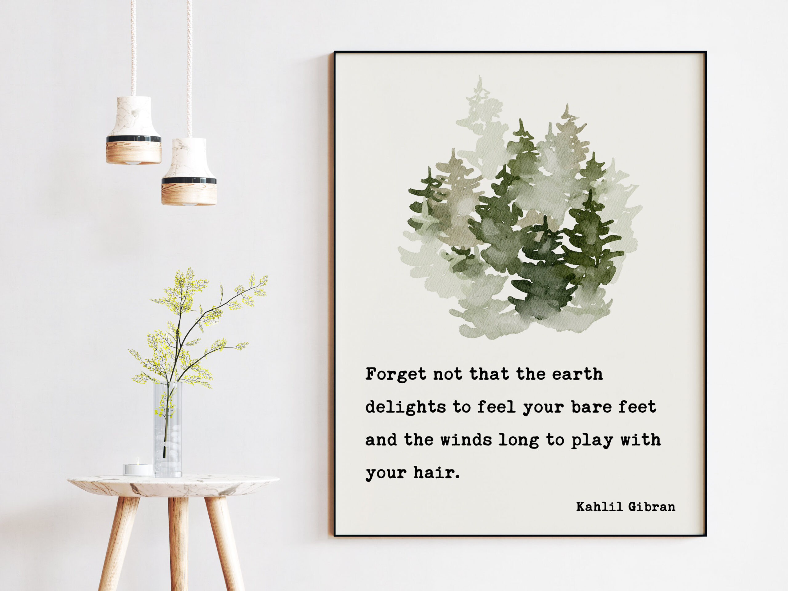 Kahlil Gibran Quote – Forget not that the earth delights to feel your bare feet … winds long to play with your hair. Art Print – Nature