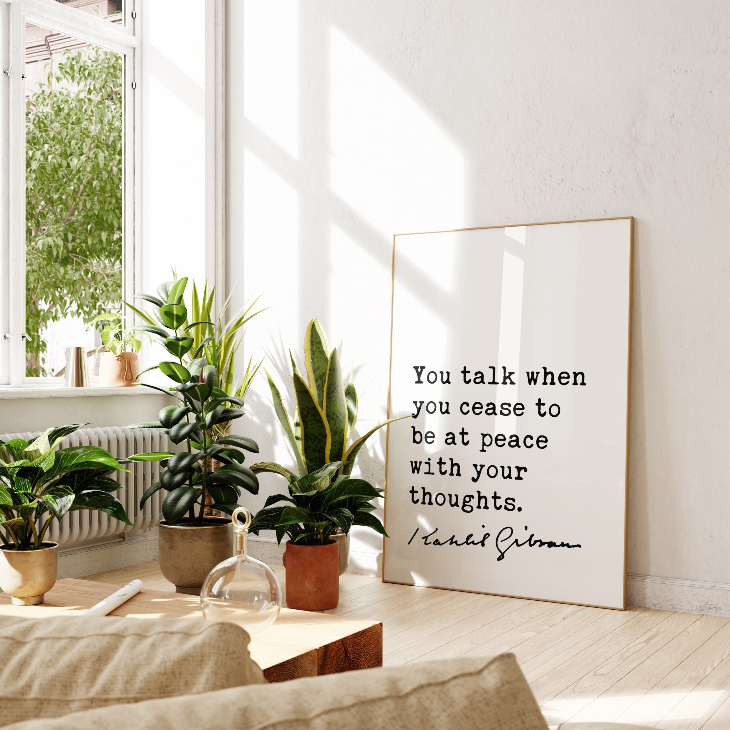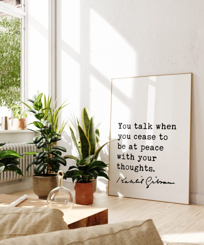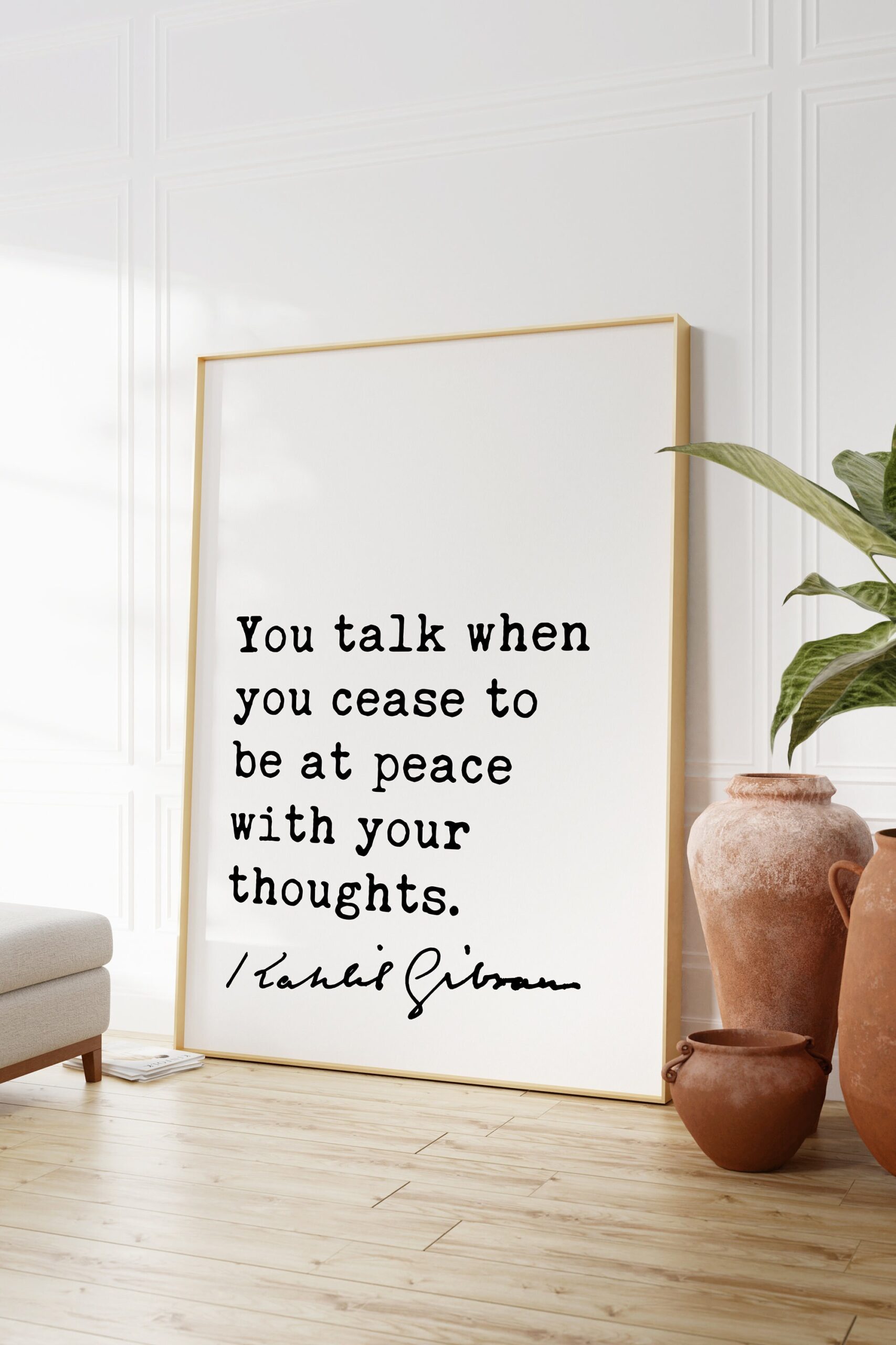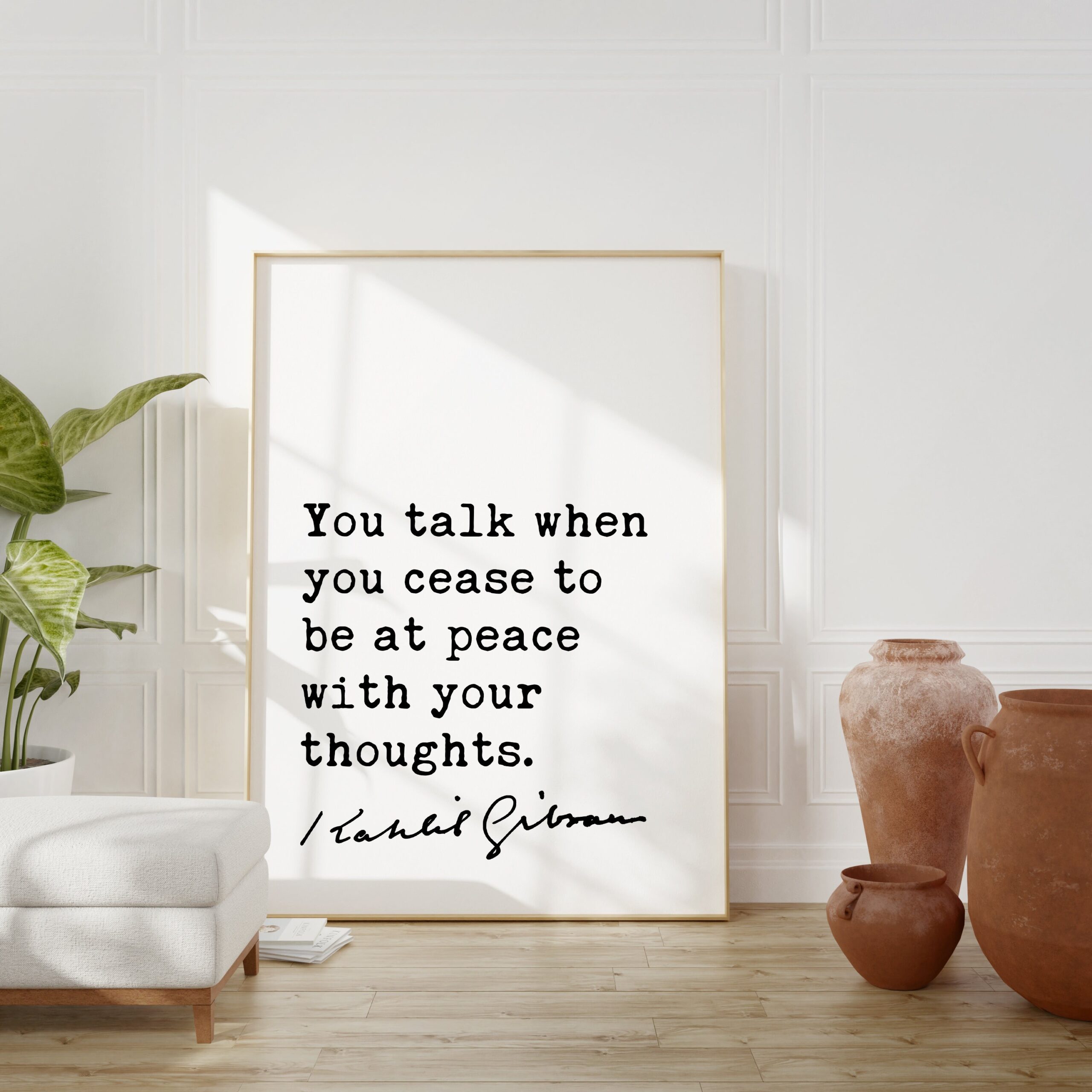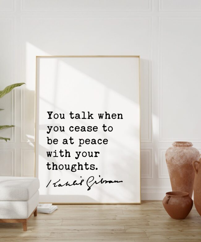 Kahlil Gibran Quote – You talk when you cease to be at peace with your thoughts. Typography Art Print – The Prophet