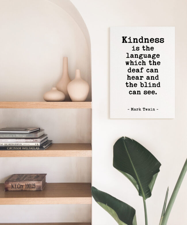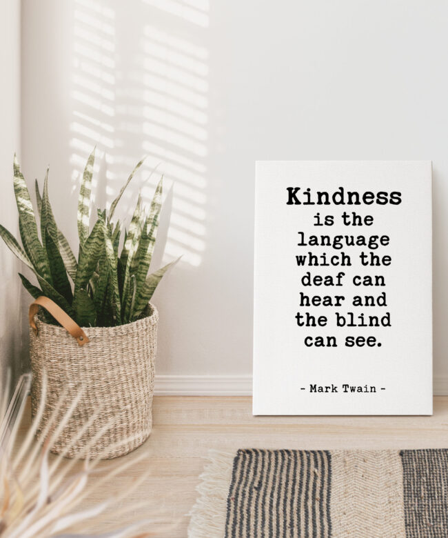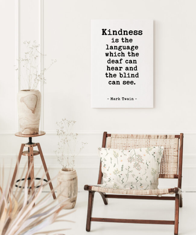 Spread warmth and understanding with this captivating canvas typography art print featuring the timeless quote by Mark Twain: