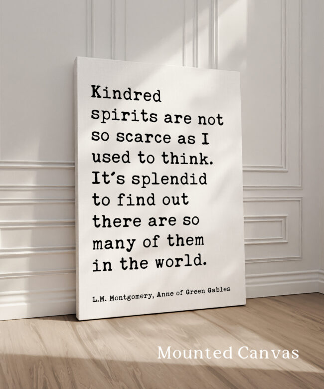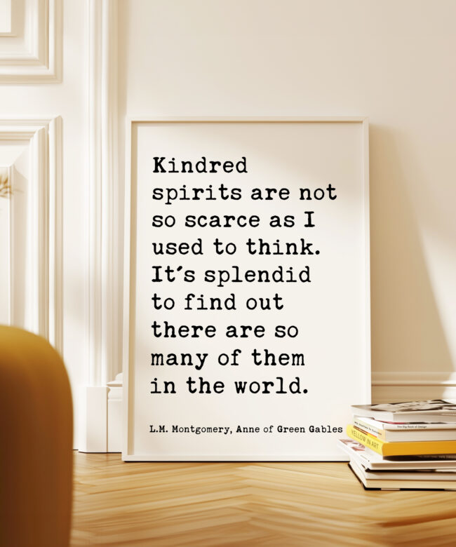 This beautiful typography art print features a heartfelt quote from Anne of Green Gables: “Kindred spirits are not so scarce as I used to think. It’s splendid to find out there are so many of them in the world.” Anne’s realization about the abundance of kindred spirits is a reminder that connection is more common than we often believe. Perfect for any space where warmth, friendship, and optimism are cherished.