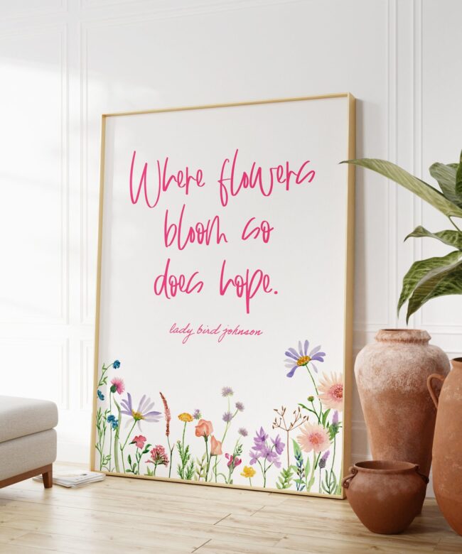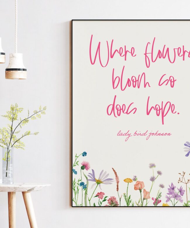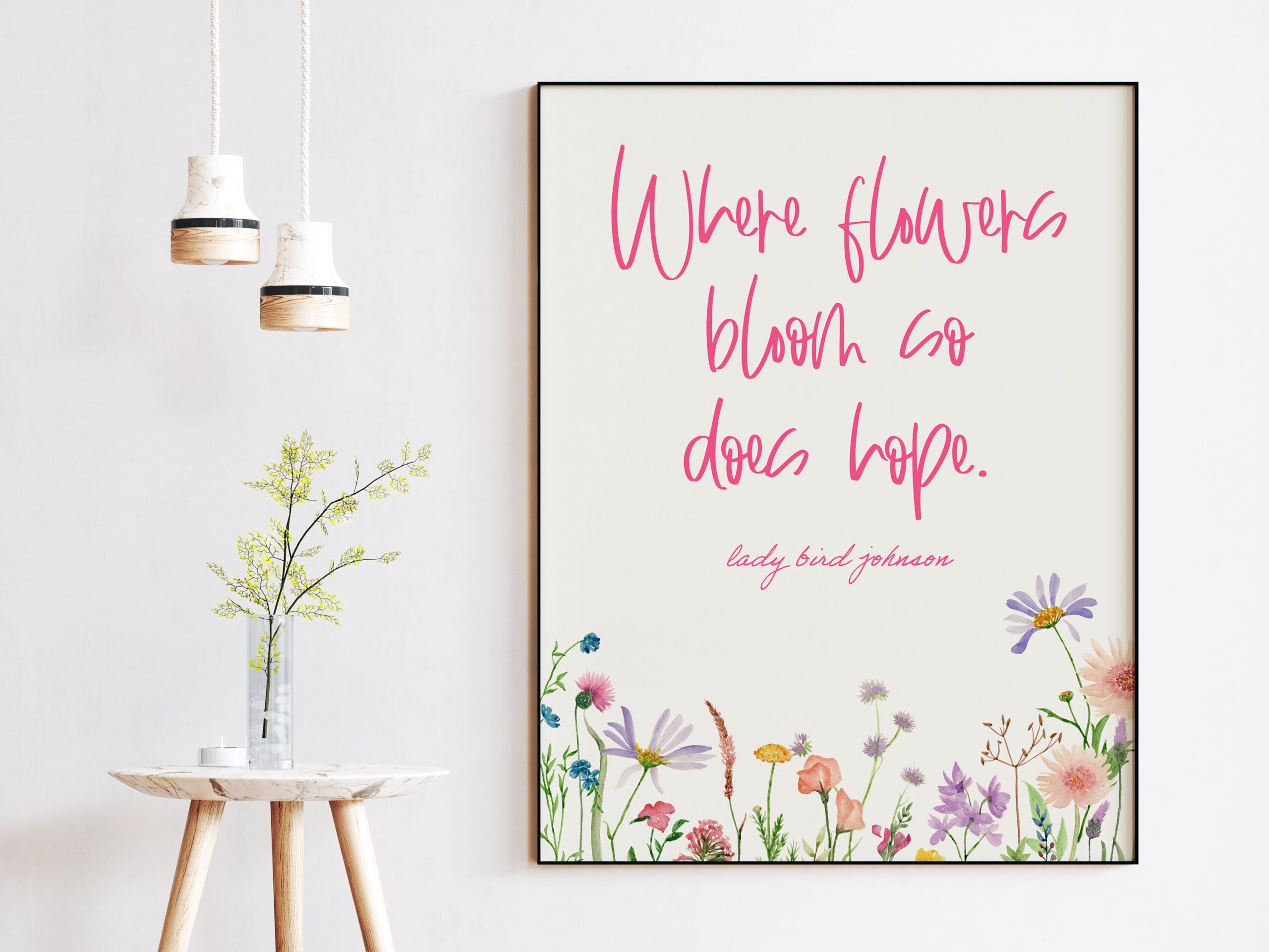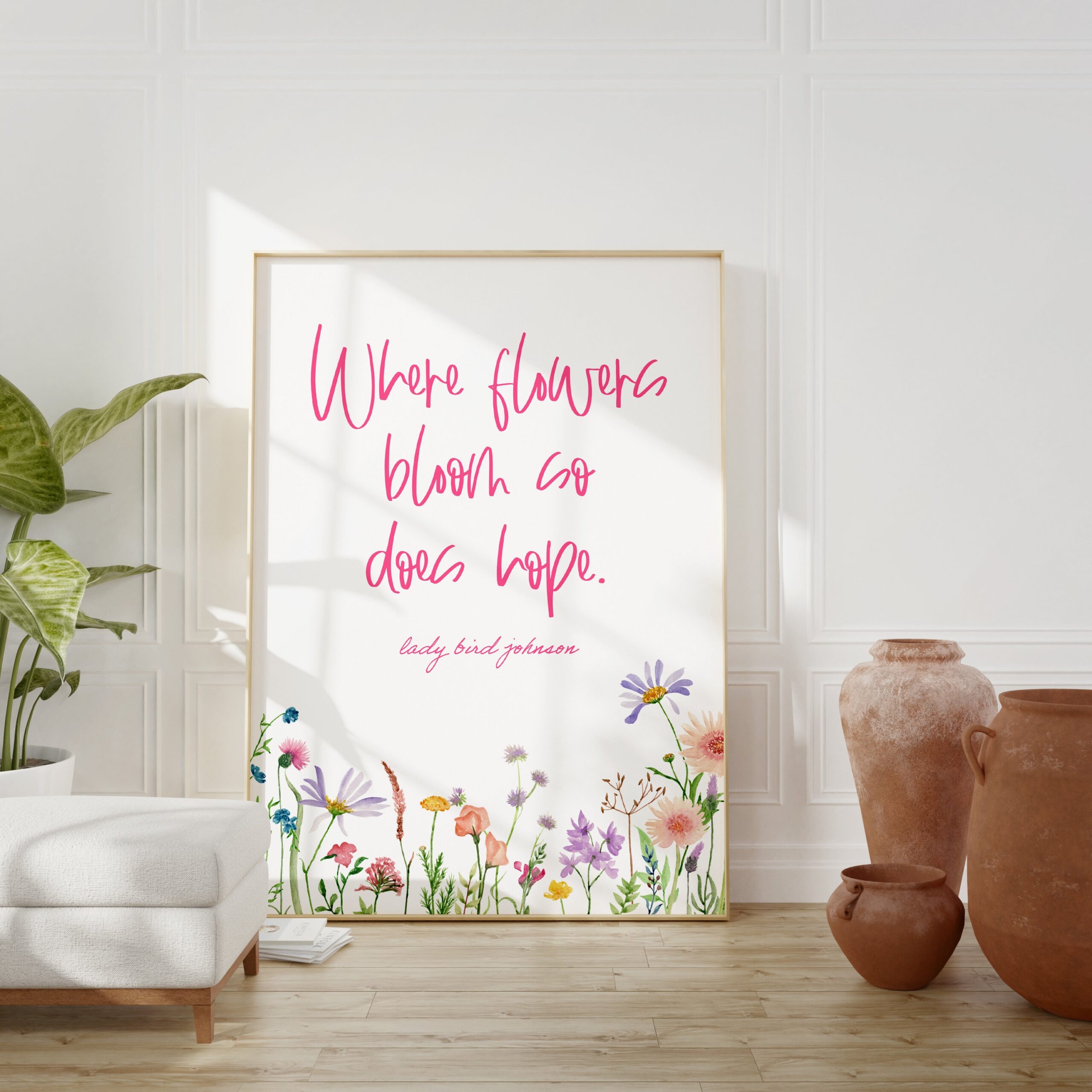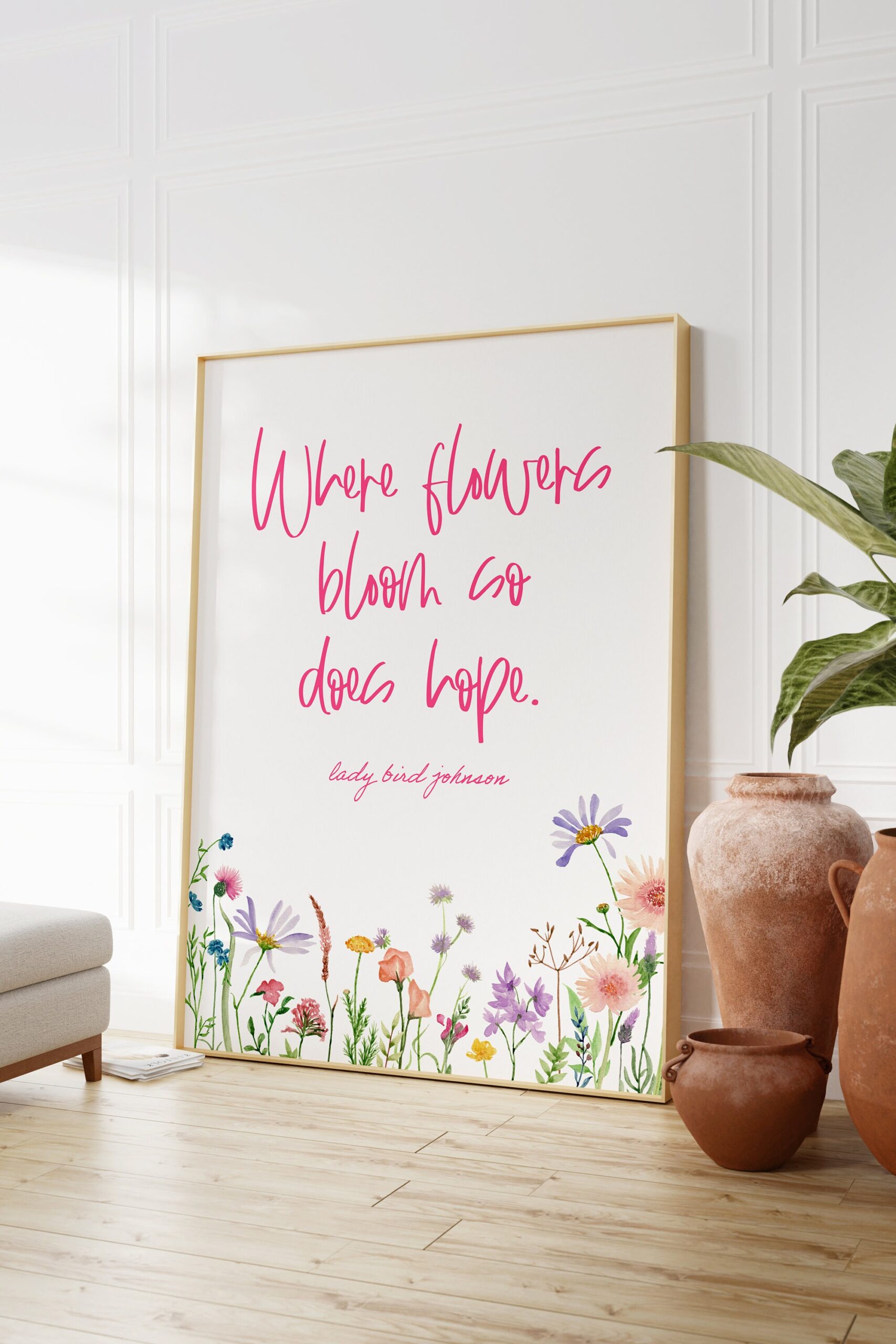 Lady Bird Johnson Quote – Where flowers bloom so does hope. Art Print with Wildflowers – Inspirational