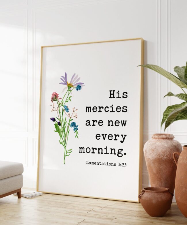 Lamentations 3:23 – His Mercies Are New Every Morning – Bible Verse – Christian Wall Art – Scripture