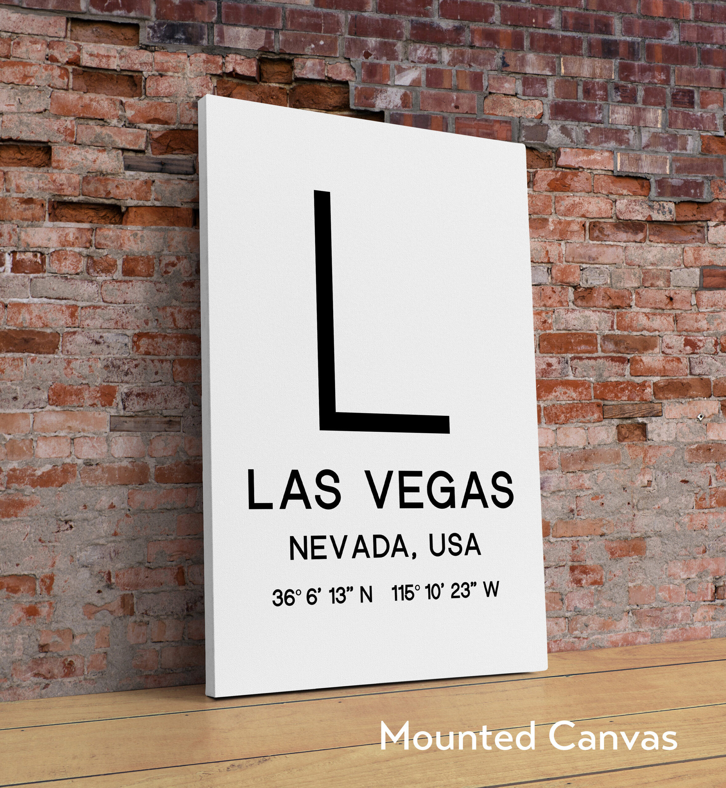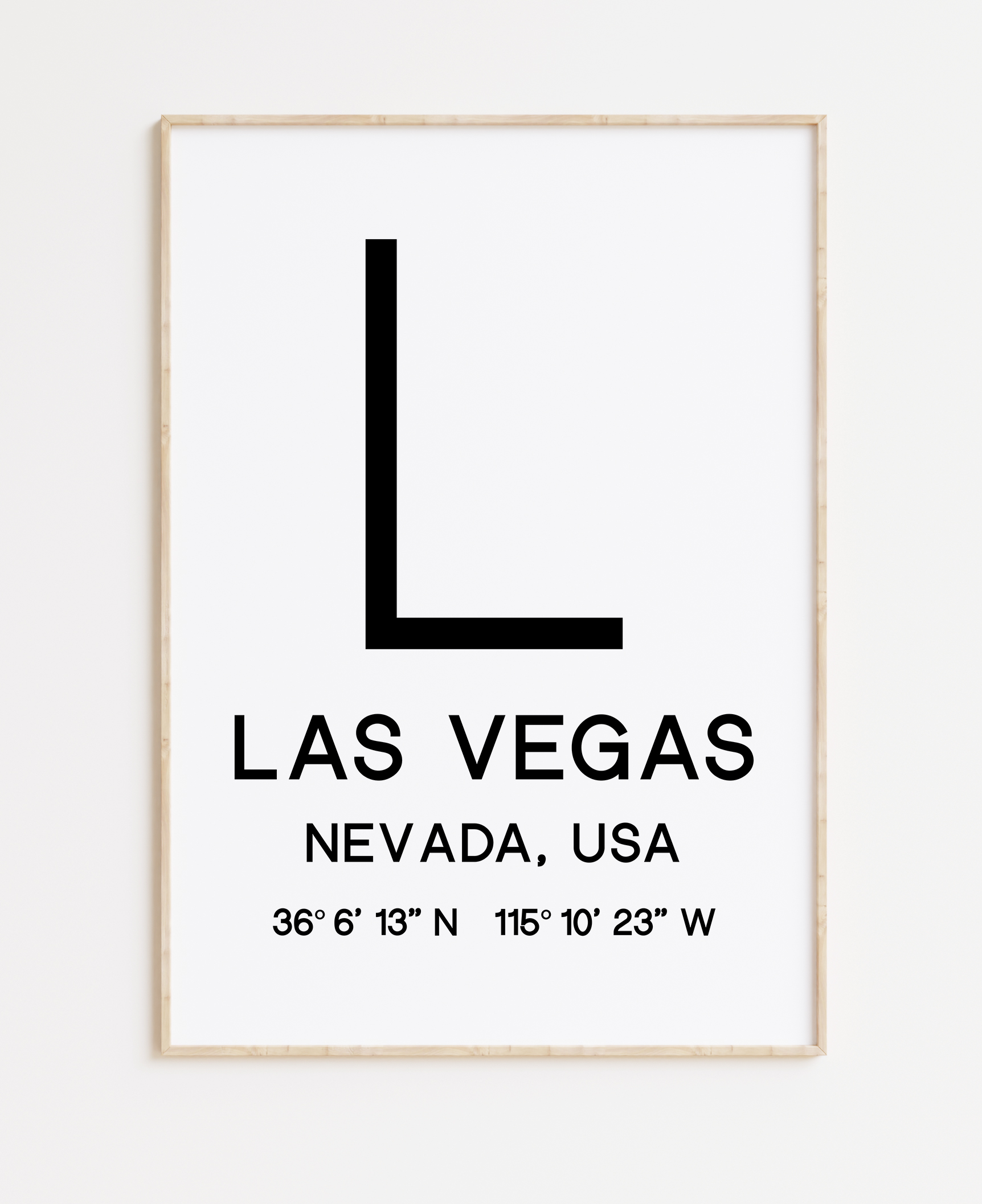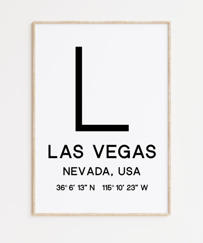 Las Vegas, Nevada with GPS Coordinates Typography Minimalist Art Print