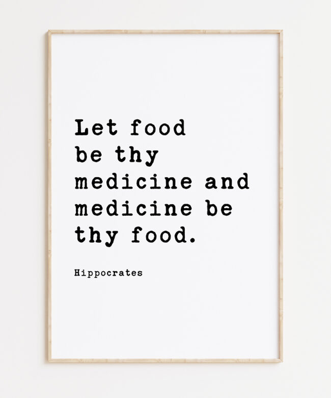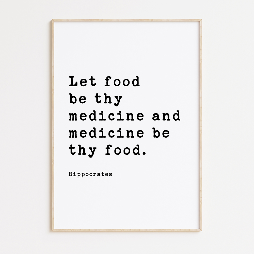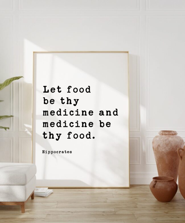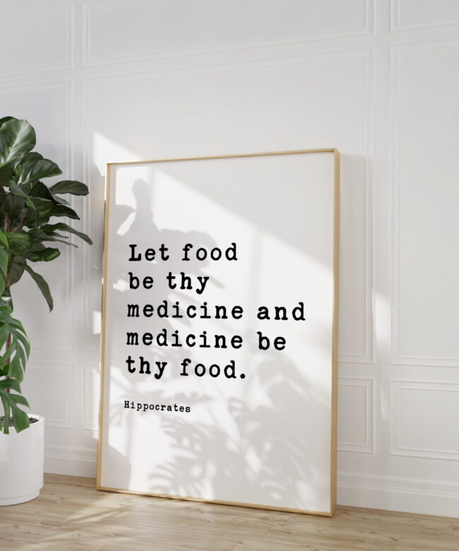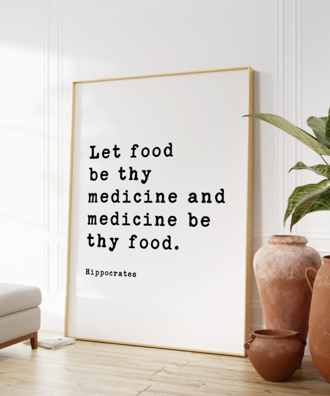 Add a touch of wisdom and inspiration to your space with our ‘Let food be thy medicine and medicine be thy food’ Hippocrates Quote Typography Art Print. This print features the timeless quote by Hippocrates, the father of modern medicine. The typewriter font typography and design make it a perfect addition to any kitchen, dining area, or wellness space. It serves as a daily reminder of the importance of nourishing our bodies with wholesome foods. The high-quality print is available in various sizes and is an ideal gift for health enthusiasts, nutritionists, and anyone passionate about holistic wellness.