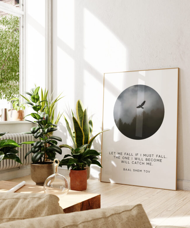 Leap forward with courage and trust in this captivating typography art print featuring the inspiring quote by Baal Shem Tov: