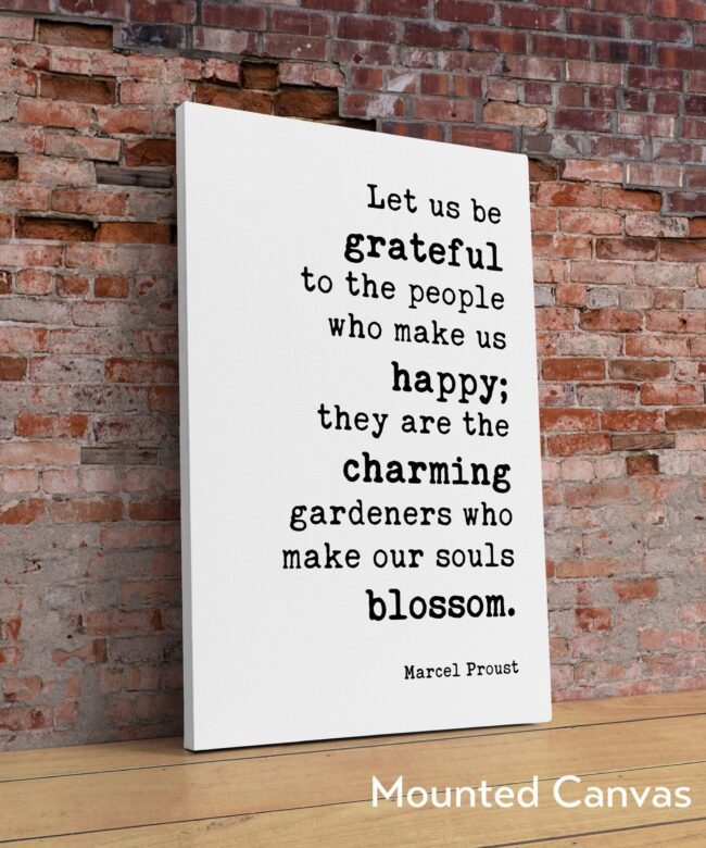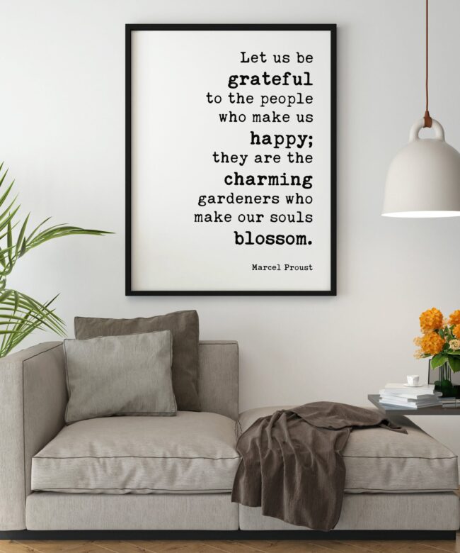 Let us be grateful to the people who make us happy; … charming gardeners who make our souls blossom. Marcel Proust Quote – Typography Art